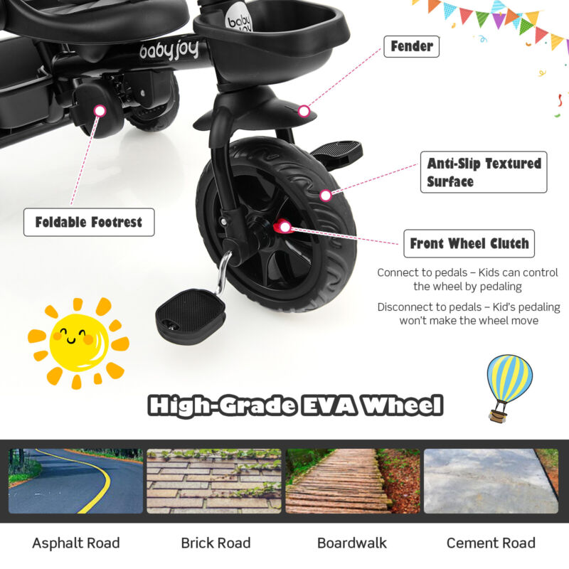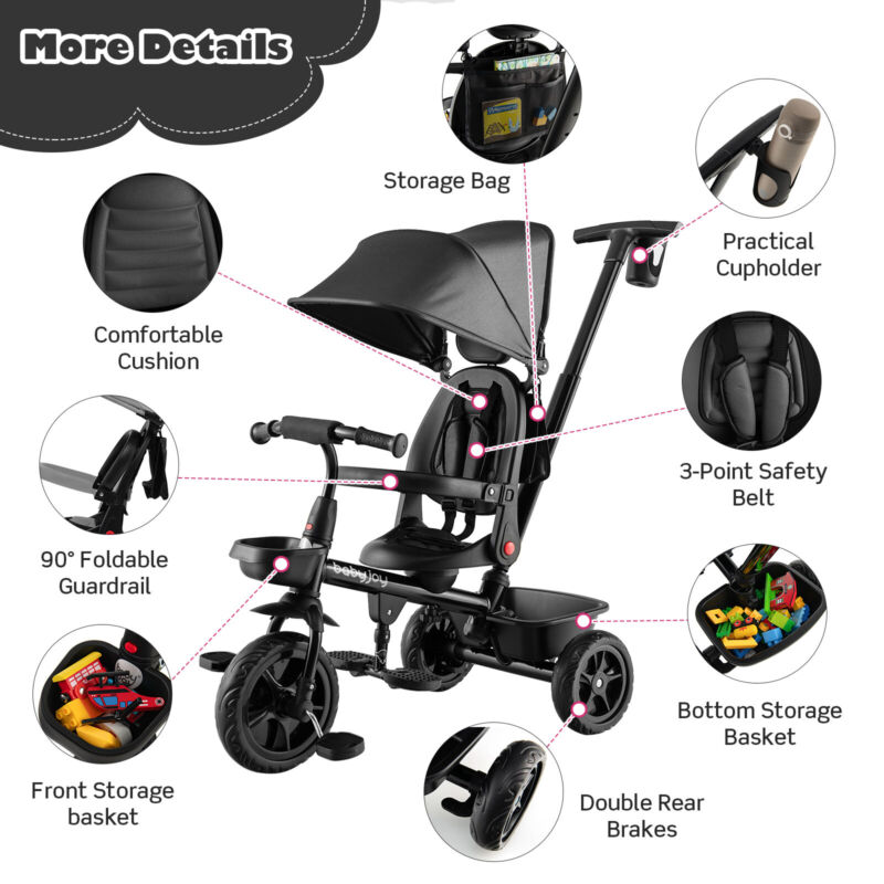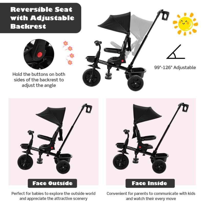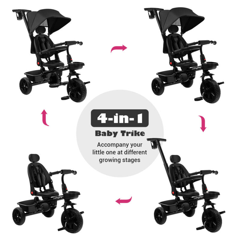 4 in 1 Baby Tricycle Kids First Bike Stroller Reversible Toddler Trike 12-60M