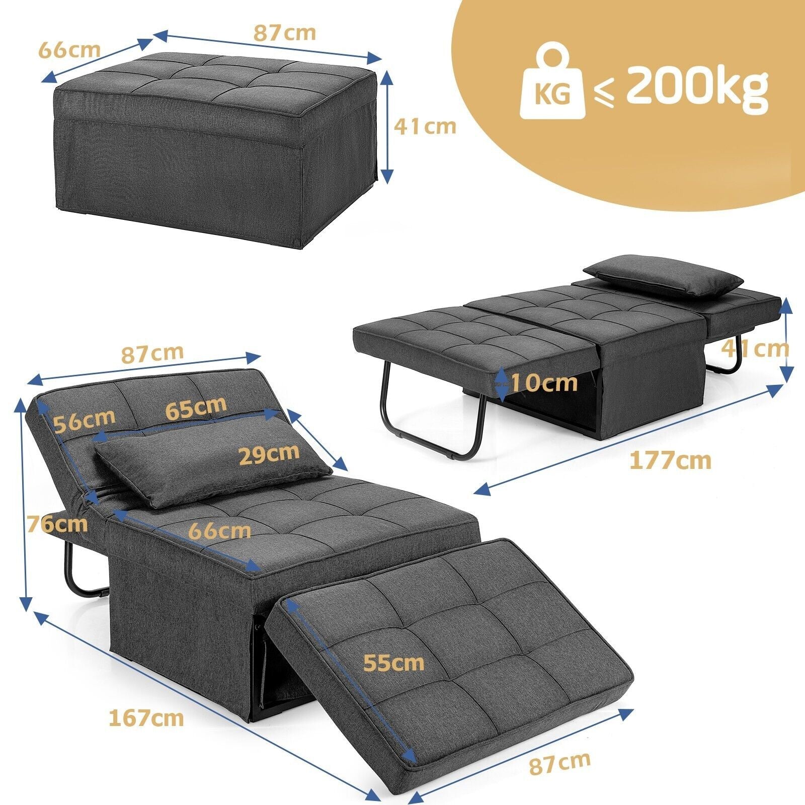 4-in-1 Convertible Sofa Bed Folding Ottoman Sleeper Space Saving Couch Lounger