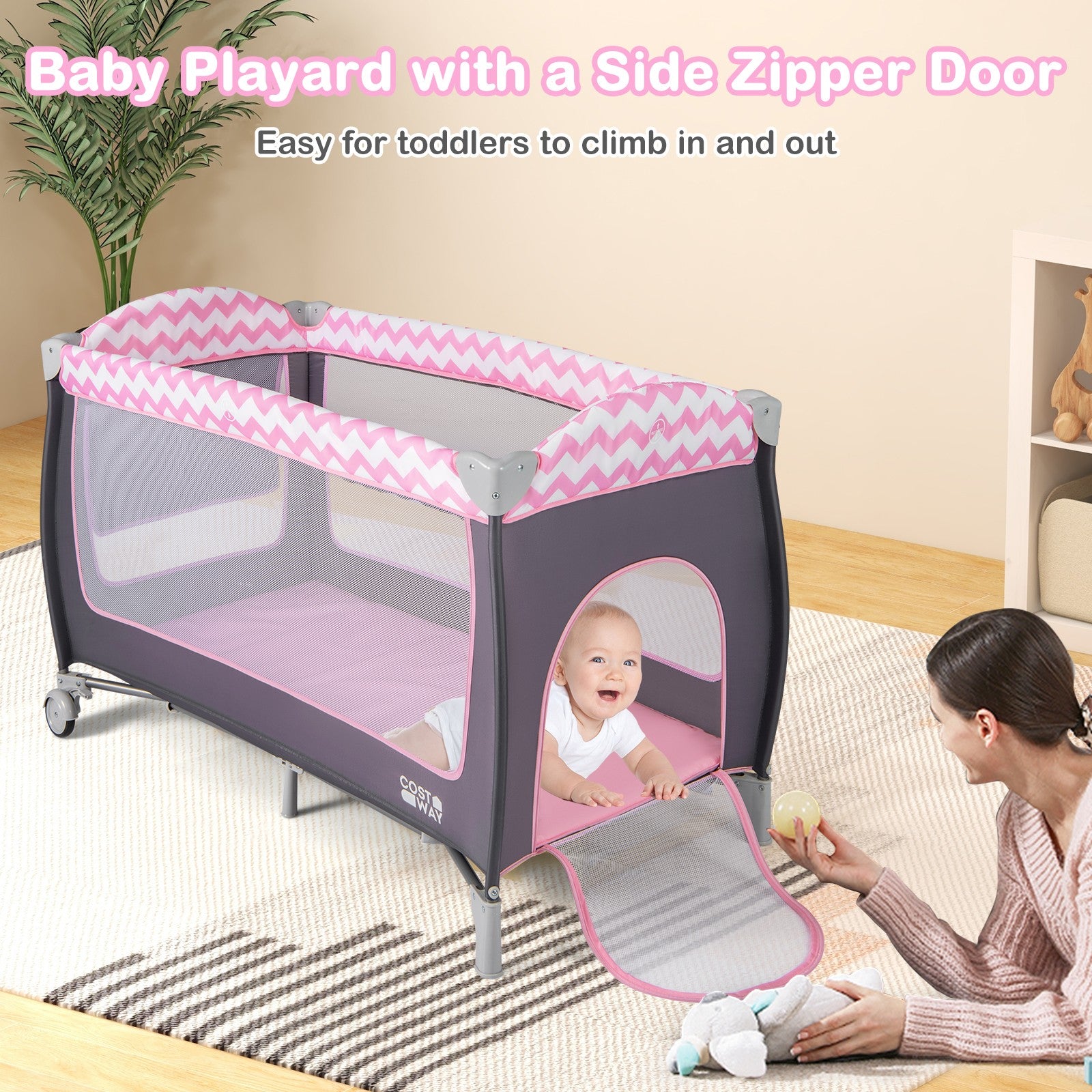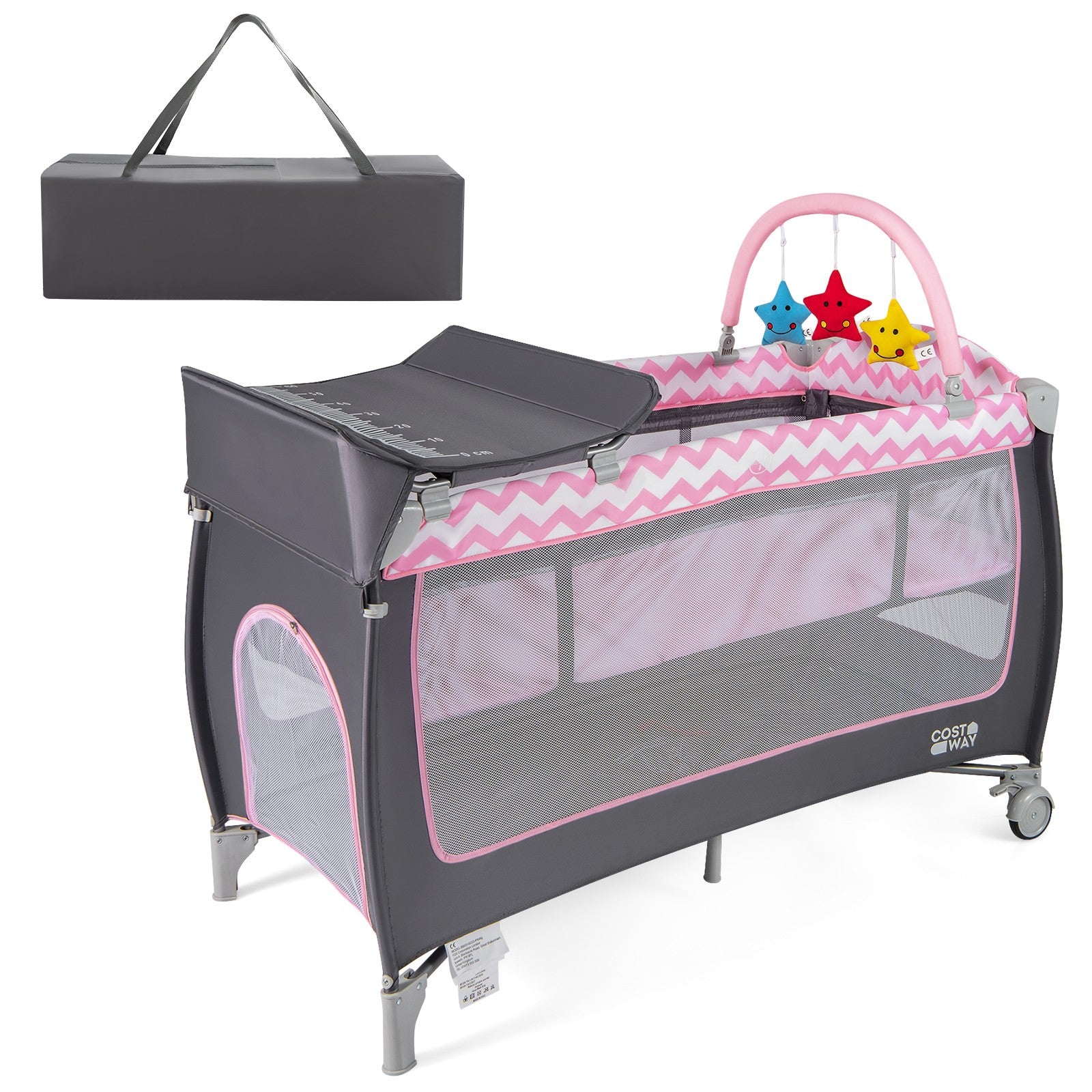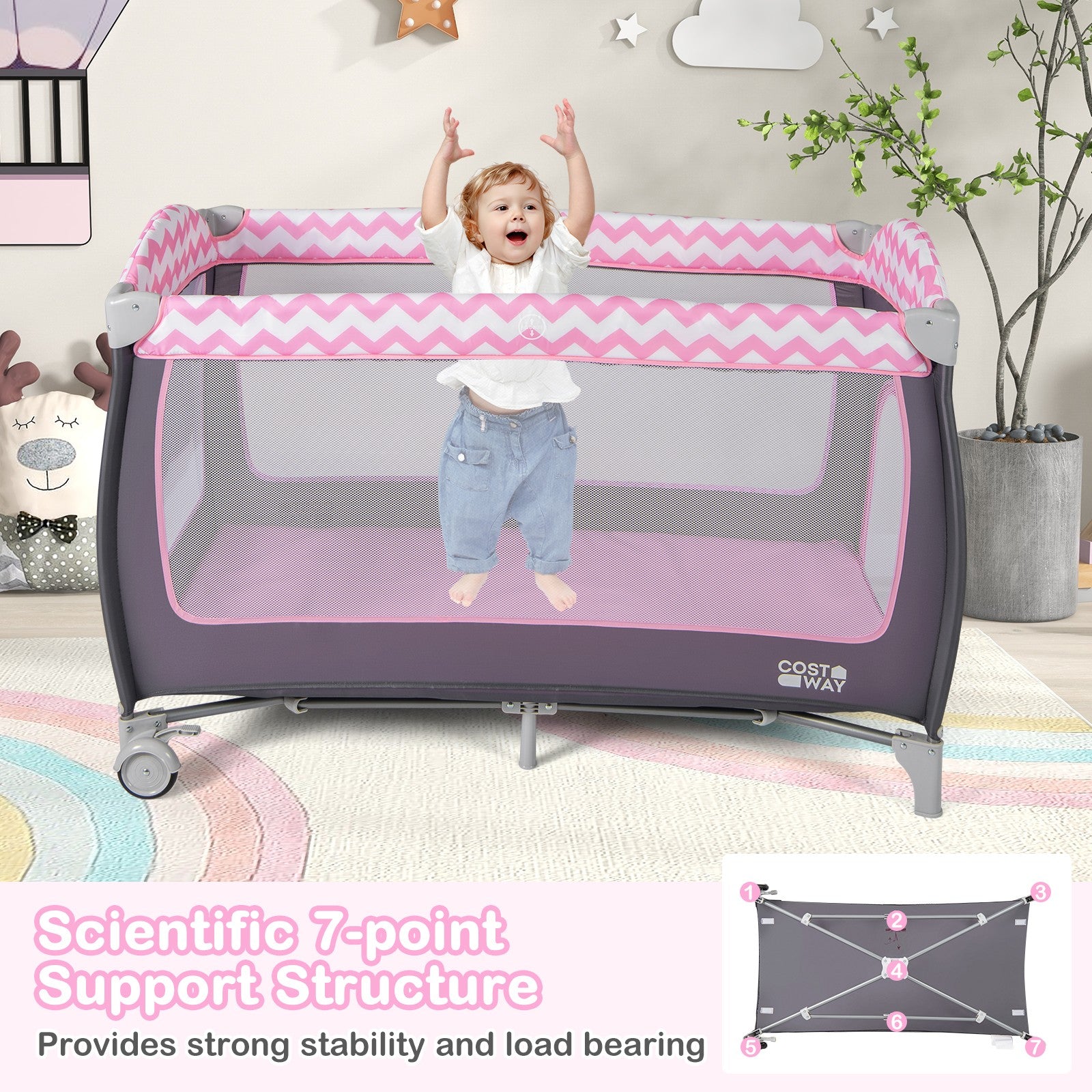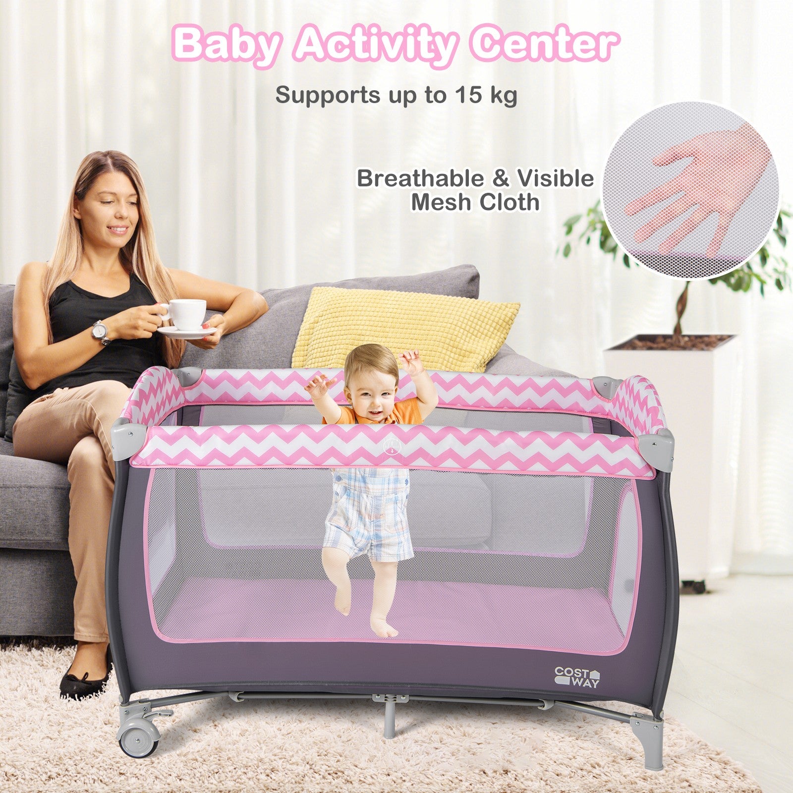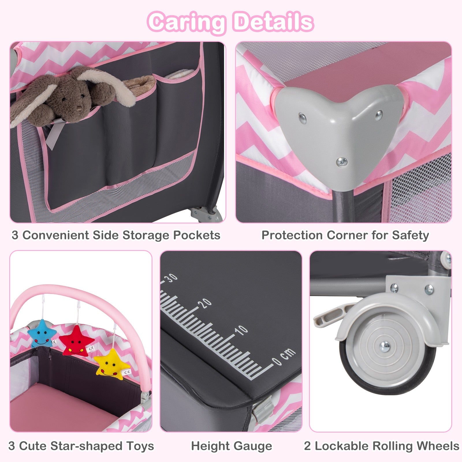 4 in 1 Infant Nursery Center with Bassinet & Changing Table Pink