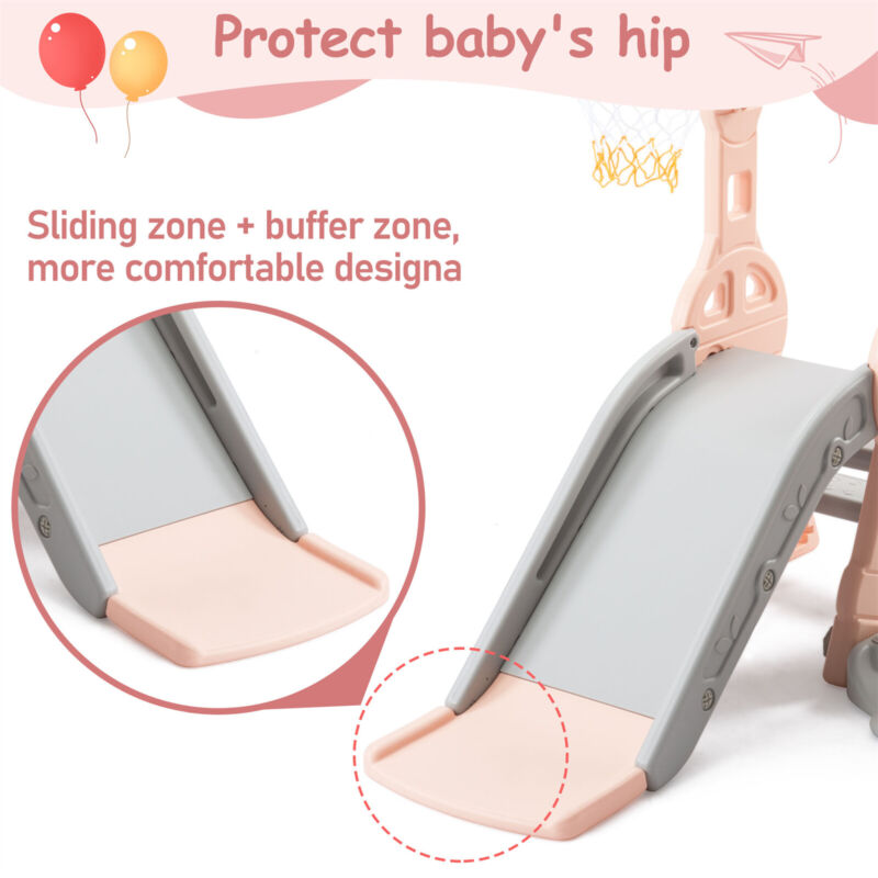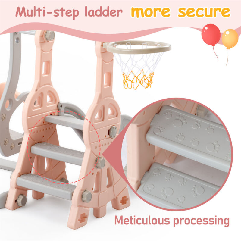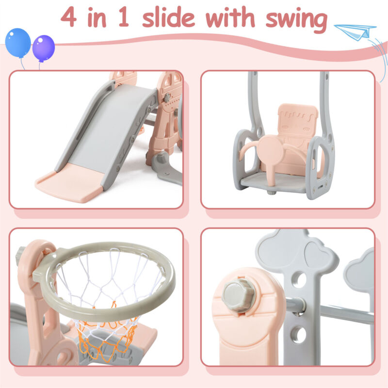 4 in 1 Kids Swing & Slide Set Toddler Baby In/Outdoor Climber Basketball Hoop