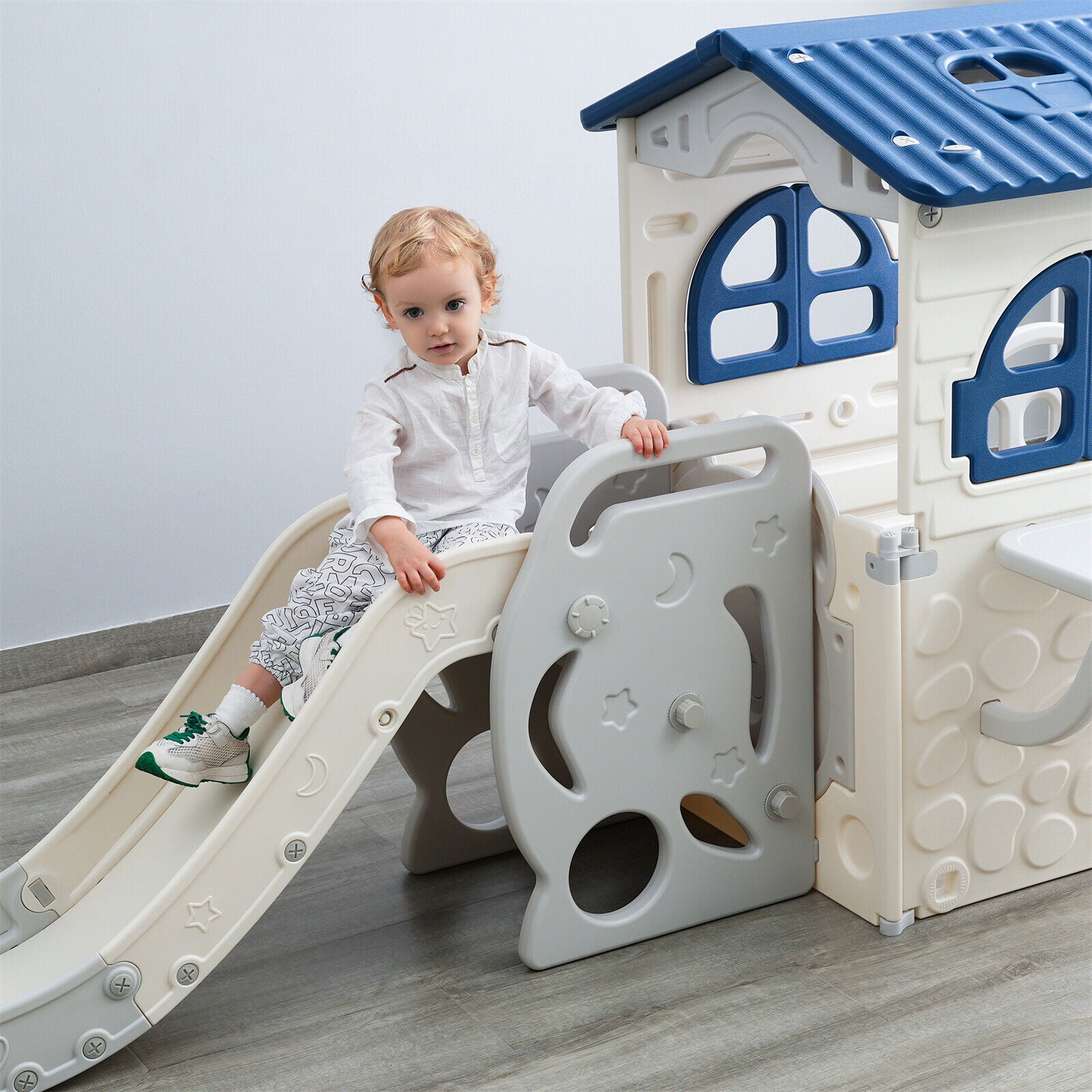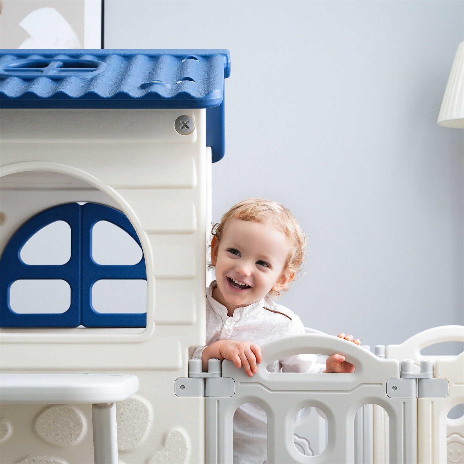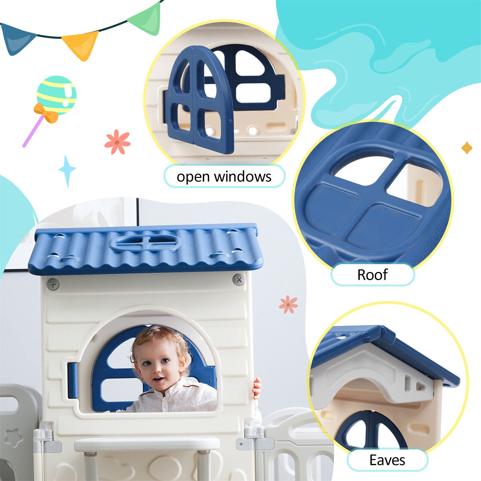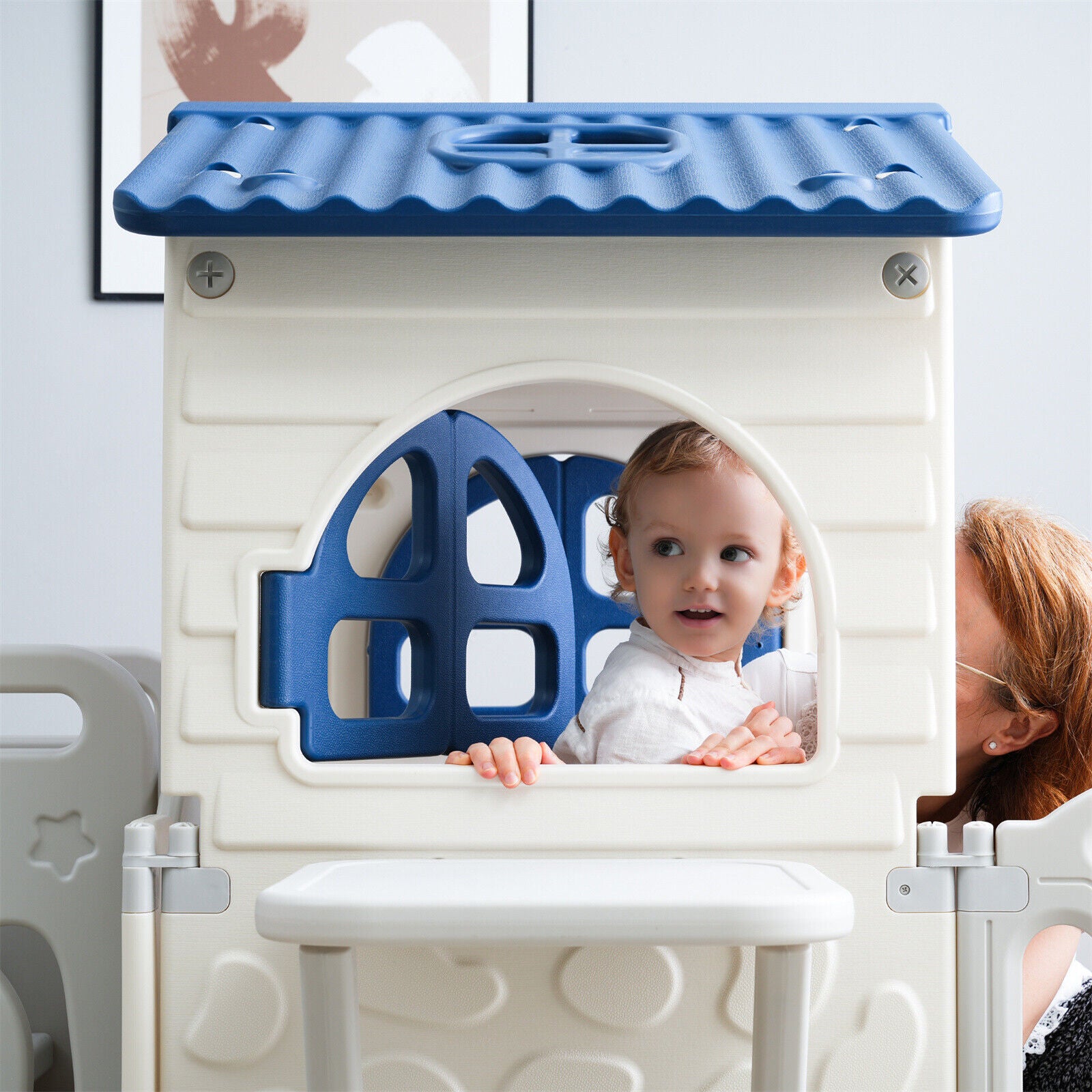 4 in 1 Kids Toddlers Children's Garden Slide Playpen Playhouse Cabin Table Set