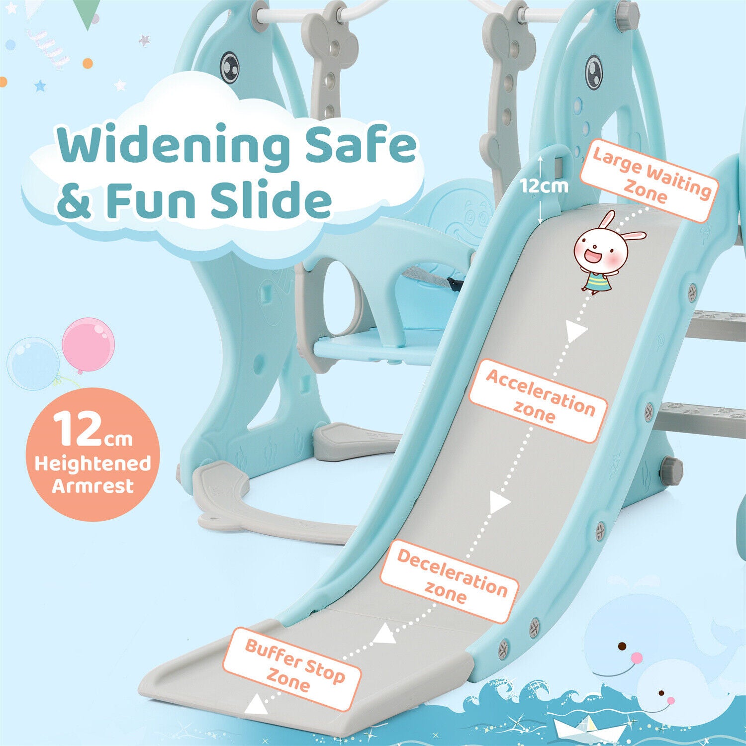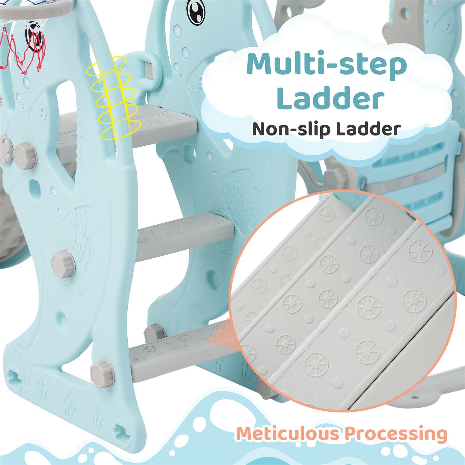 4 in 1 Kids Toddlers Swing & Slide Climber Set w/ Basketball Hoop In/Outdoor HT