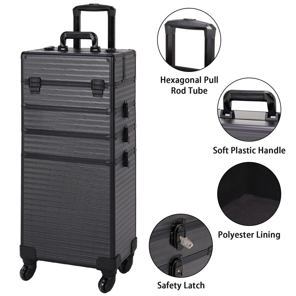 4 in 1 Large Makeup Case Trolley Cosmetic Hairdressing Vanity Beauty Storage Box