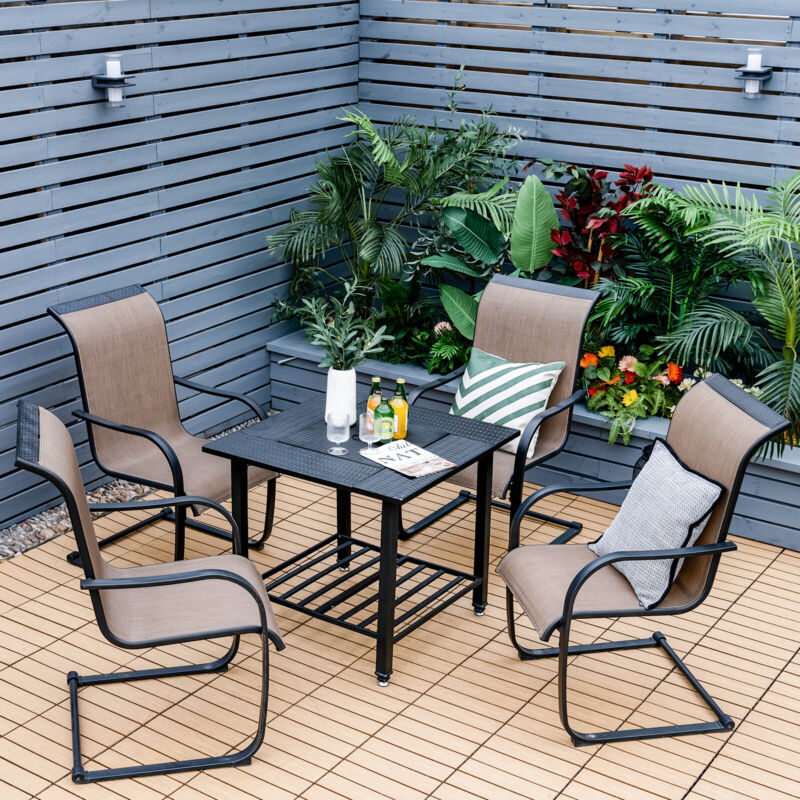 4 in 1 Outdoor Fire Pit Dining Table Square Wood Burning Fire Bowl W/ Mesh Cover