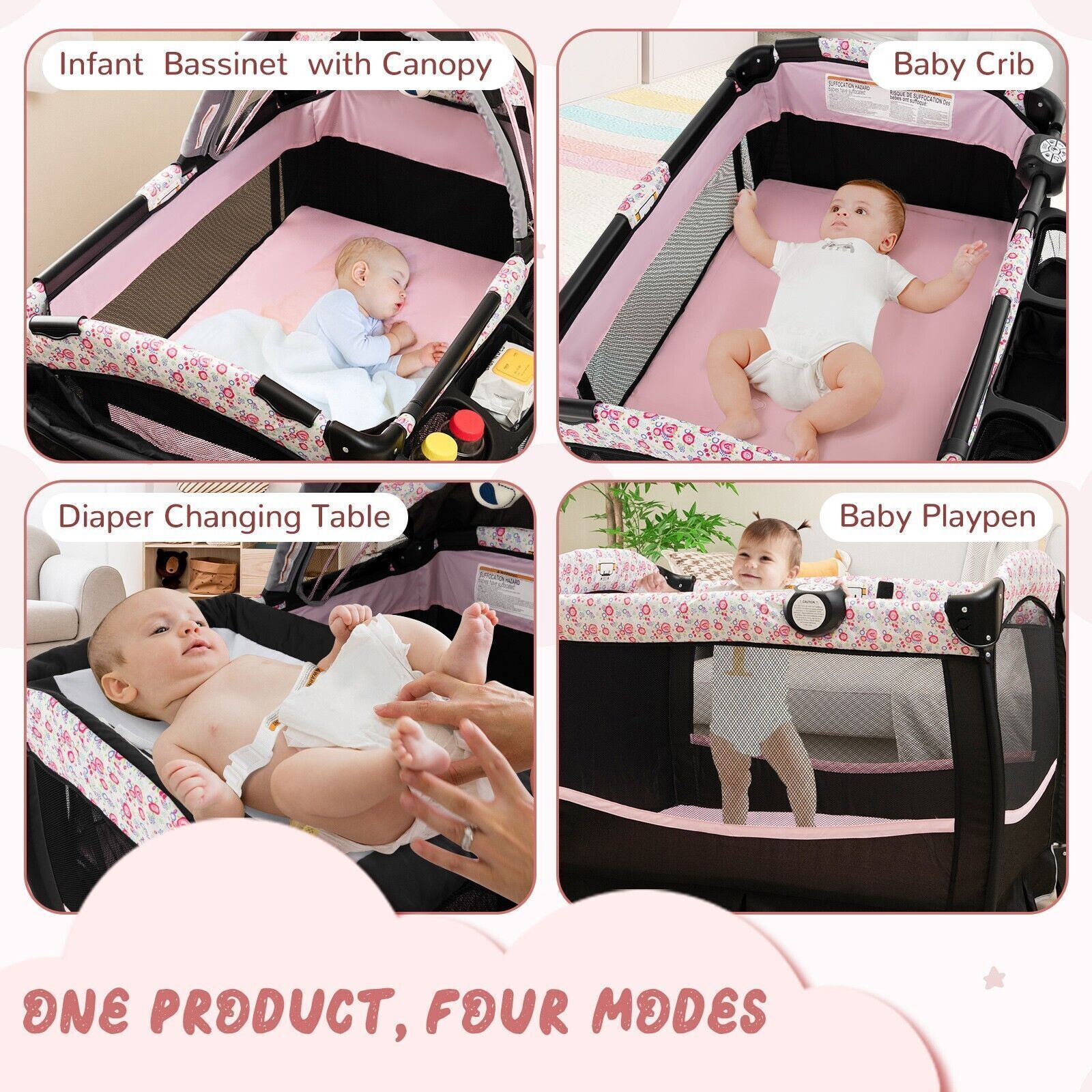 4 in 1 Portable Baby Playard Foldable Newborn Nursery Center w/Bassinet