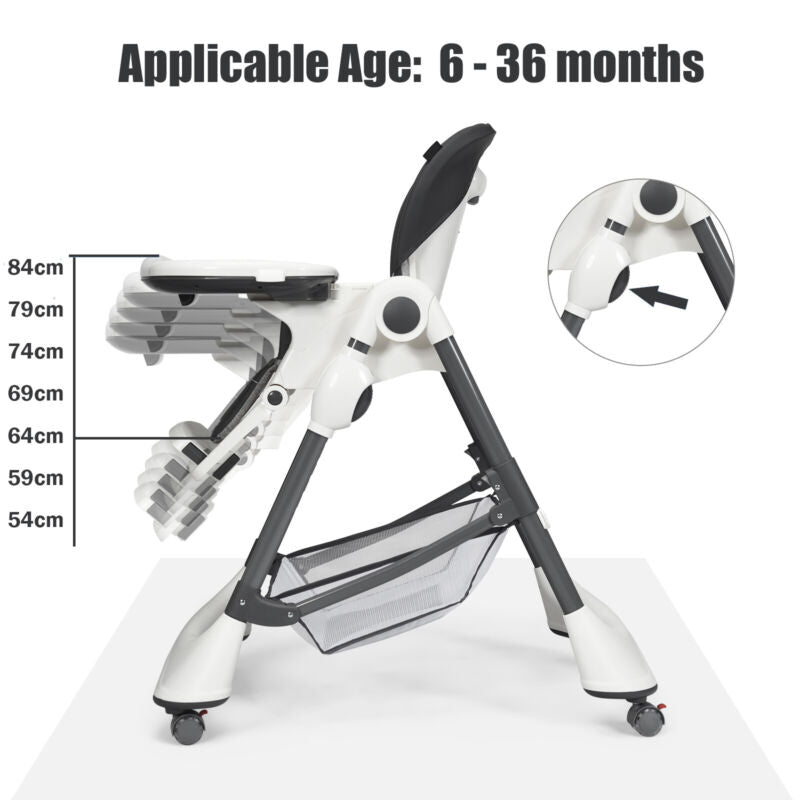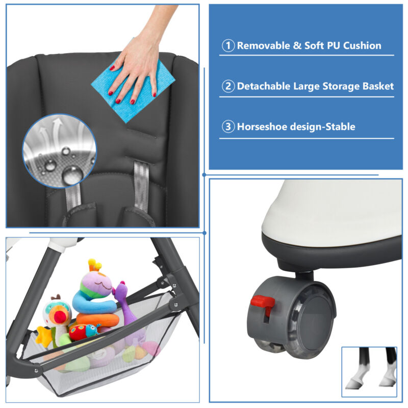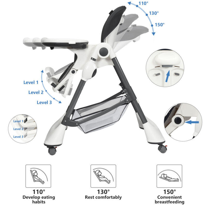 4 in 1 Rolling Baby Highchair Infant Toddler Reclining Sleeping Chair W/ Storage