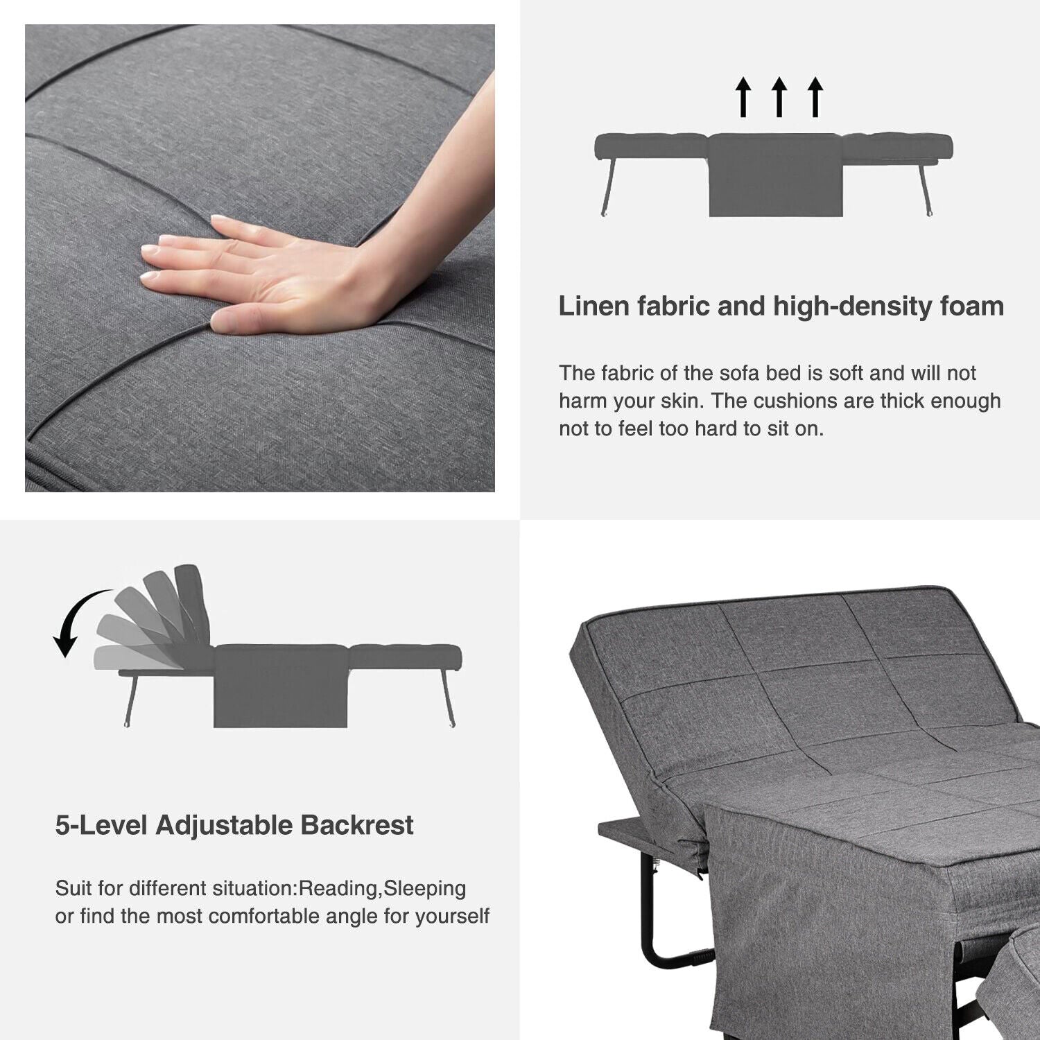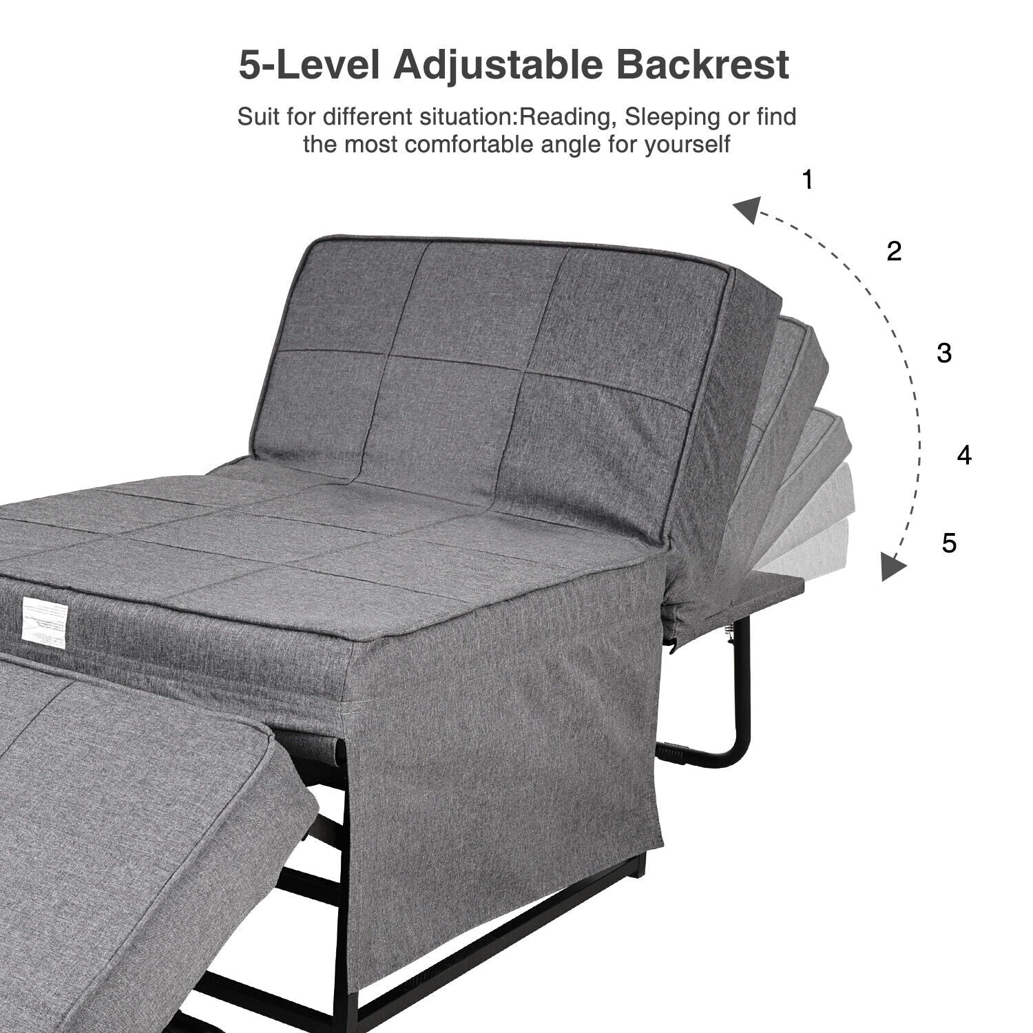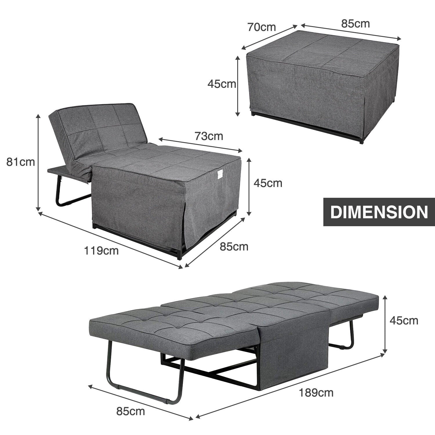 4 In 1 Sofa Bed Convertible Recliner Chair Folding Single Sleeper Lounger Grey