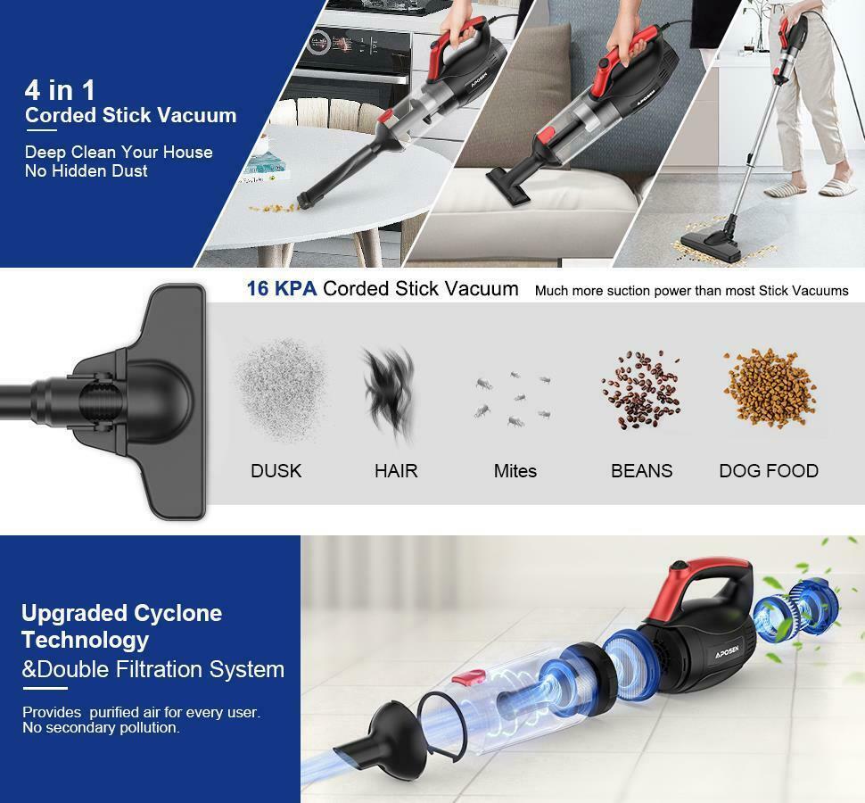 4 in 1 Upright & Handheld Stick Vacuum Cleaner Bagless Lightweight Corded 600W