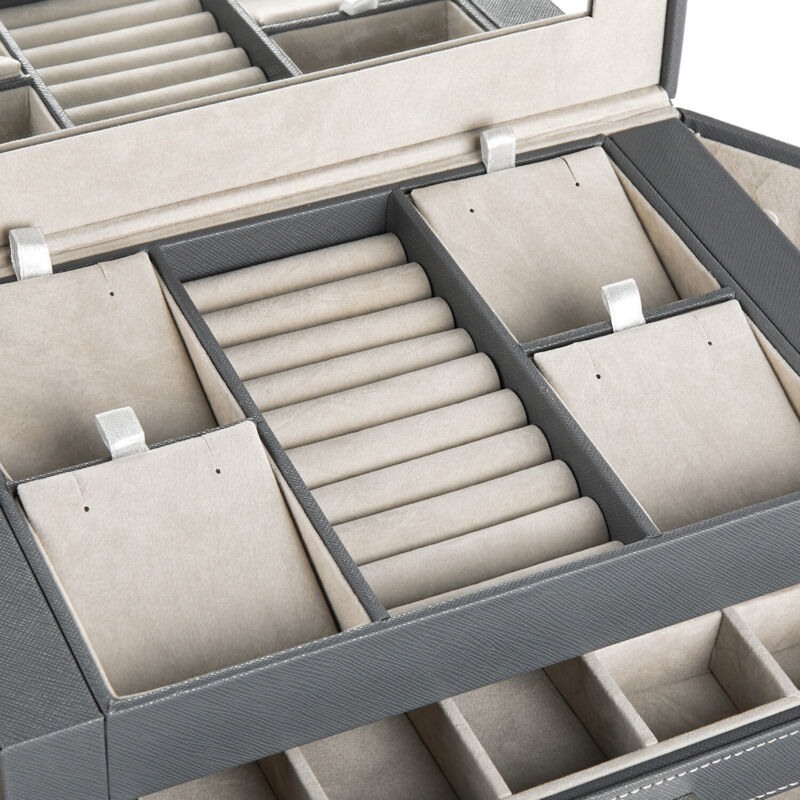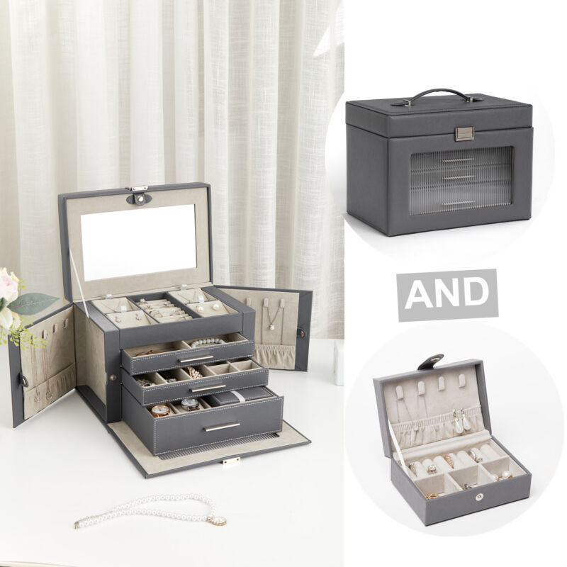 4 Layers Large Jewellery Box Storage Organizer Case Cabinet w/Portable Box Grey