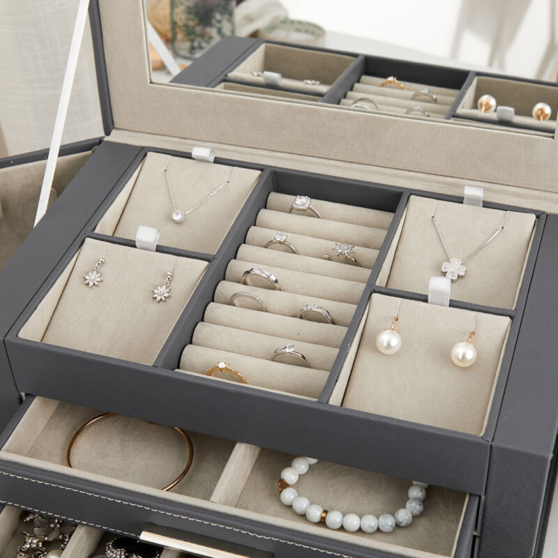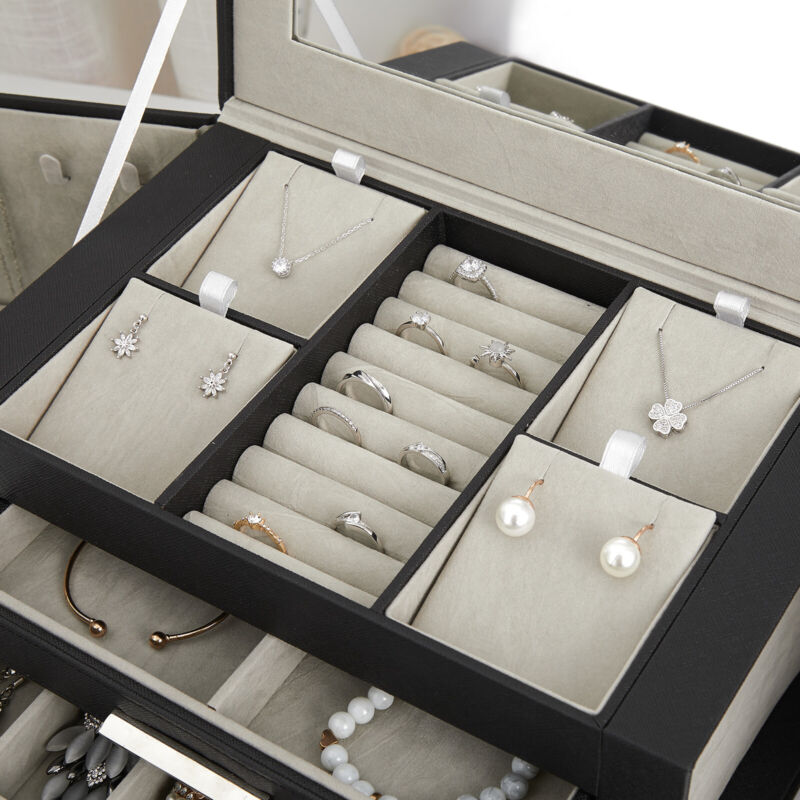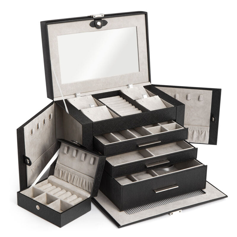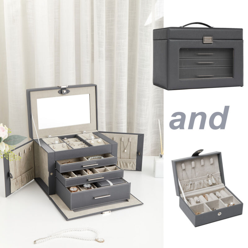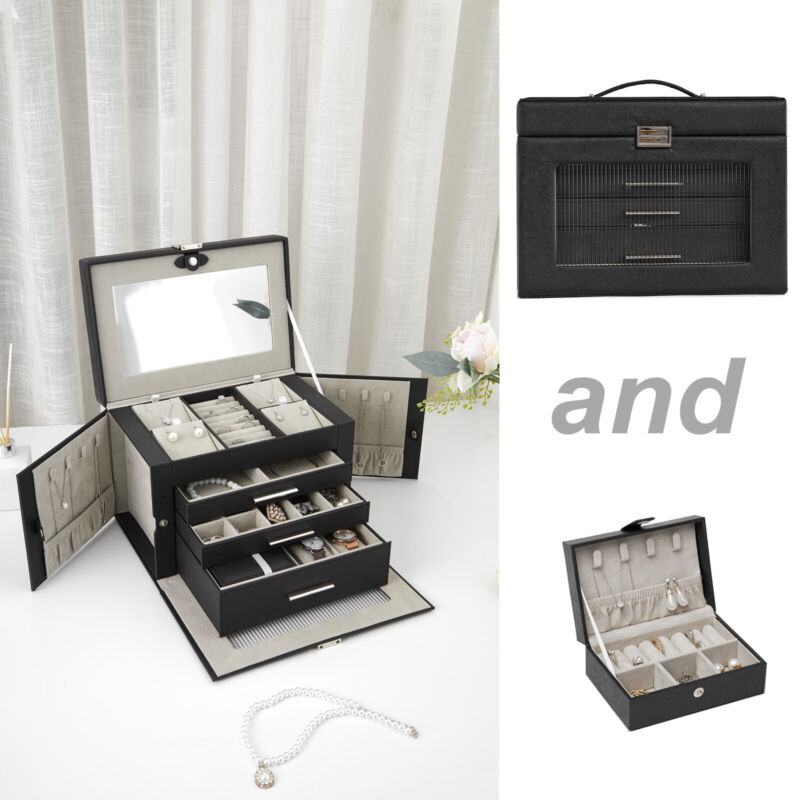 4 Layers Large Jewellery Boxes Storage Organizer Case Cabinet w/Portable Box