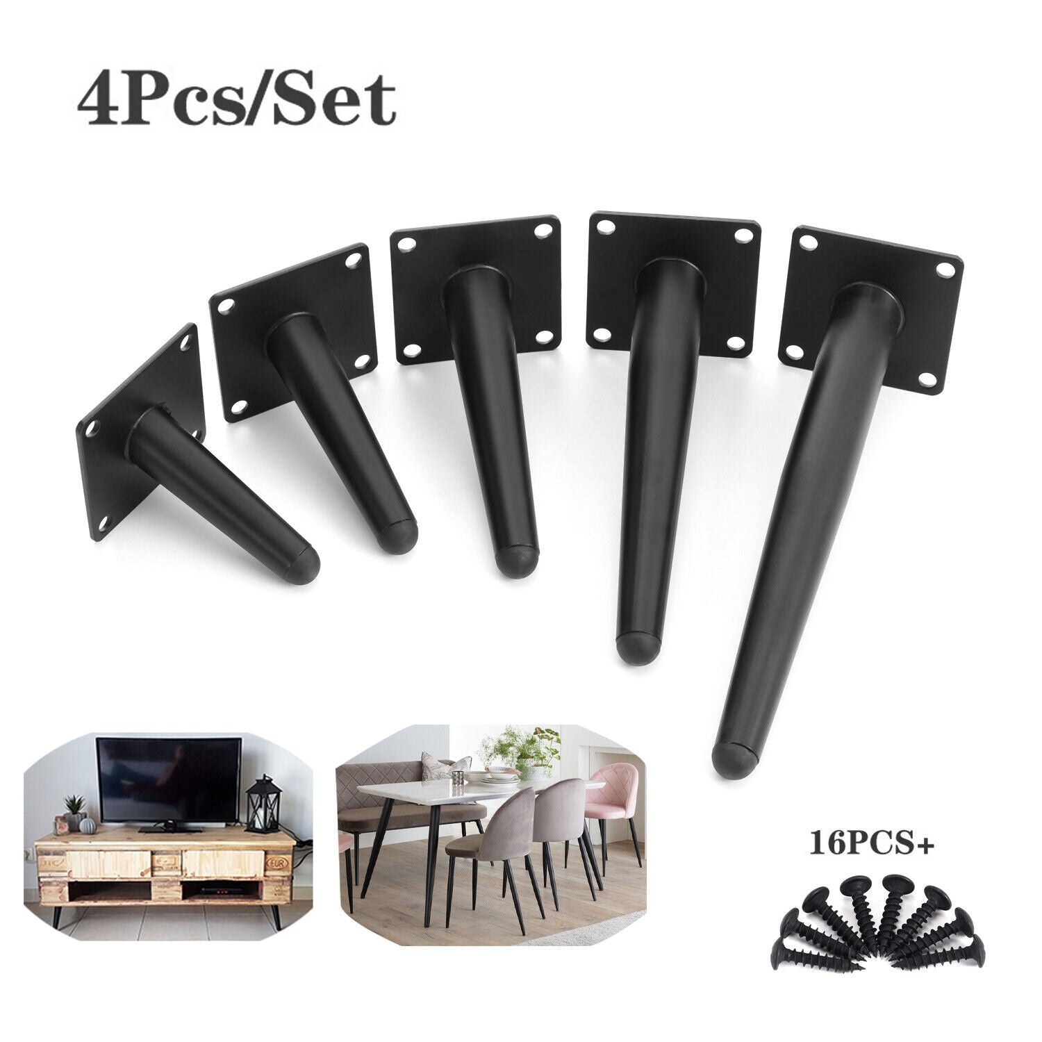 4 Metal Table Legs Oblique Feet with Mounting Plate Screws & Anti-Slip Protector