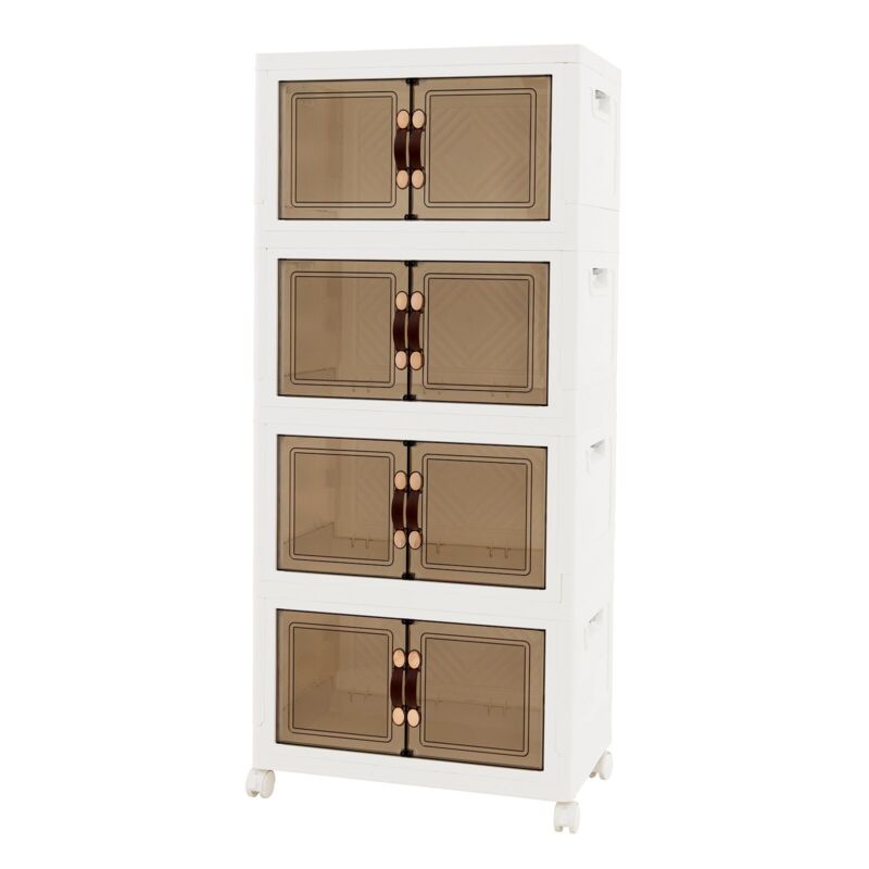 4 Pack Stackable Storage Cabinet Mobile Folding Storage Box w/Doors Lids 44 Gal