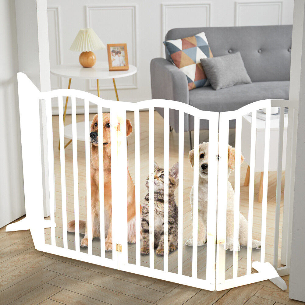 4 Panel Baby Safety Fence Dog Gate Wooden Pet Cat PlayPen Barrier w/Support Feet