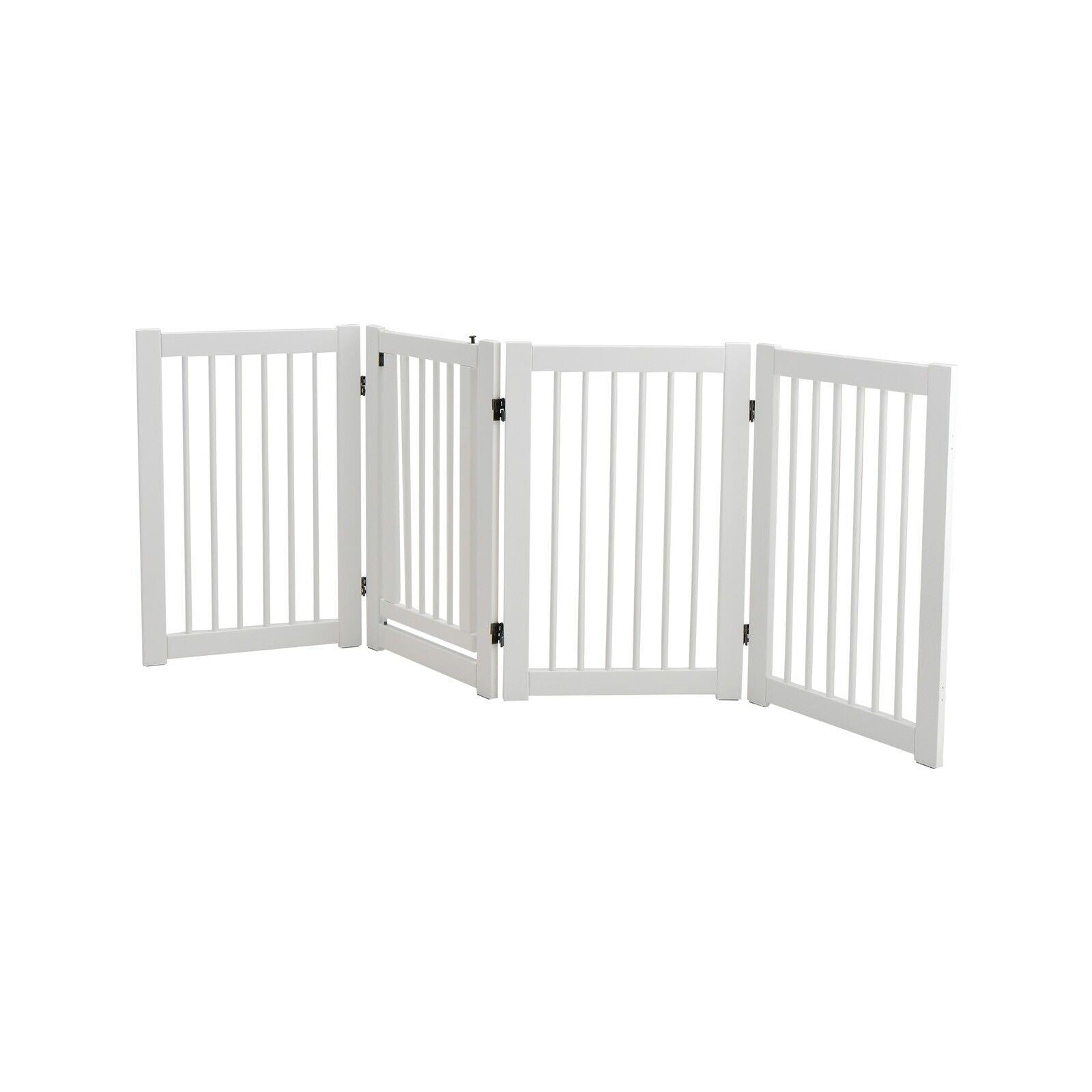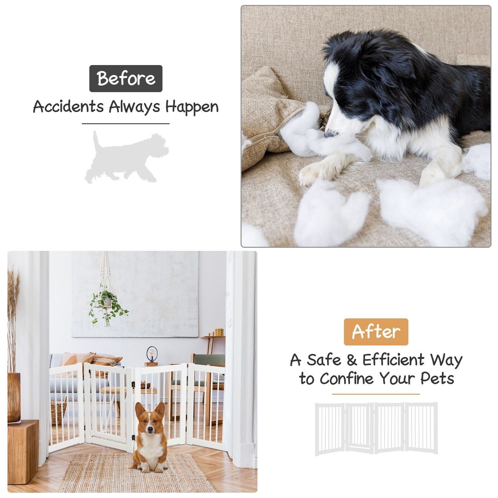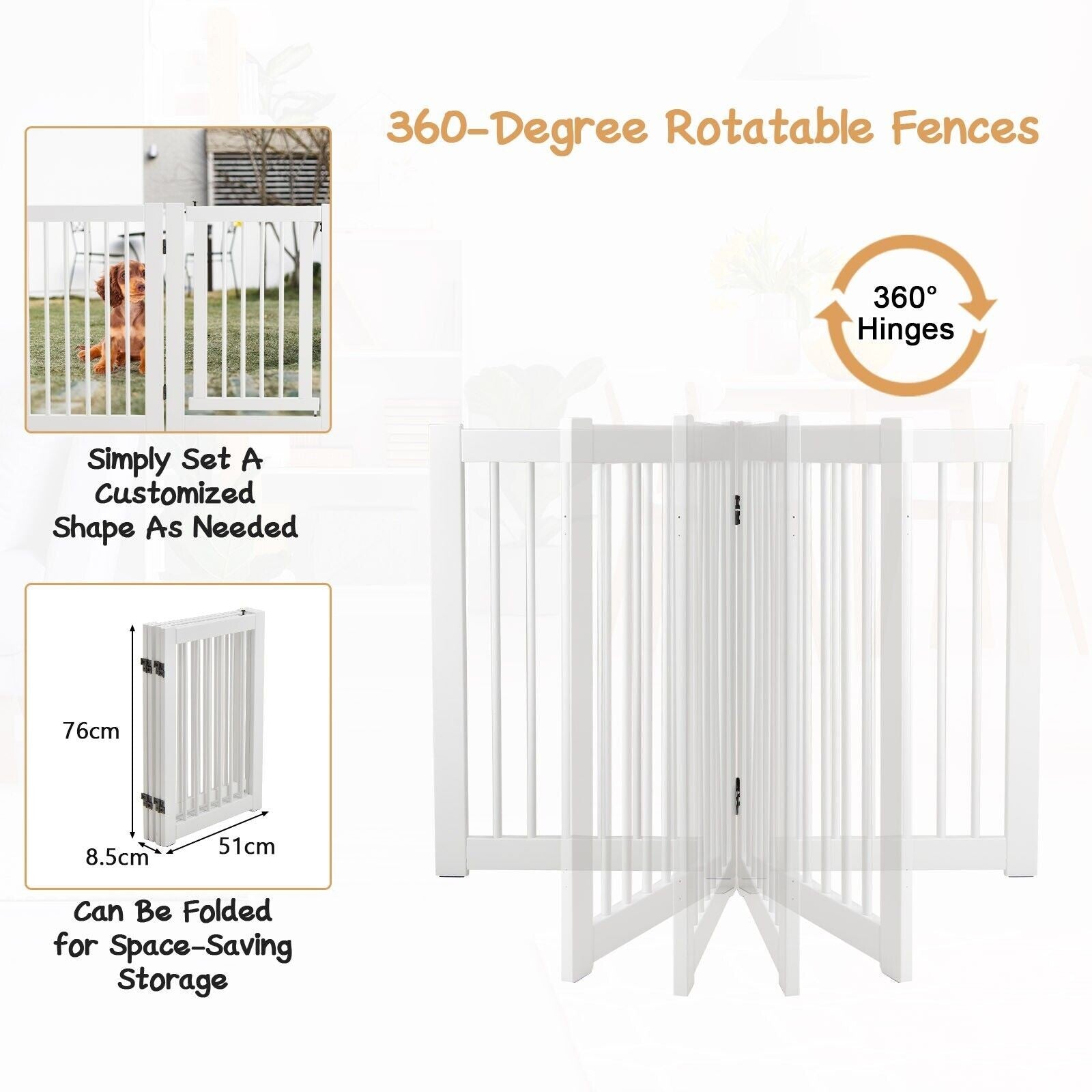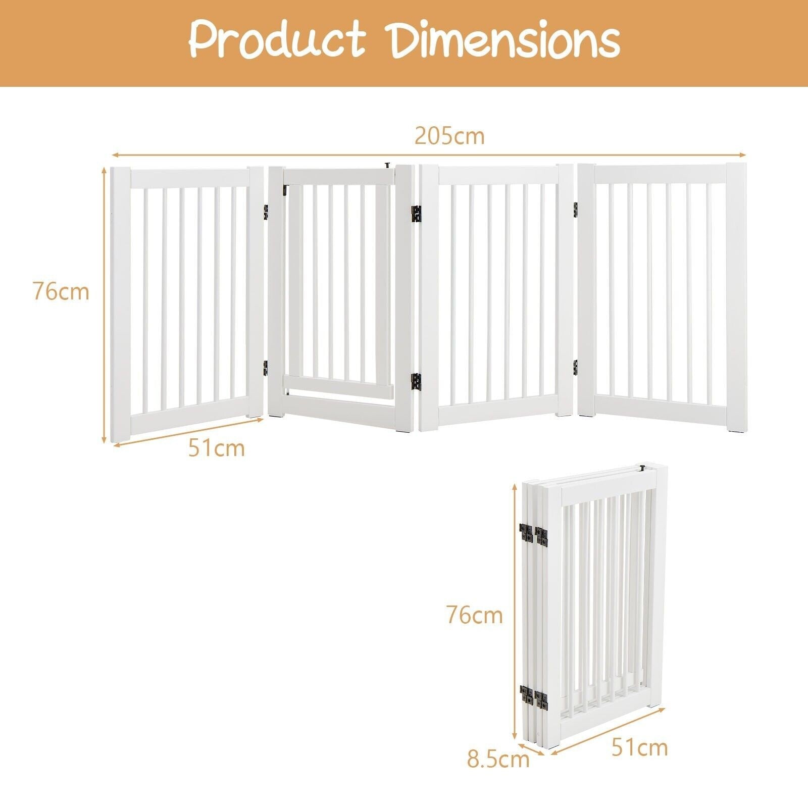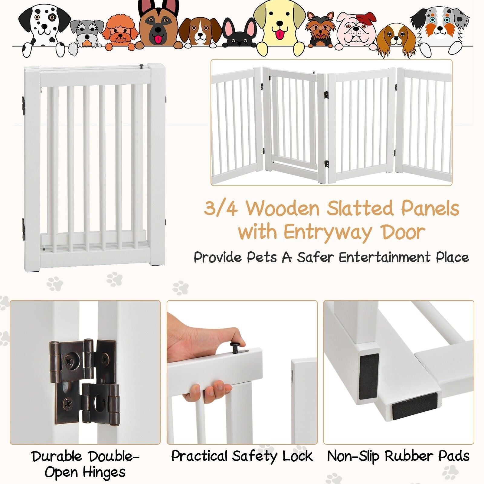 4-Panel Folding Dog Gate Freestanding Dog Pet Safety Fence Wooden Puppy Gate