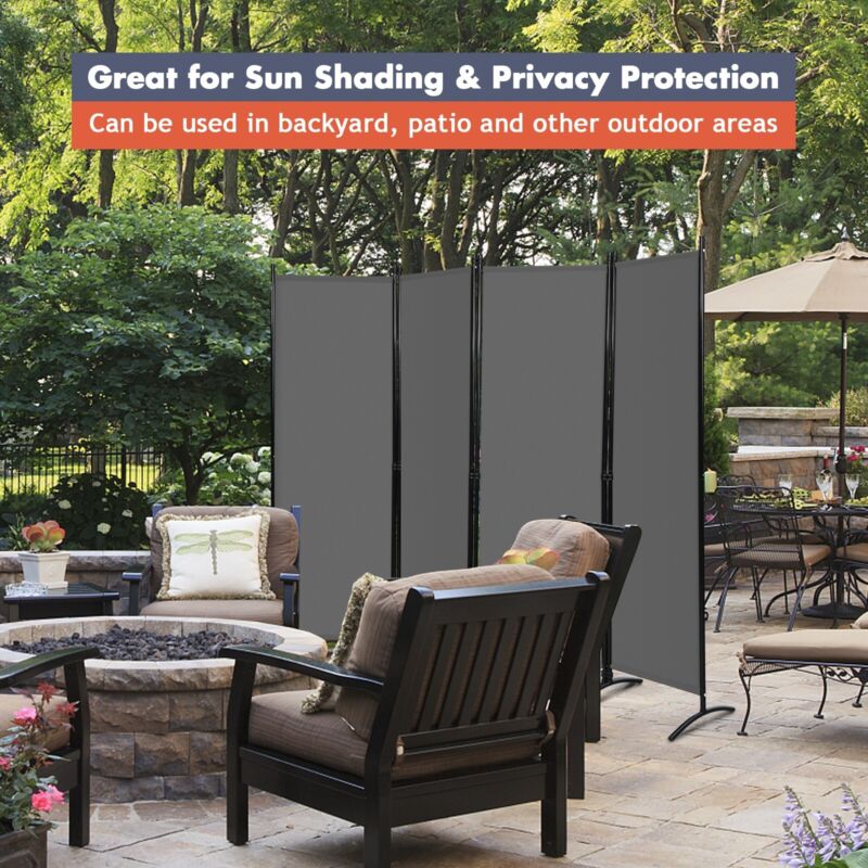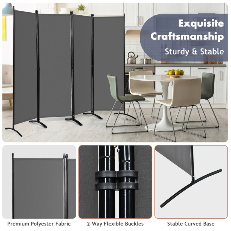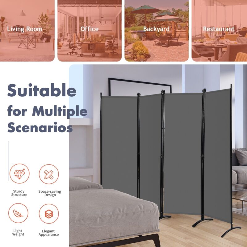 4-Panel Room Divider 173cm Folding Privacy Screen Portable Fiber Wall Divider