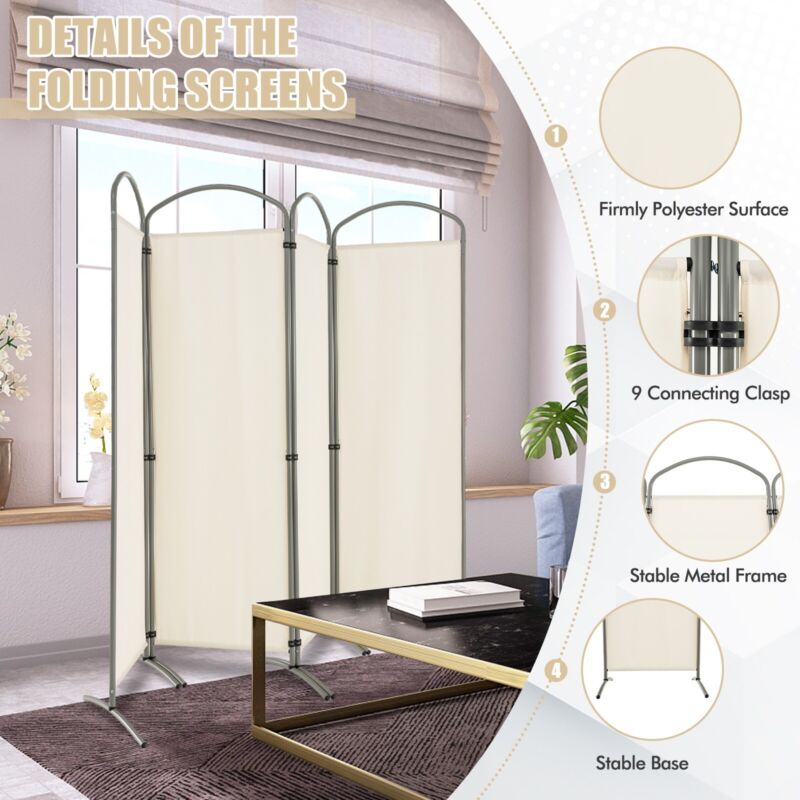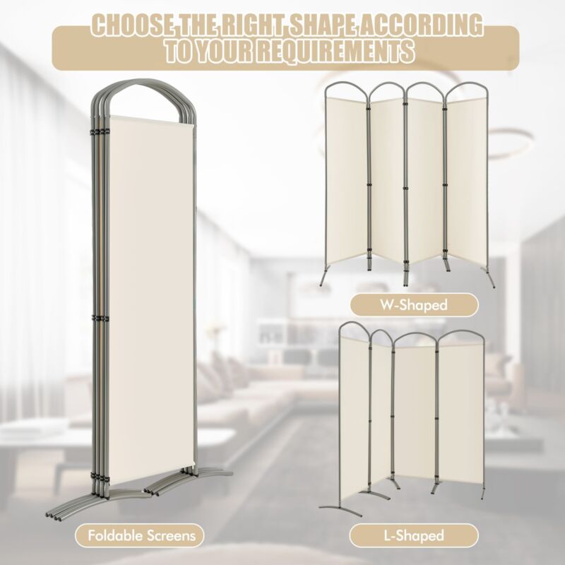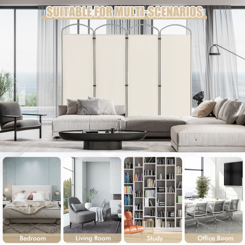 4-Panel Room Divider 188cm Folding Privacy Screen Portable Wall Divider for Home