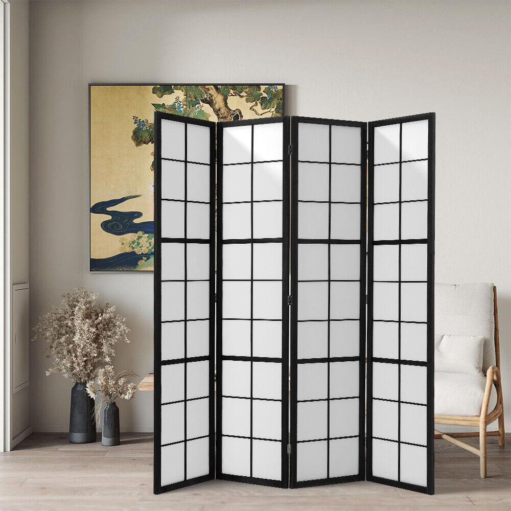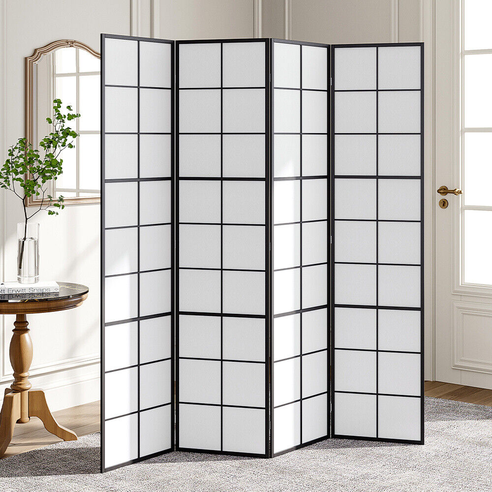 4 Panels Room Divider Wooden Frame Privacy Screen Separator Partition Screening