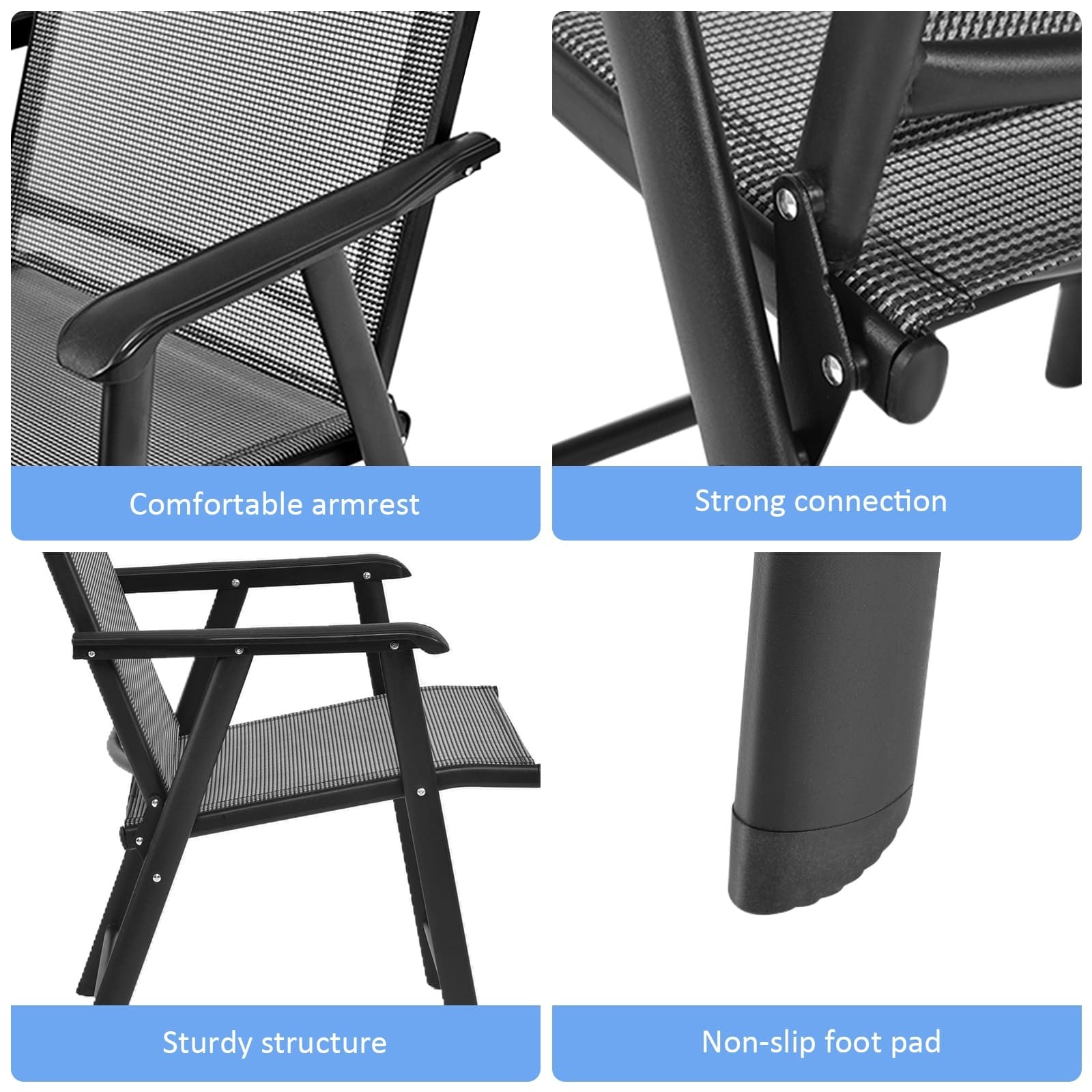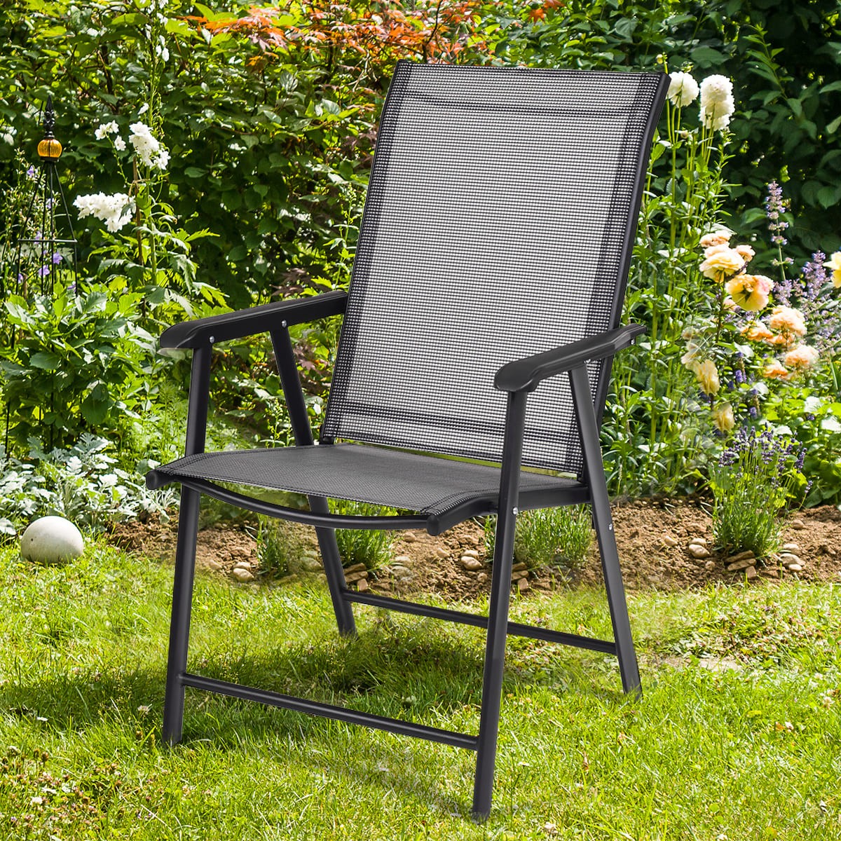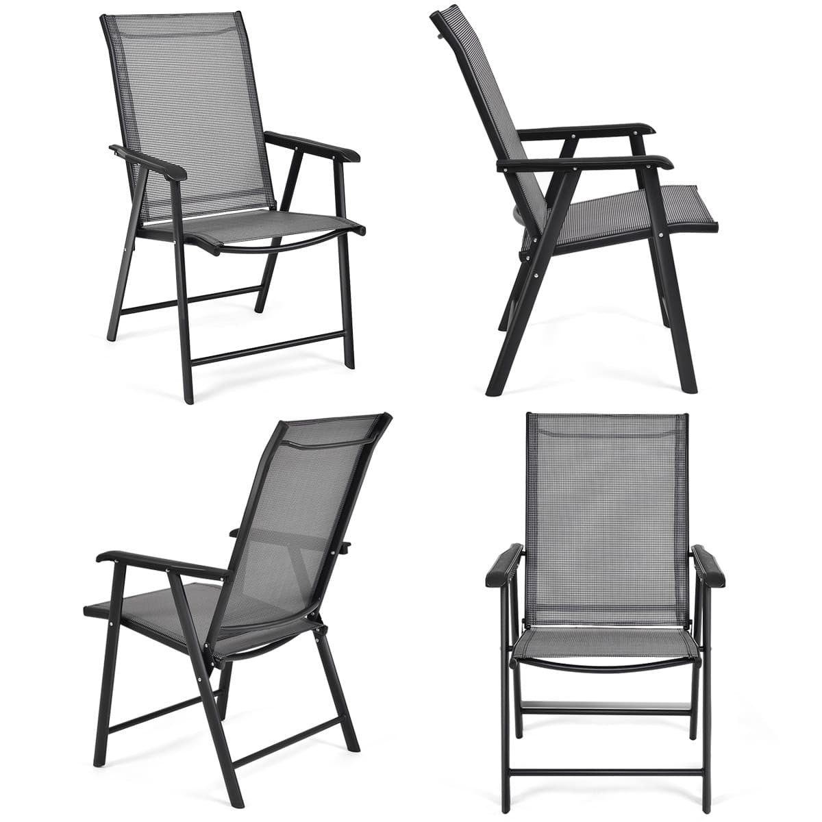 4 Pcs Garden Folding Chairs with Ergonomic Armrests-Grey