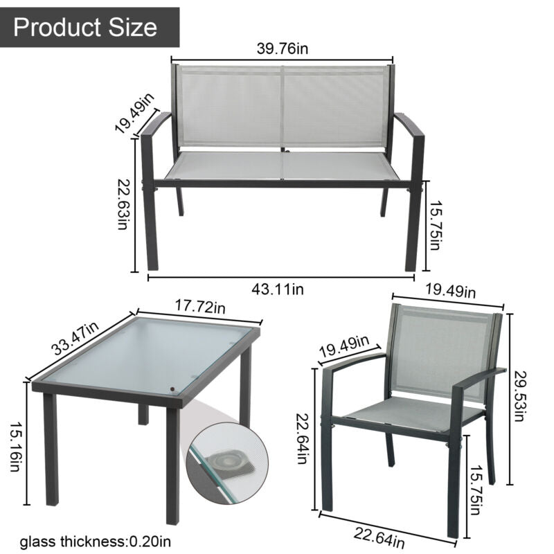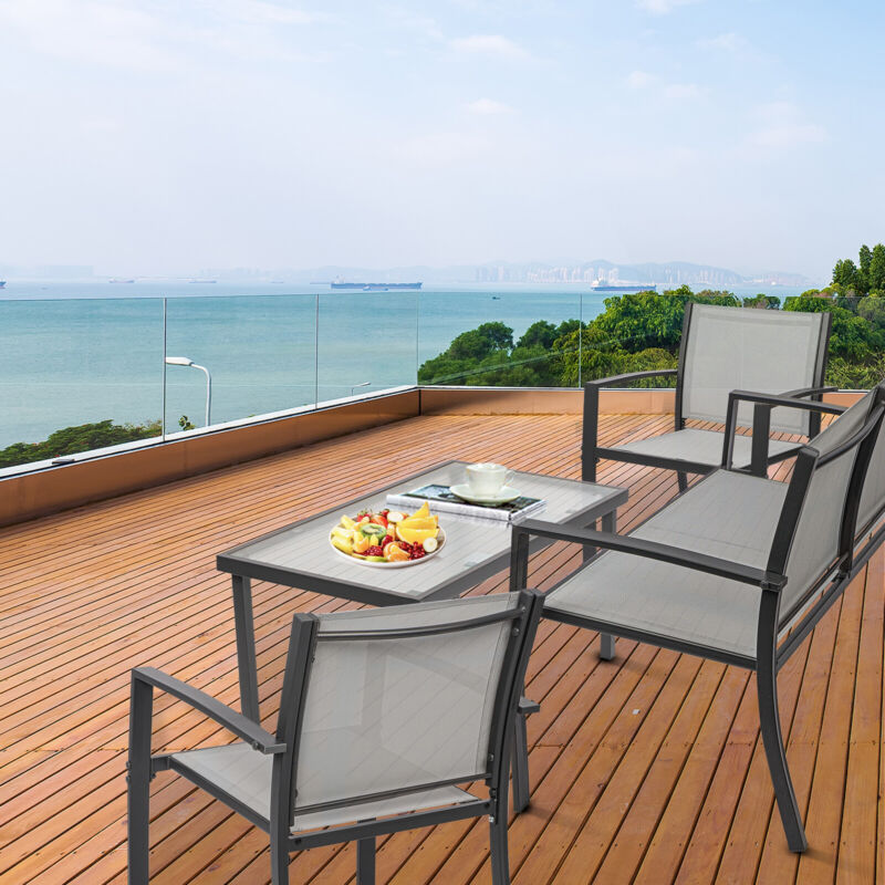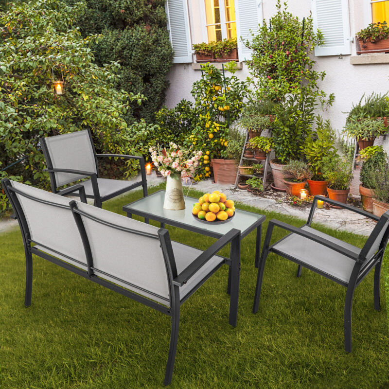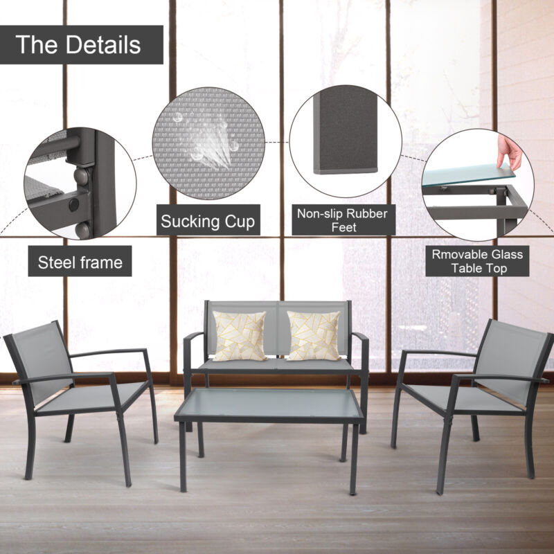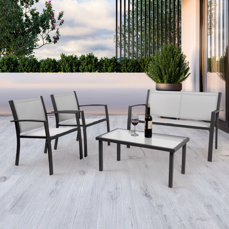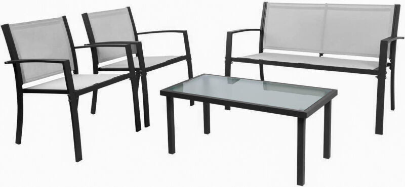 4 Pcs Garden Furniture Set Table &Chairs Patio Balcony Outdoor Indoor Glass Mesh