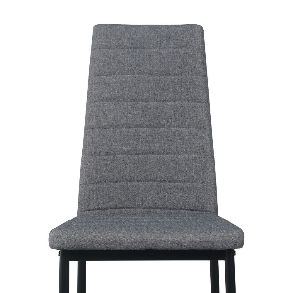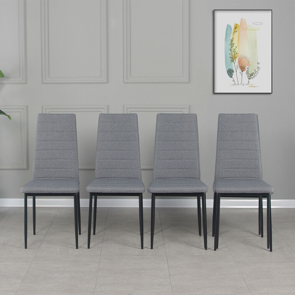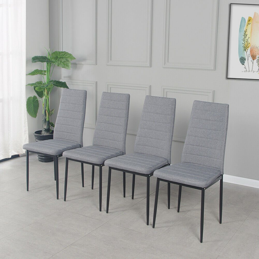 4 PCS Grey Linen Fabric Dining Chairs Set Padded Seat High Back Home Furniture