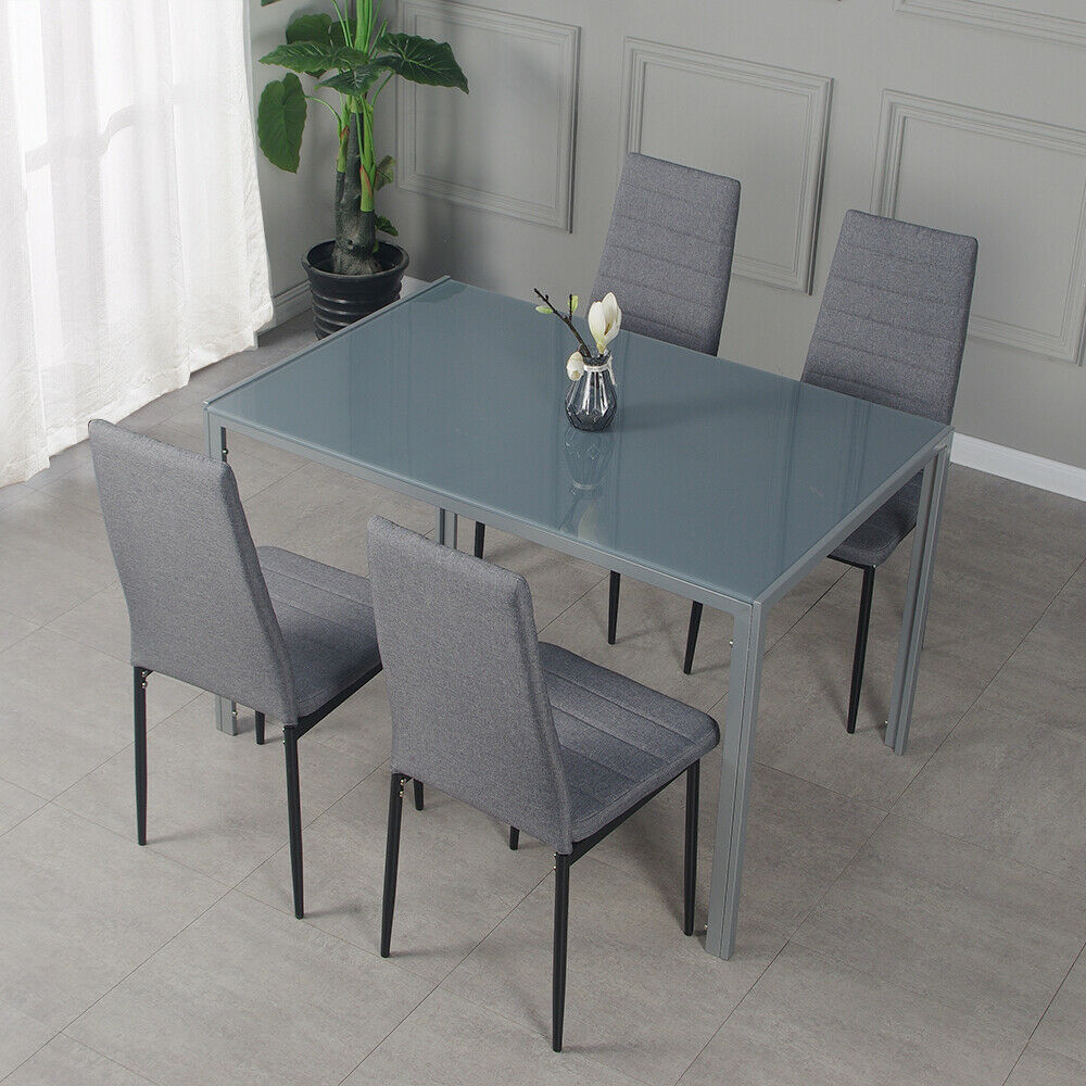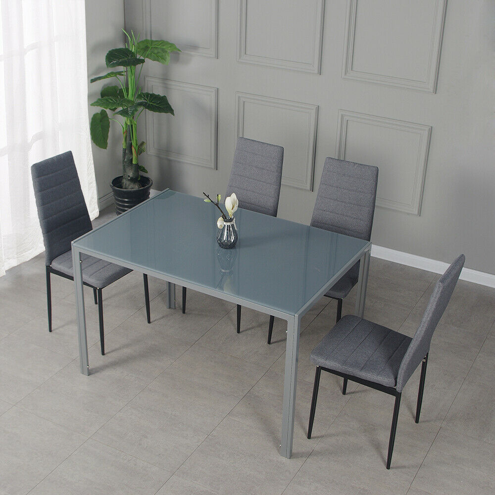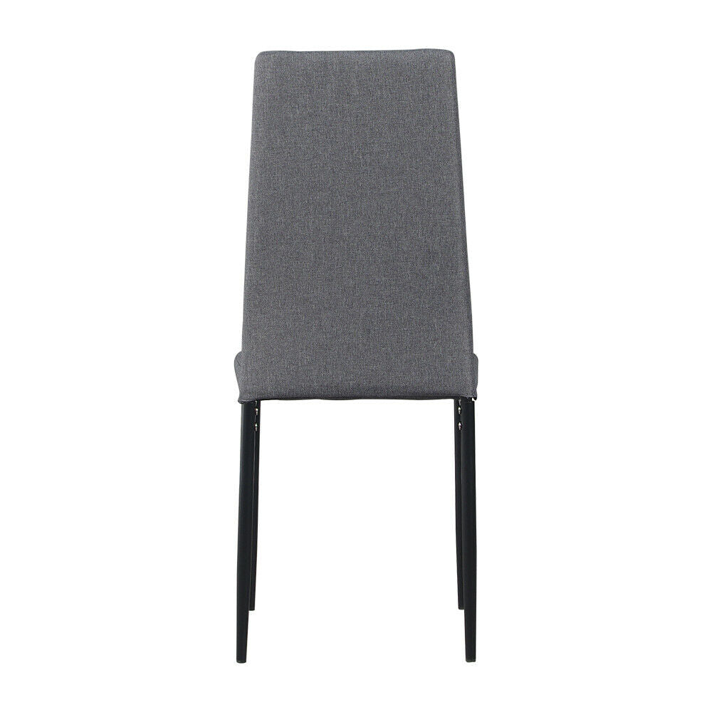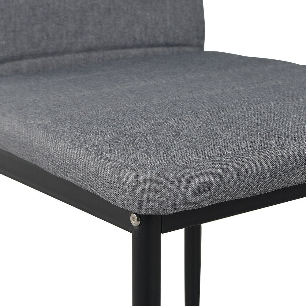 4 PCS Grey Linen Fabric Dining Chairs Set Padded Seat High Back Home Furniture