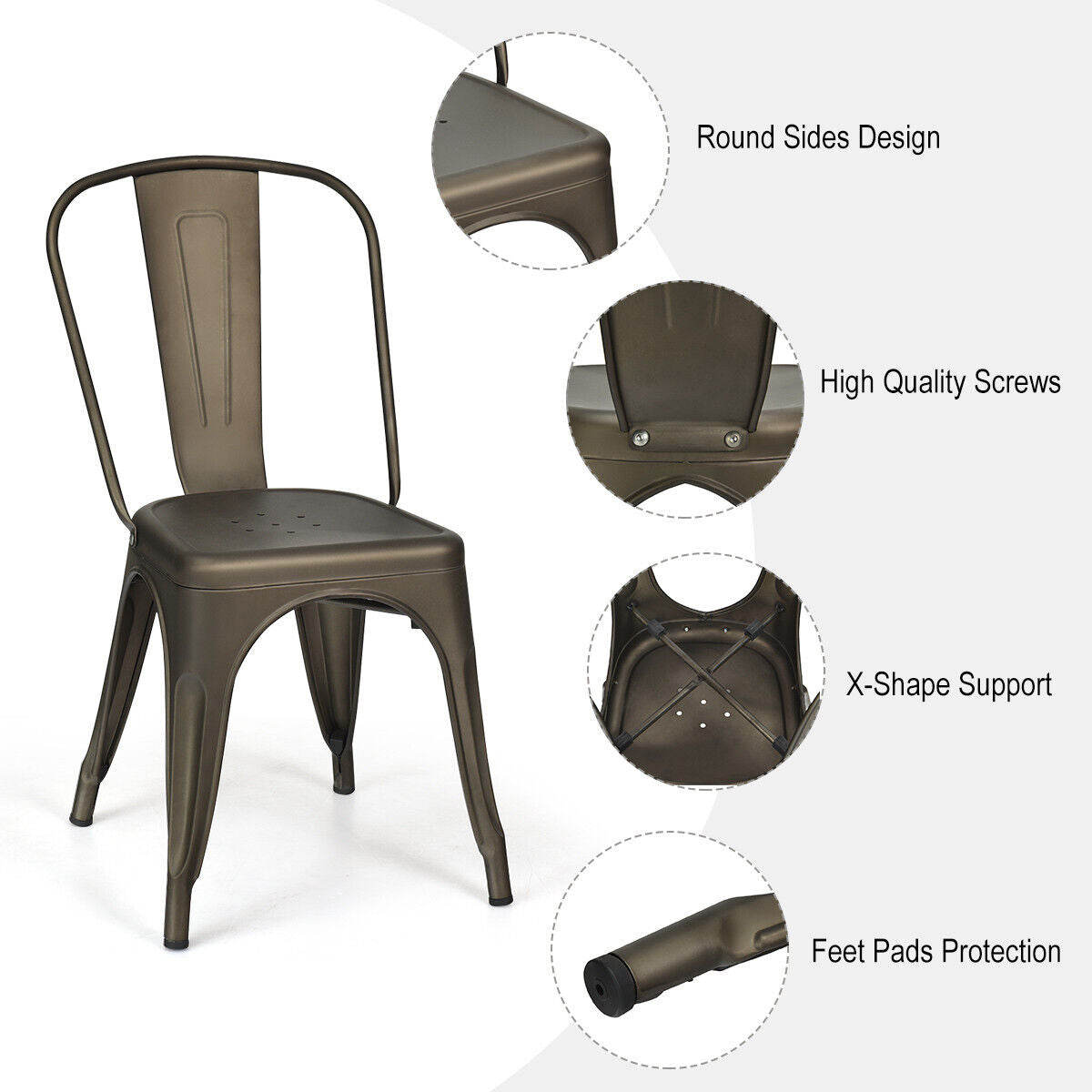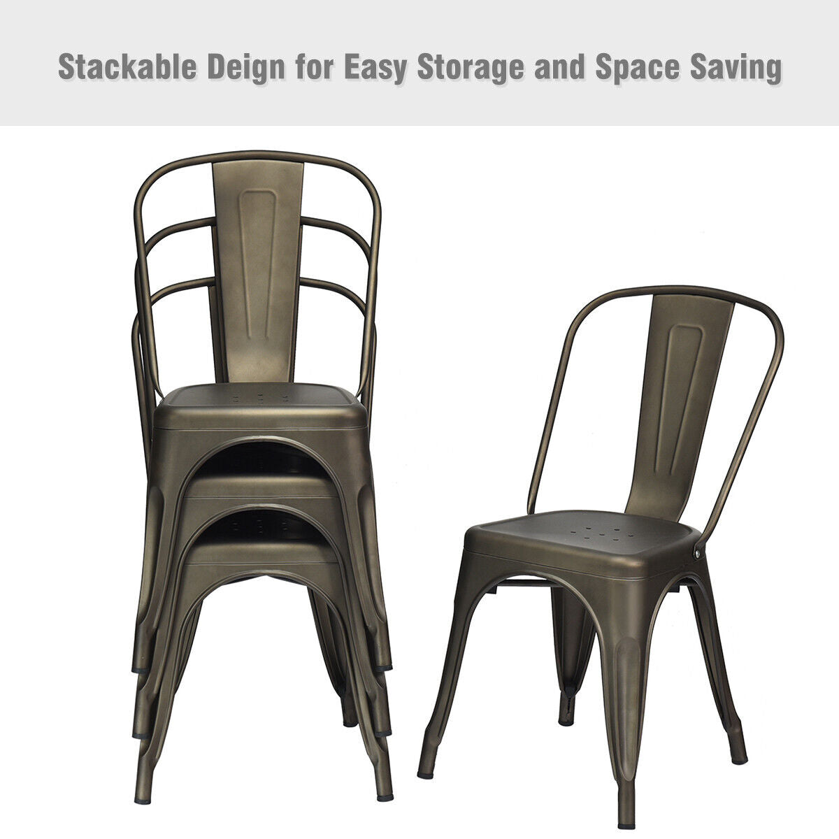 4 Pcs Kitchen Dining Chair Gun Metal Stackable Side Seat Cafe Bar Chairs Gun