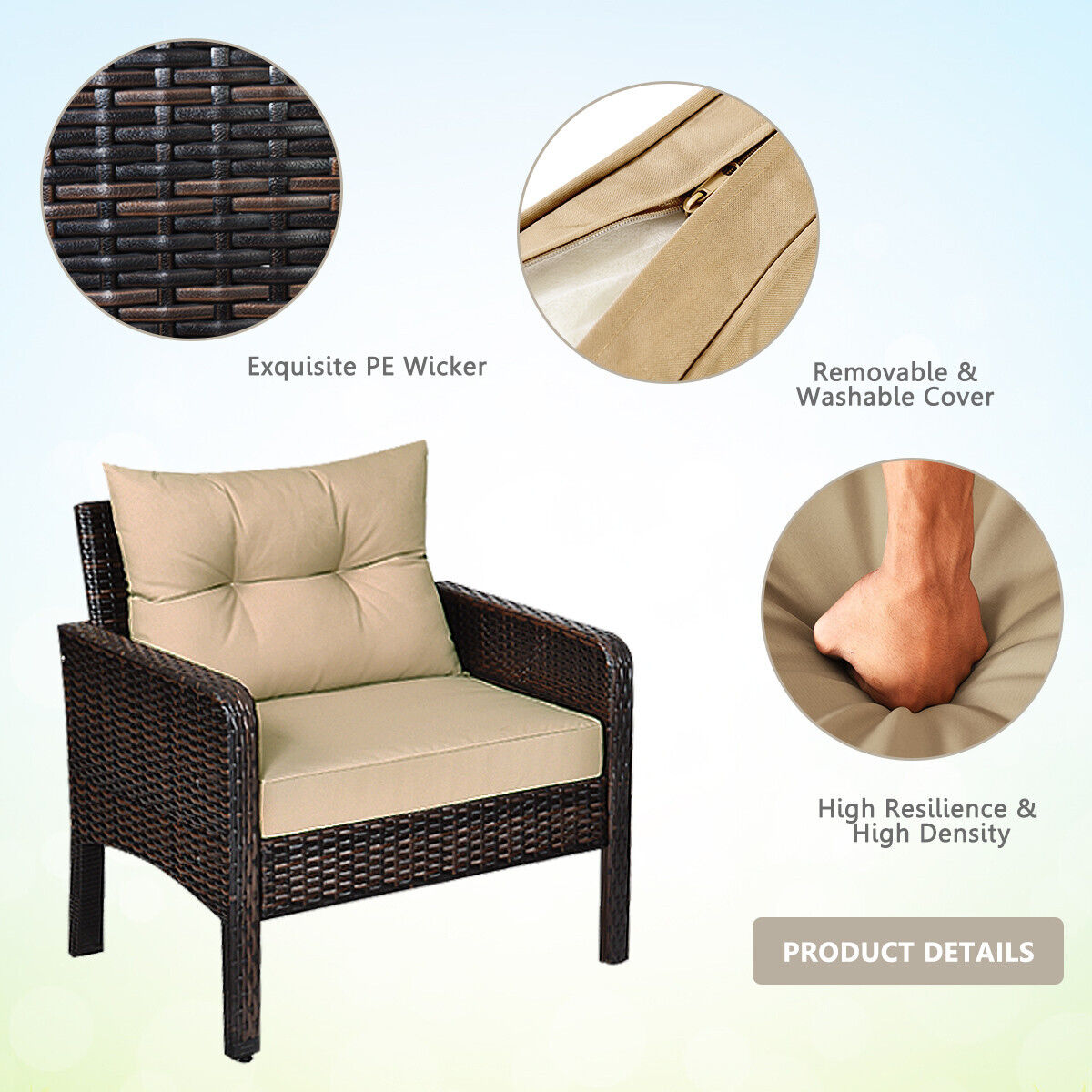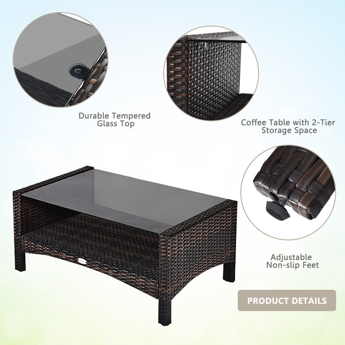 4 Pcs Outdoor Table Chair Furniture Set PE Rattan Patio Sectional Sofa Set