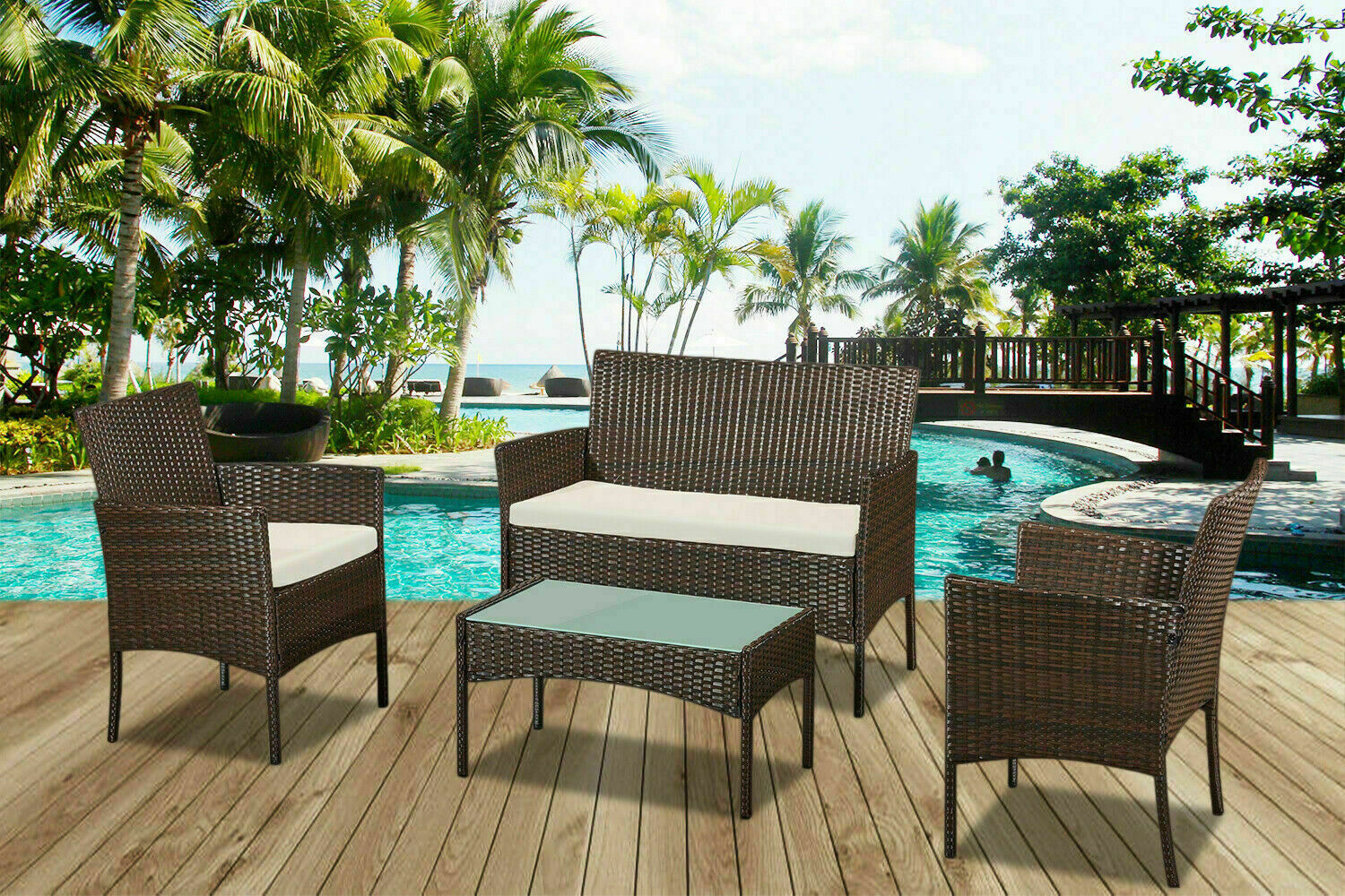 4 PCS Rattan Garden Furniture Set chairs sofa Table Outdoor Patio Conservatory