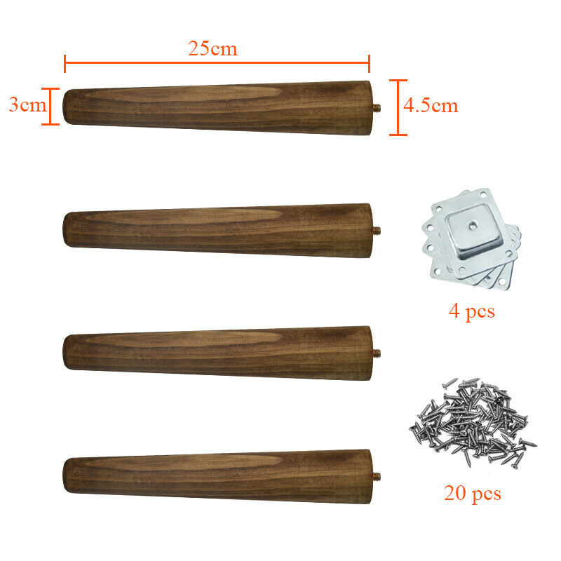 With fixing plate, With Screws, Solid Wood Legs, 4 pcs legs in one set, Beech Pine Poplar Legs, For table chairs tv stand coffee table, DIY Legs, Fixed, Flat Pack