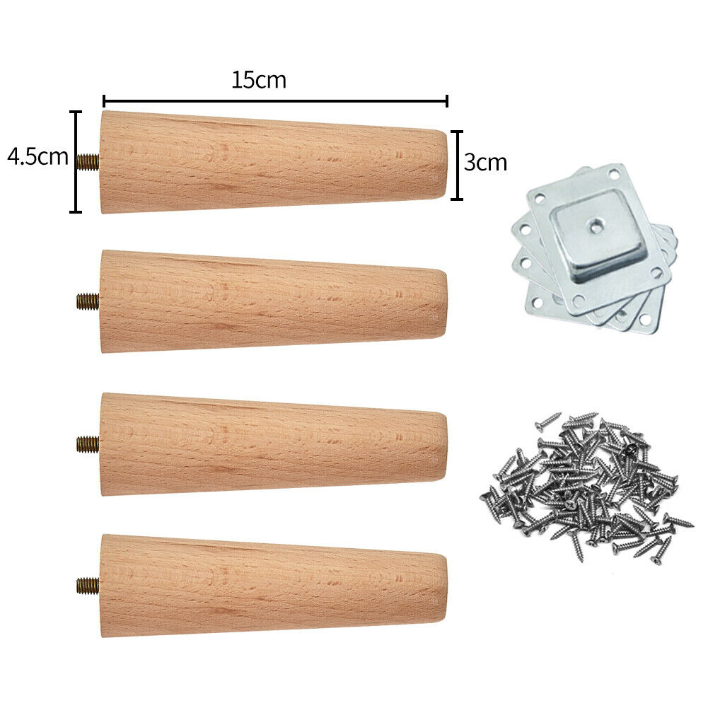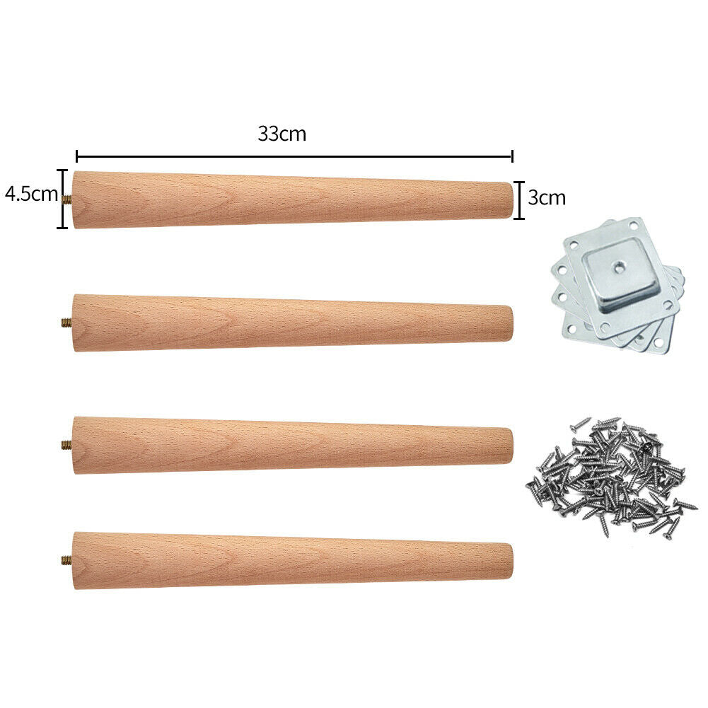 4 PCS Solid Wood Legs Beech Pine Poplar Table Legs DIY with Fixing Plates Screws