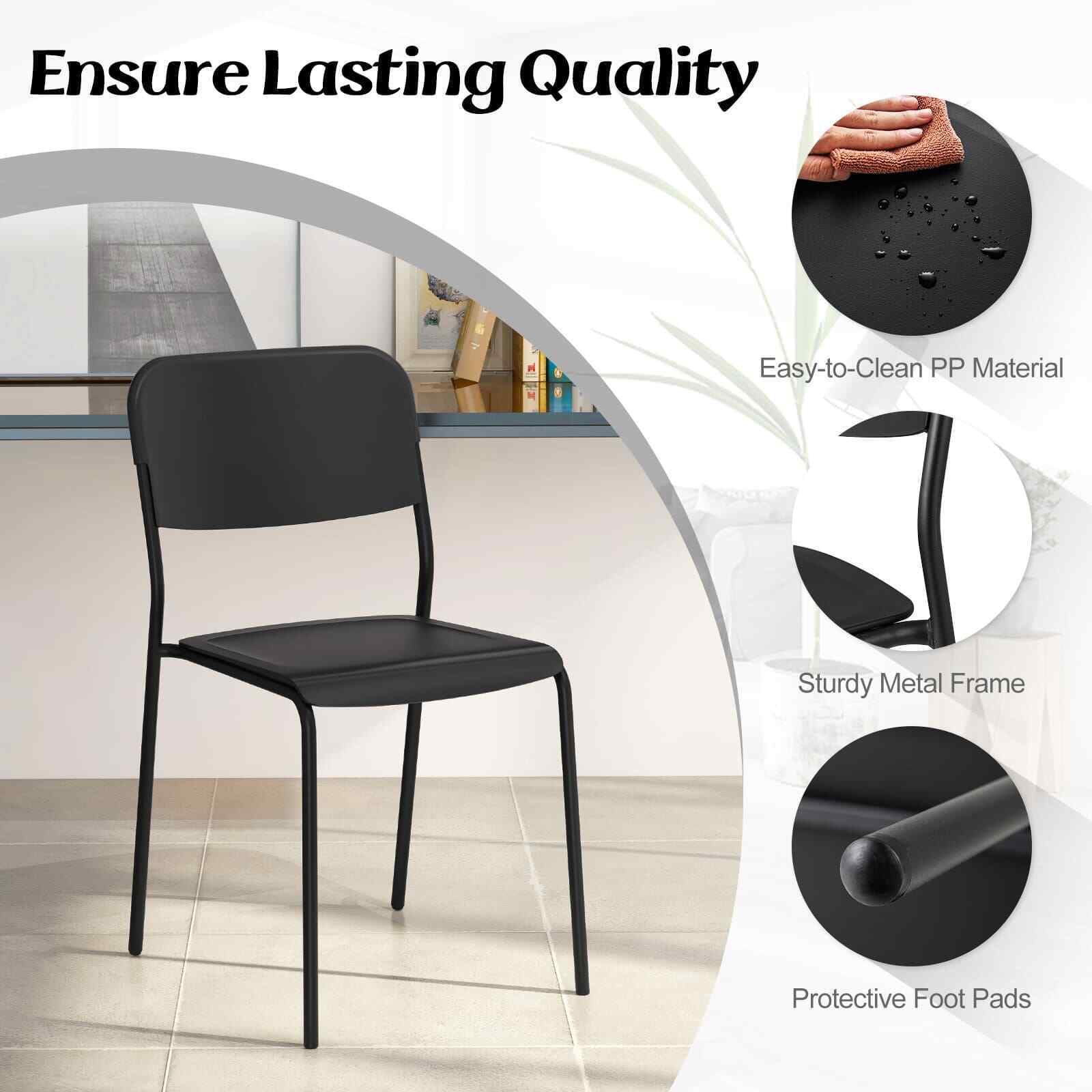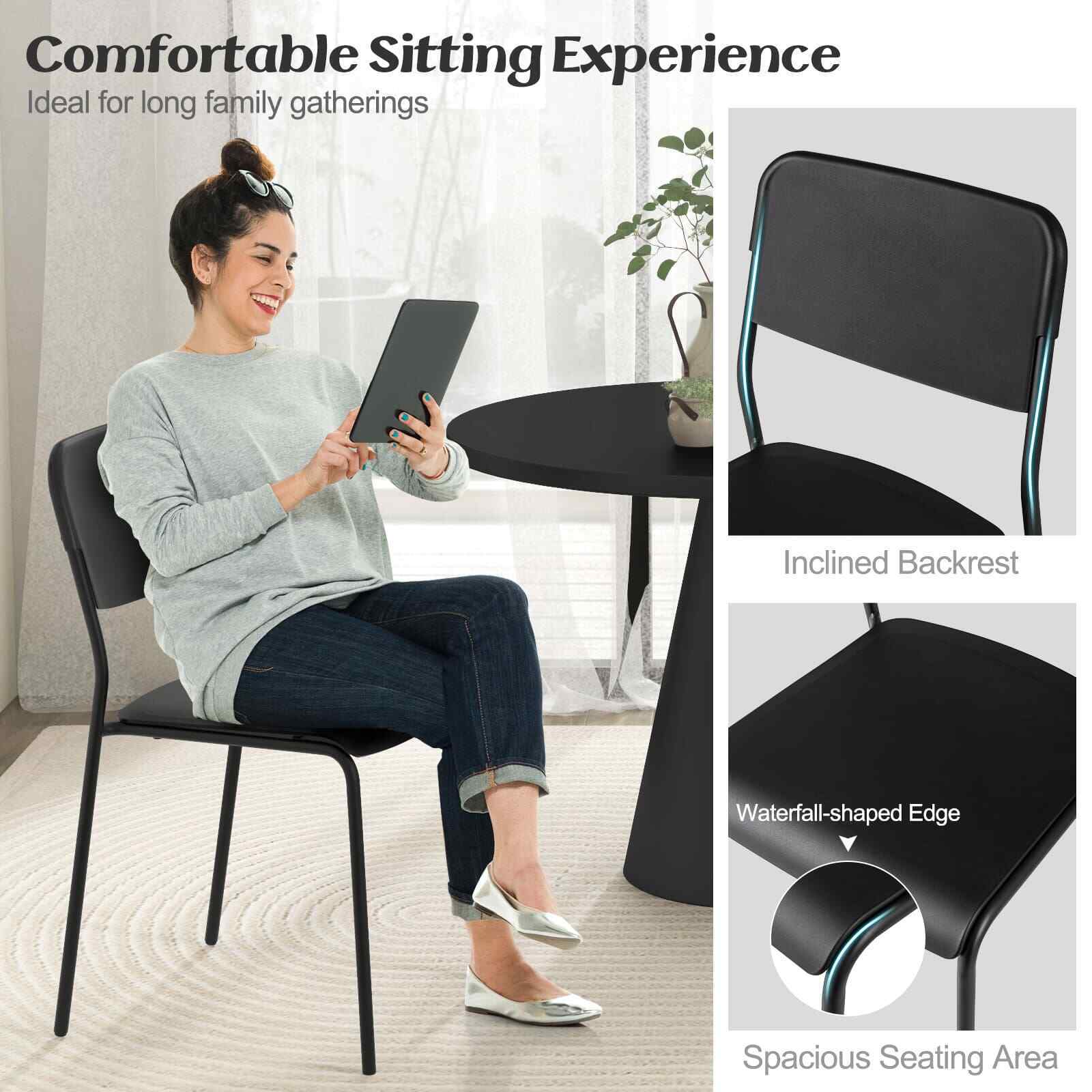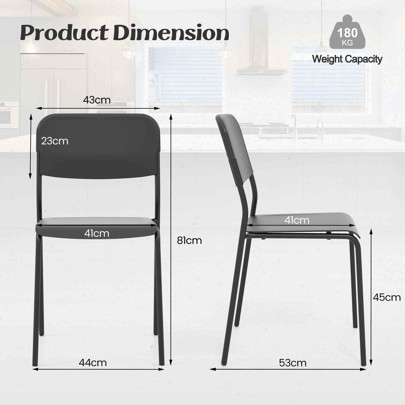 4 pcs Stackable Kitchen Chairs Plastic Chairs Set Dining Room-Black