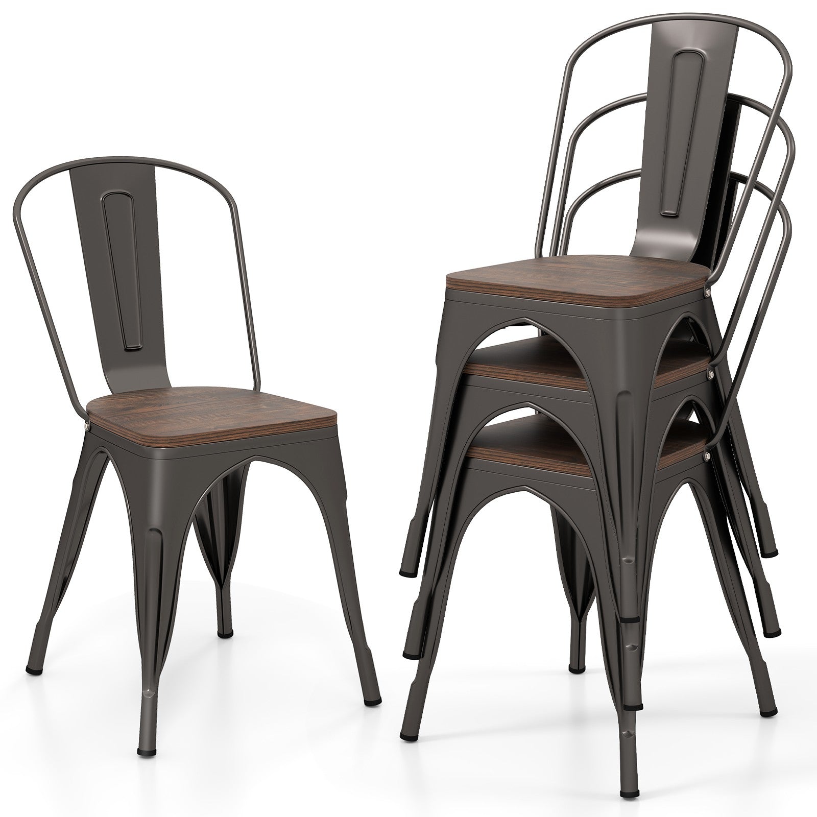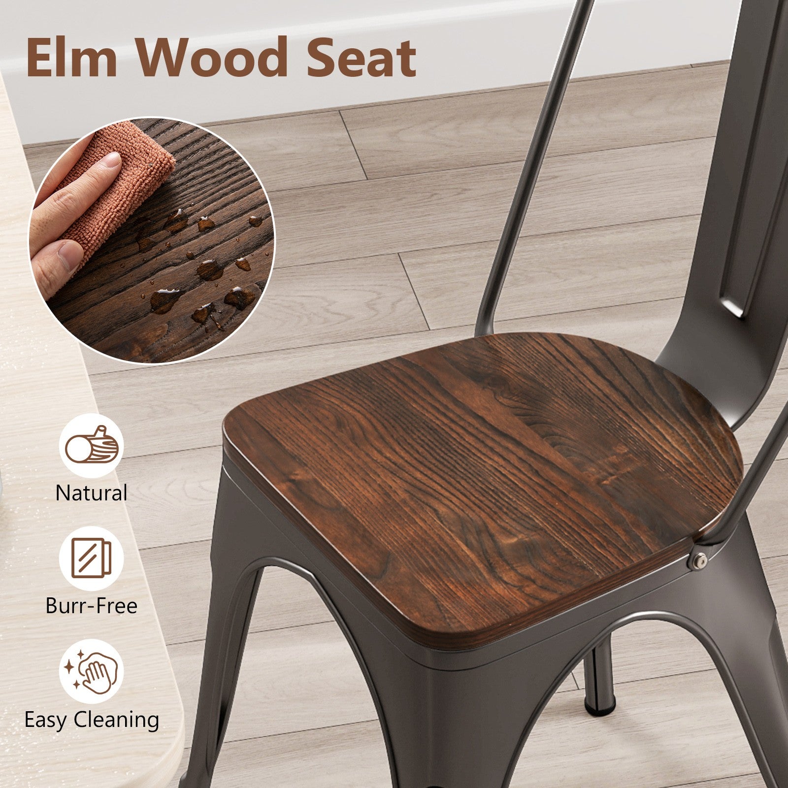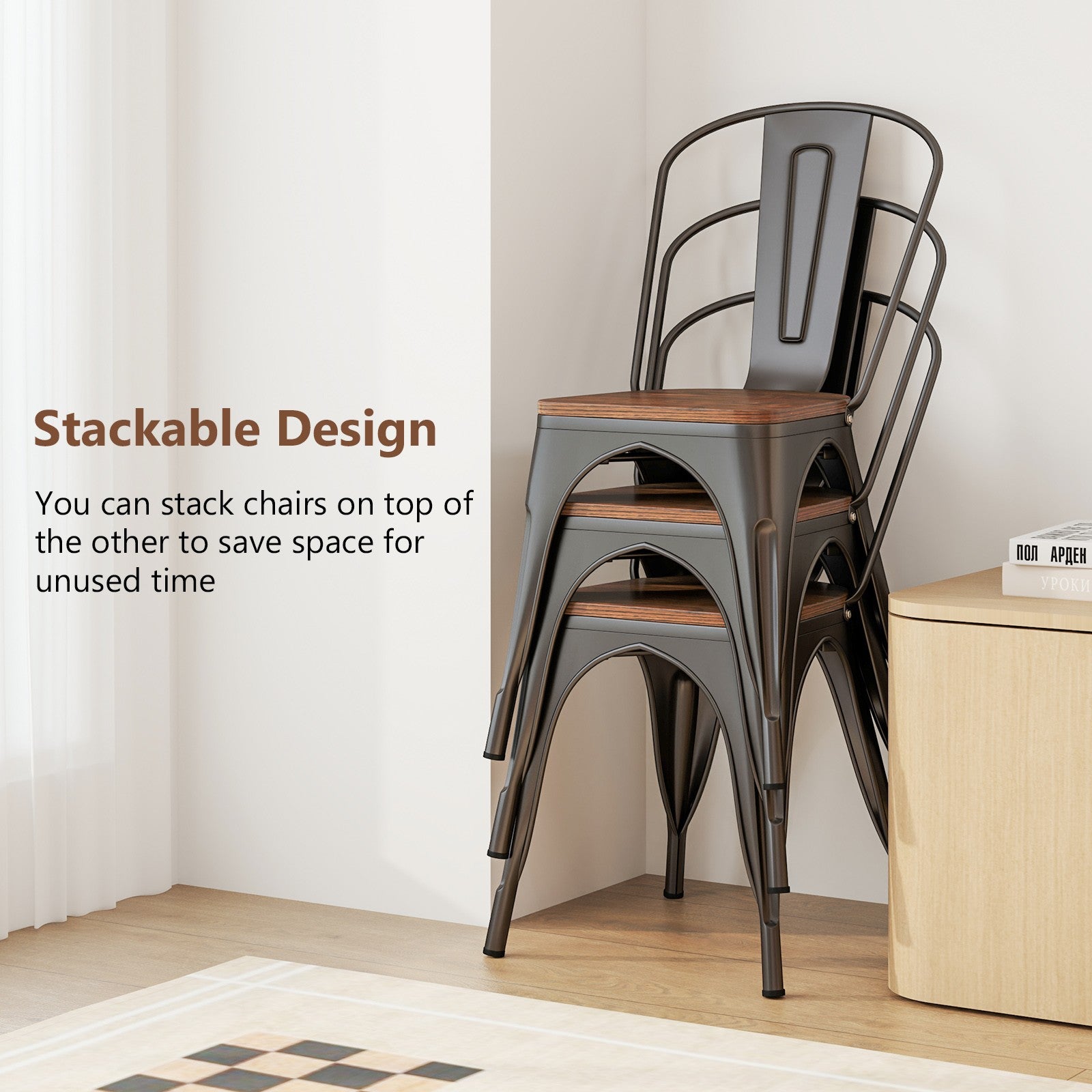 4 Pcs Stackable Kitchen Side Chairs with Wood Seat-Gun