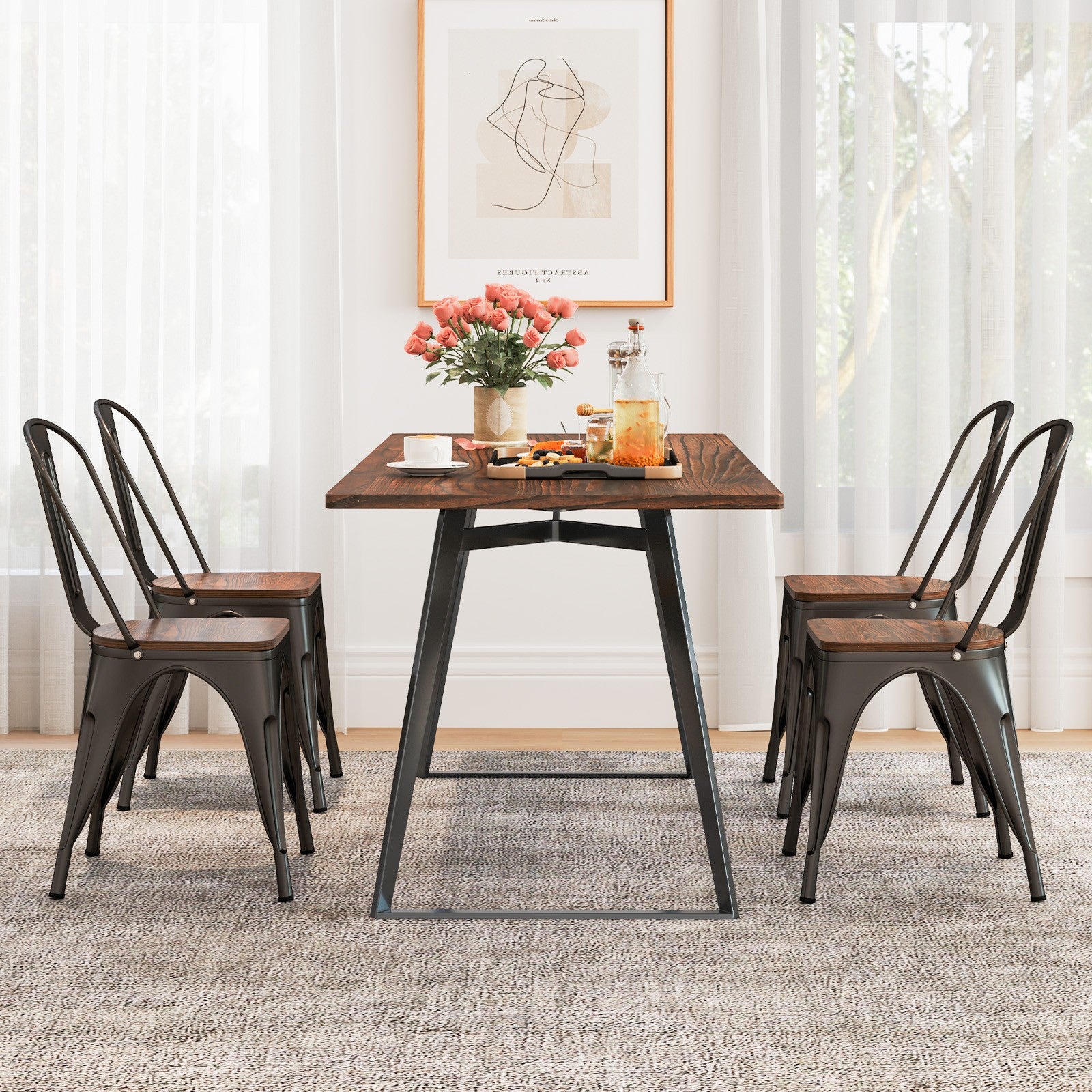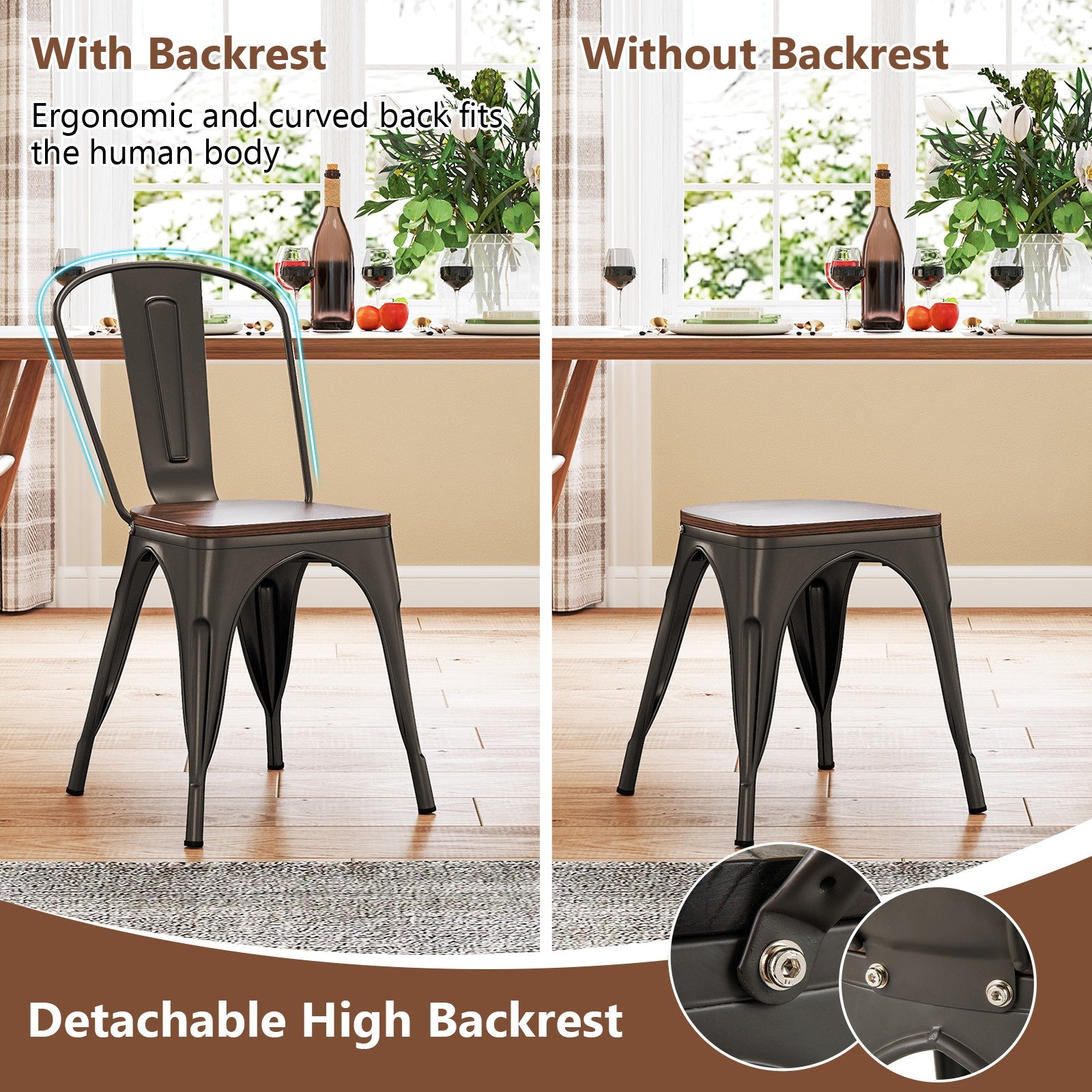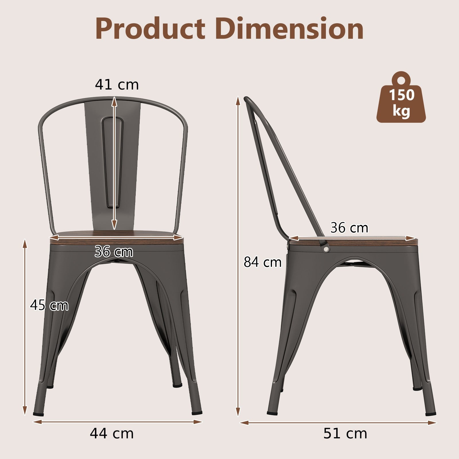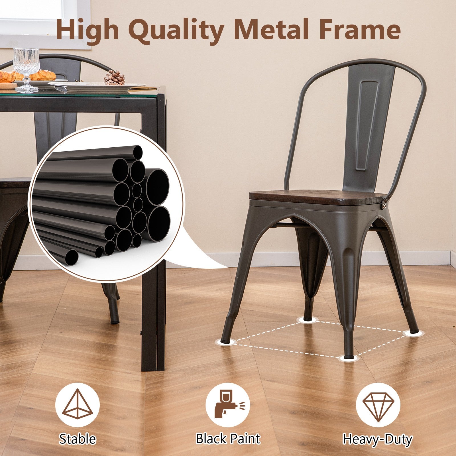4 Pcs Stackable Kitchen Side Chairs with Wood Seat-Gun