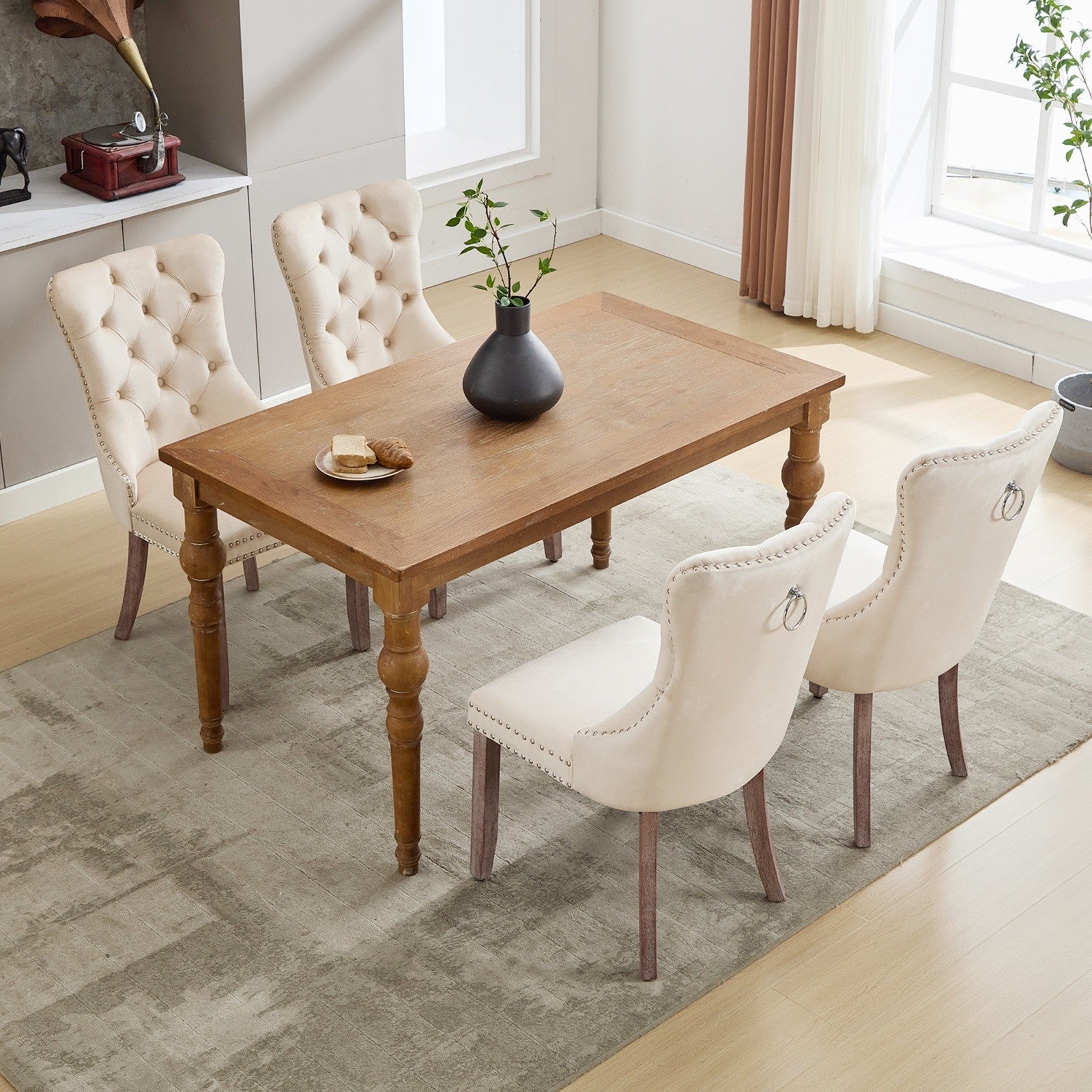 4 Pcs Velvet Dining Chairs High Back Wooden Legs for Home Dining Room Kitchen