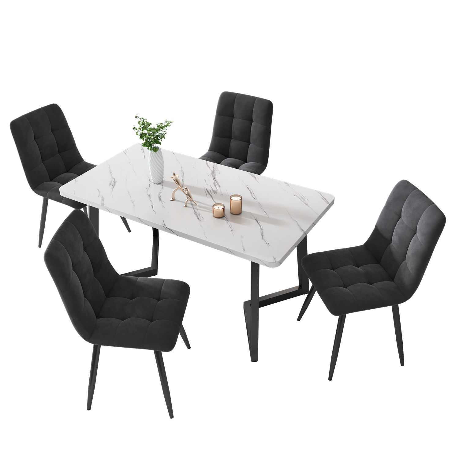 4 Pcs Velvet Dining Chairs Set Soft Padded Seat Metal Leg Modern Office Kitchen