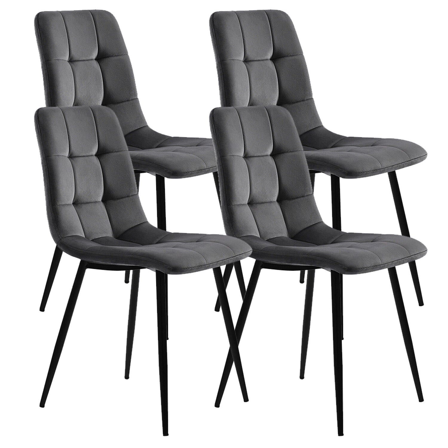 4 Pcs Velvet Dining Chairs Set Soft Padded Seat Metal Leg Modern Office Kitchen