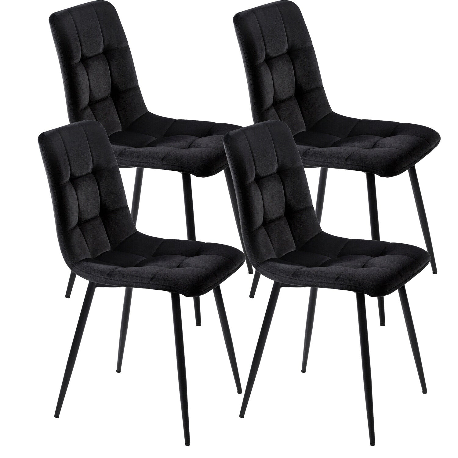 4 Pcs Velvet Dining Chairs Set Soft Padded Seat Metal Leg Office Kitchen Black