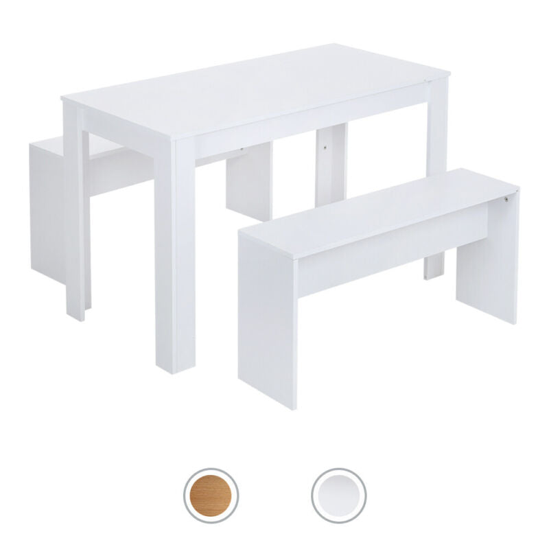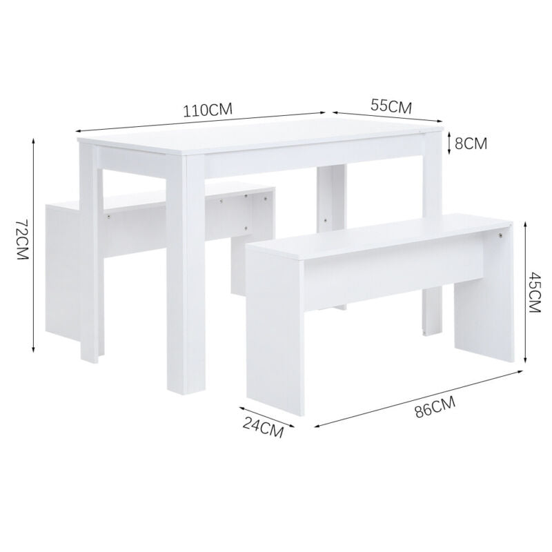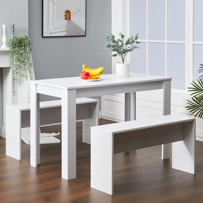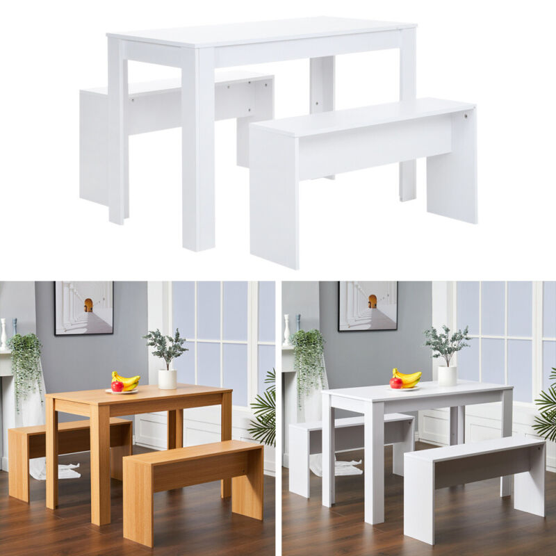 4 Persons Kitchen Table and 2 Bench Chairs Dining Room Compact Breakfast Seaters
