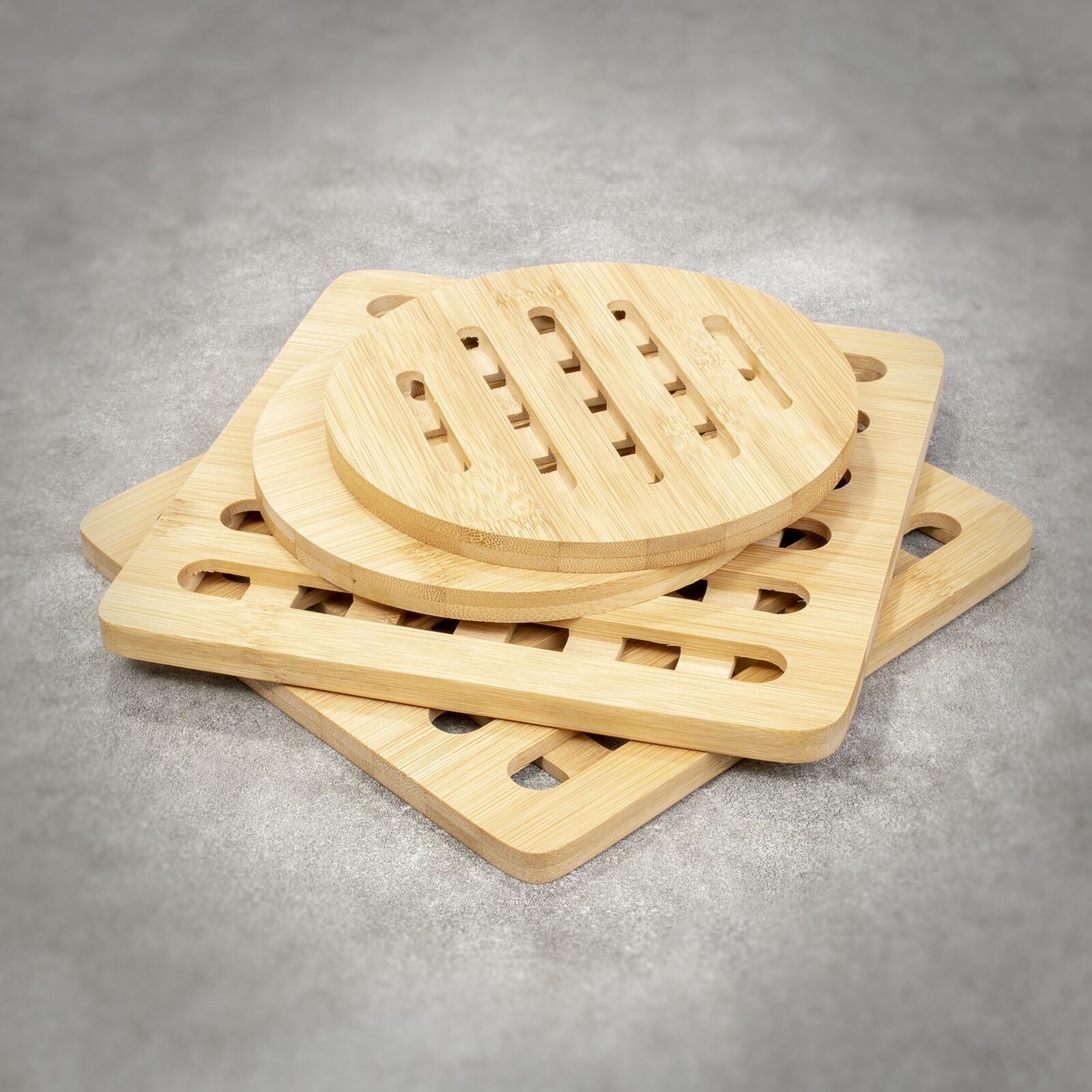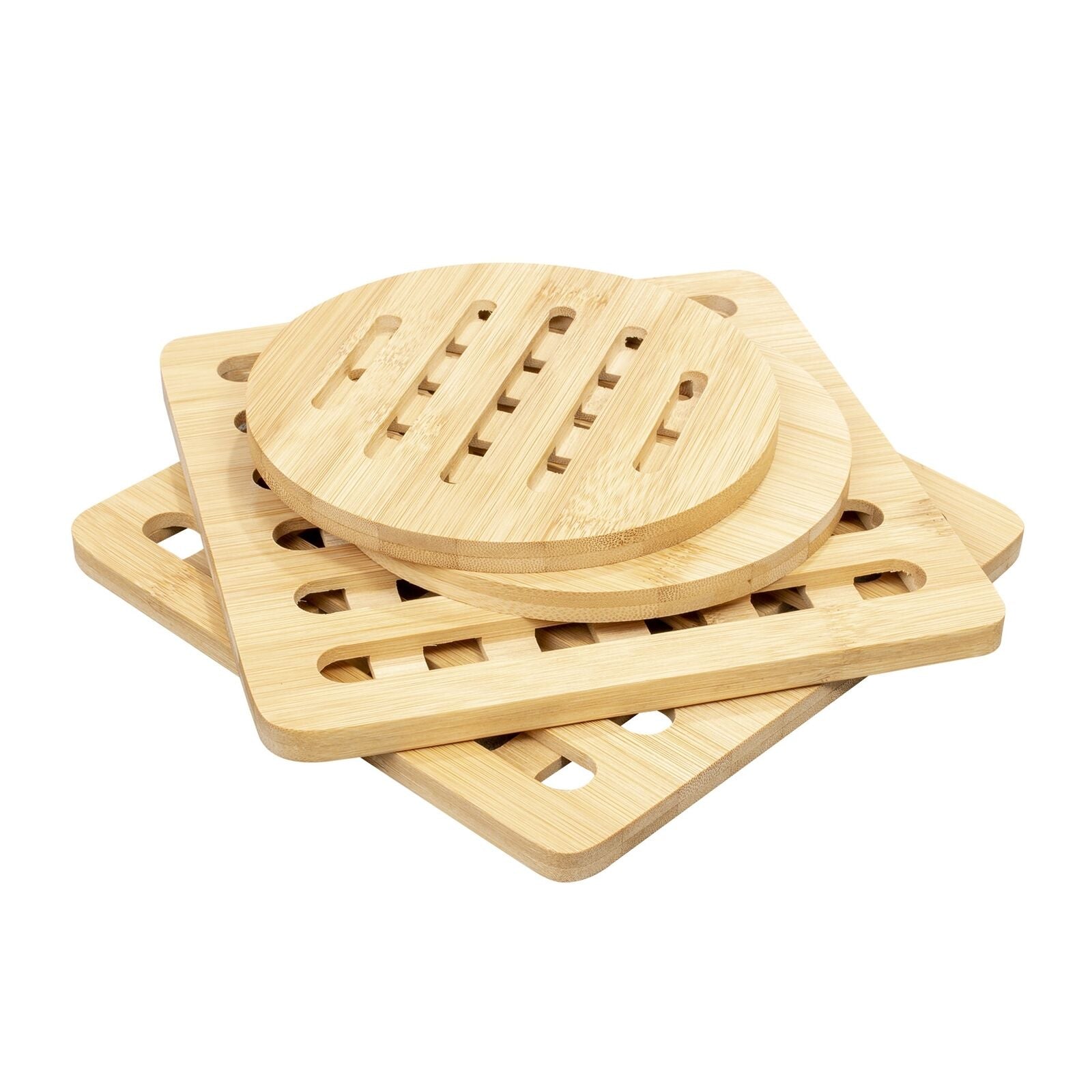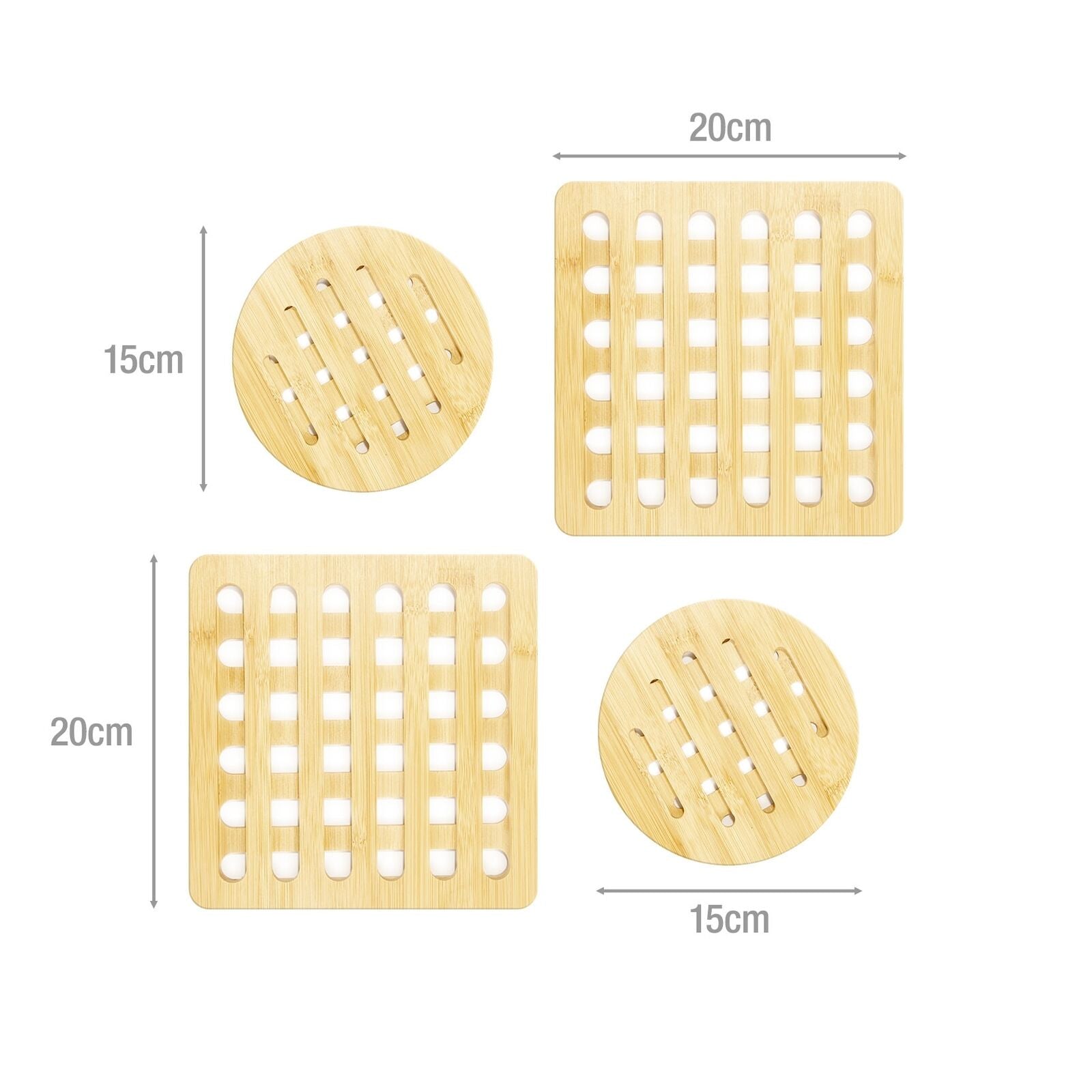 4 Piece Bamboo Trivet Pot Holder Heat-Resistant Pads for Kitchens & Dining