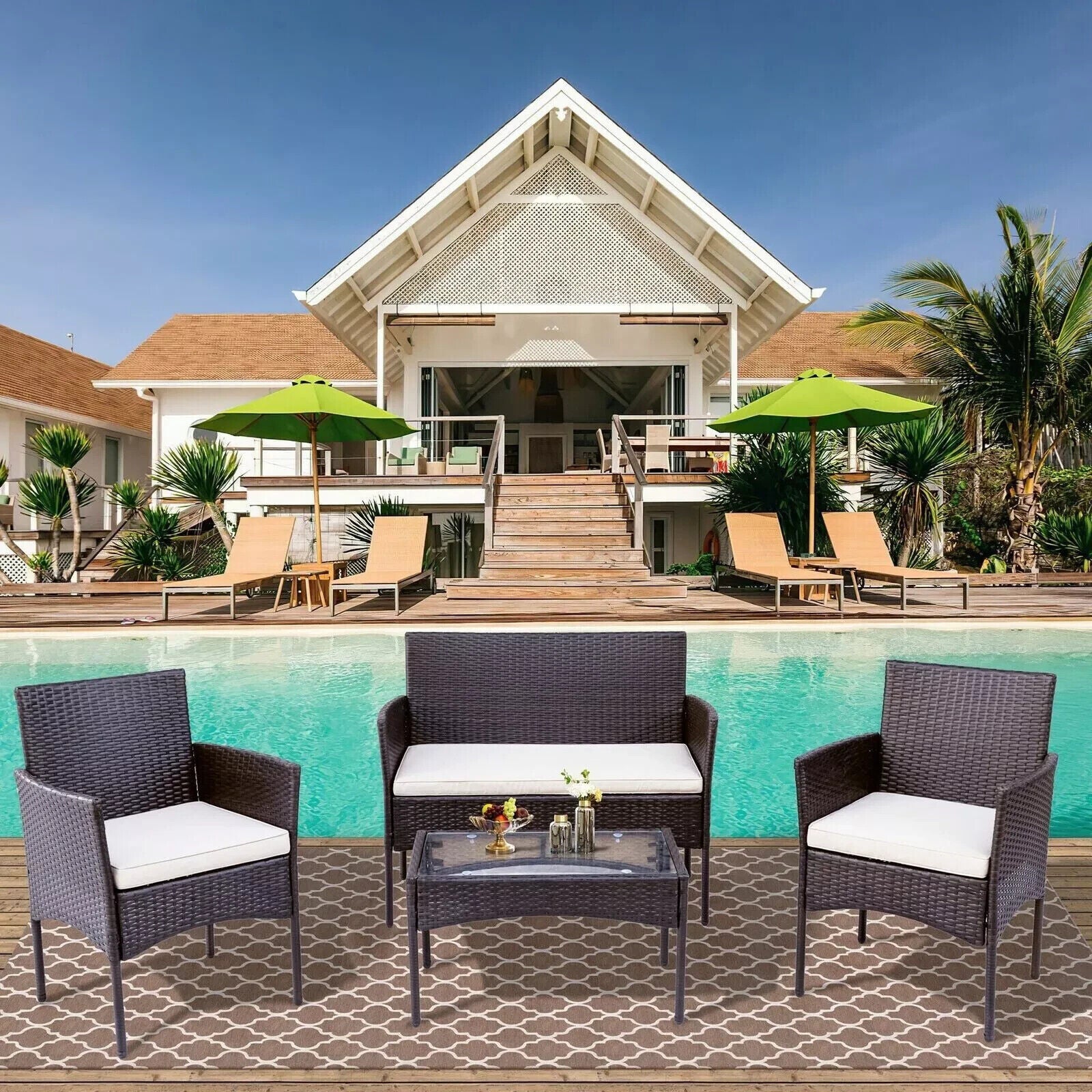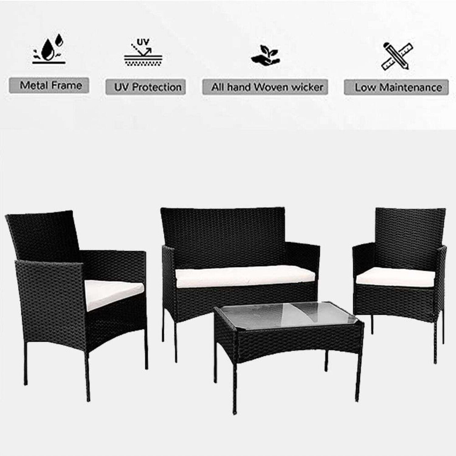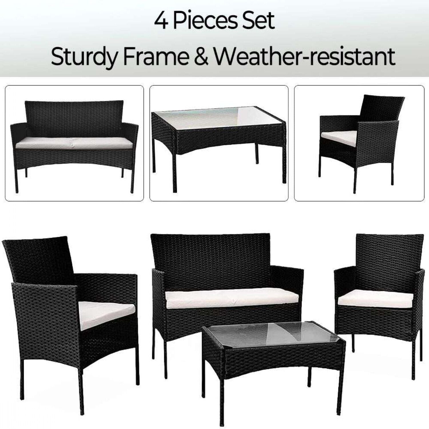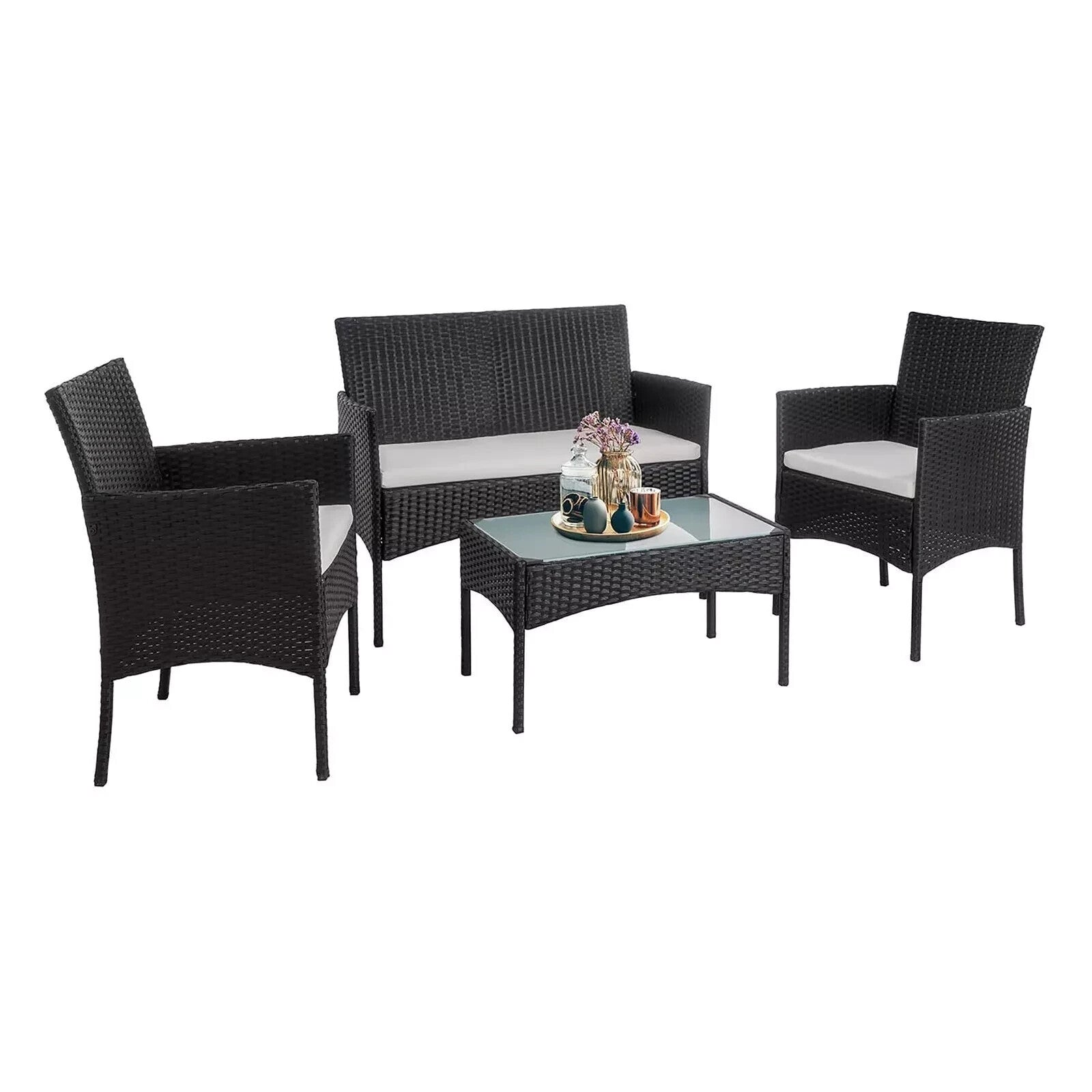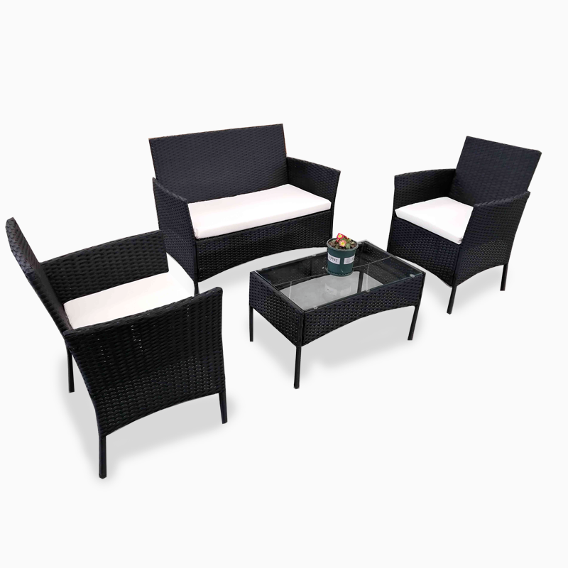 4 Piece Black Rattan Garden Furniture Set Outdoor Table Chairs Sofa Conservatory