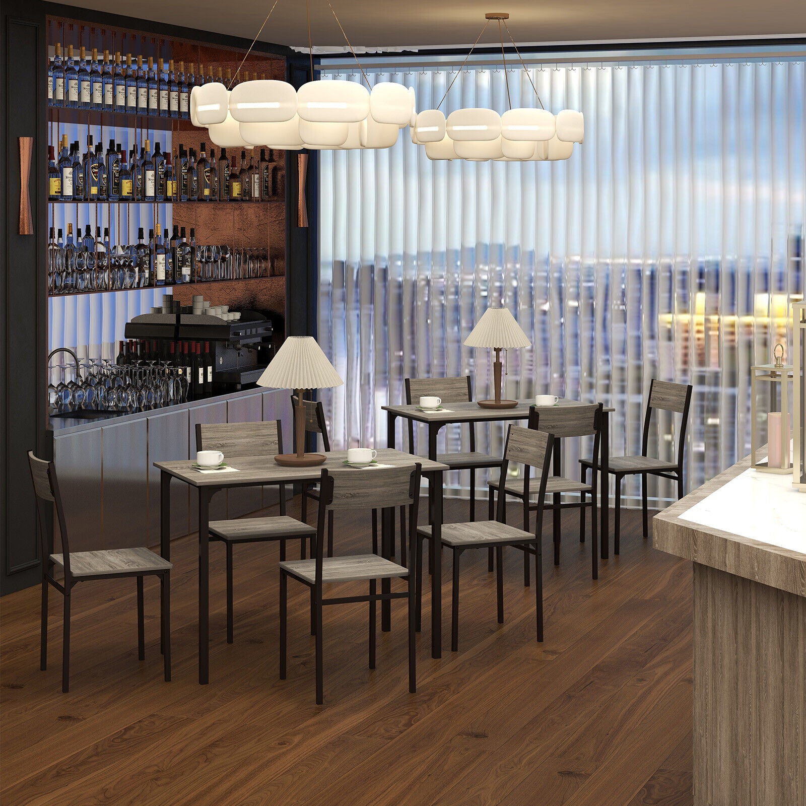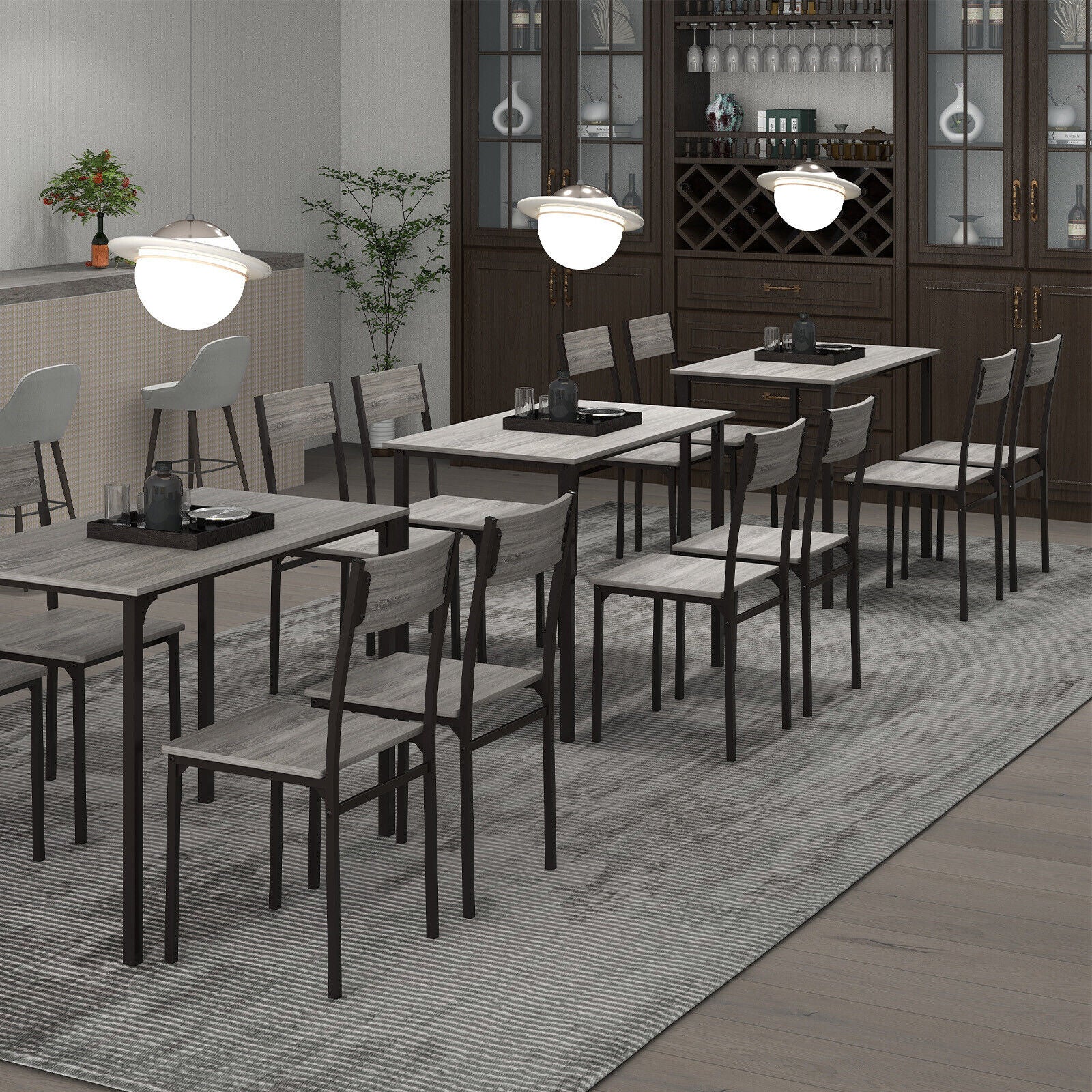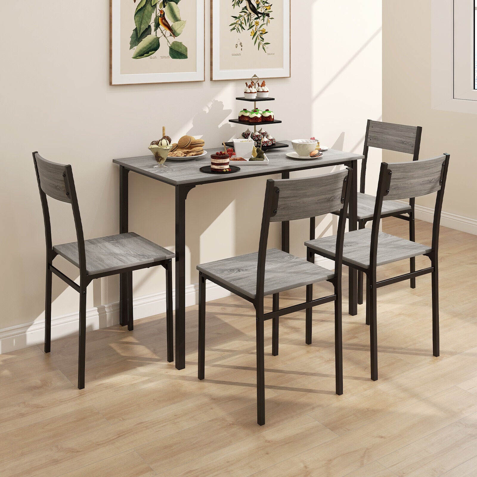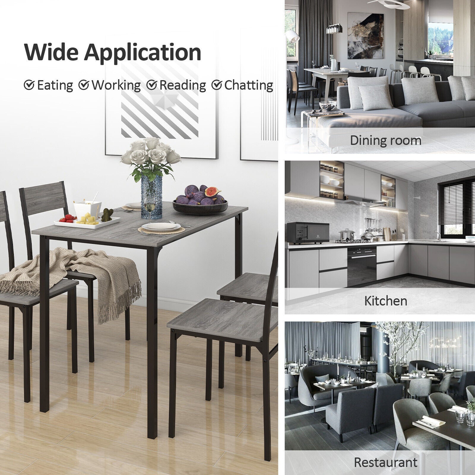 4 Piece Dining Table and Chairs Set Metal Frame Kitchen Table with 4 Seat Grey