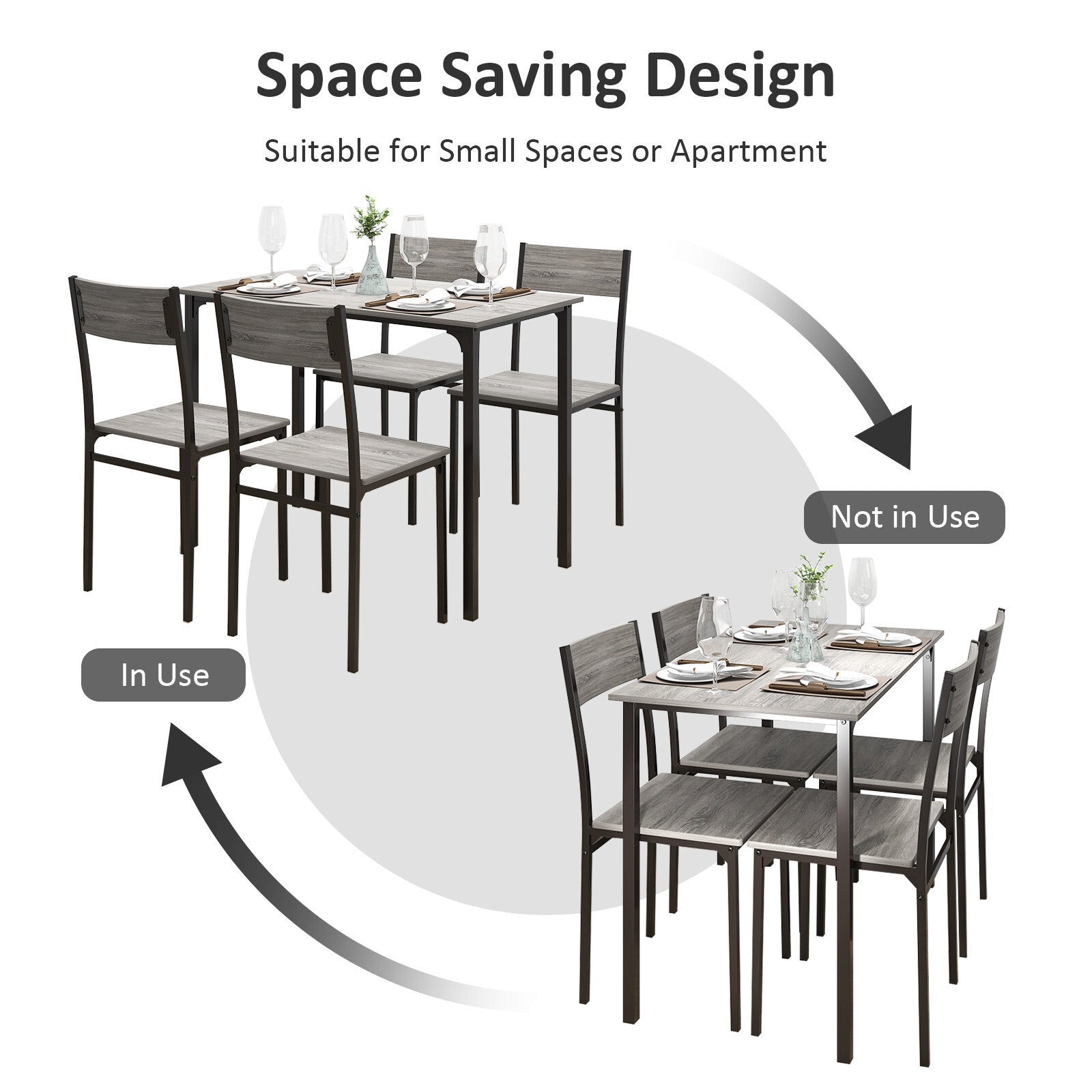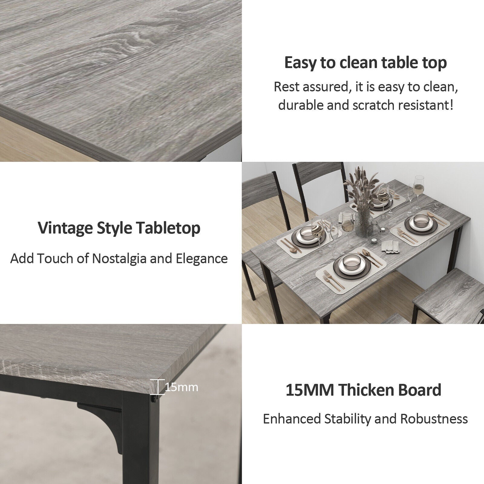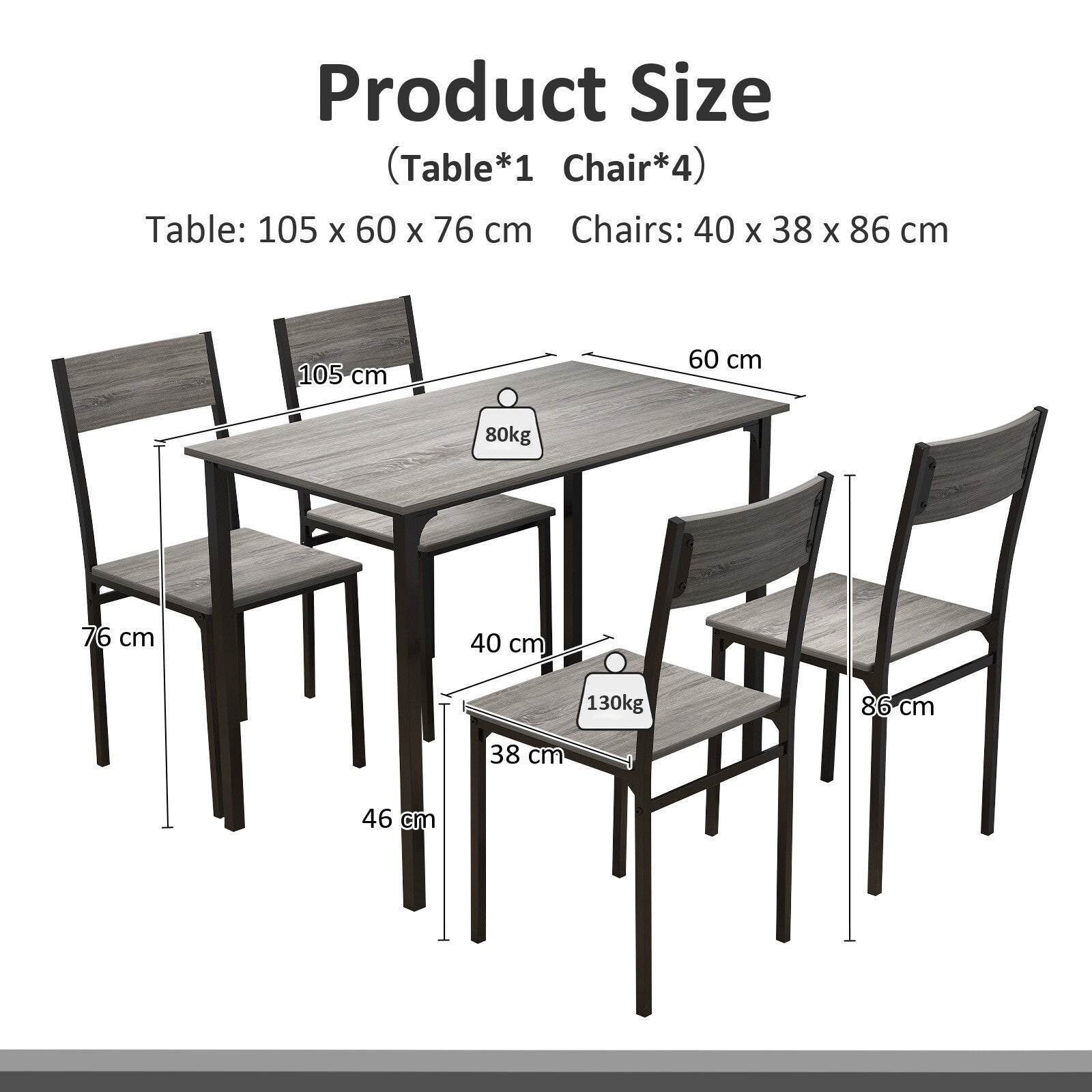 4 Piece Dining Table and Chairs Set Metal Frame Kitchen Table with 4 Seat Grey