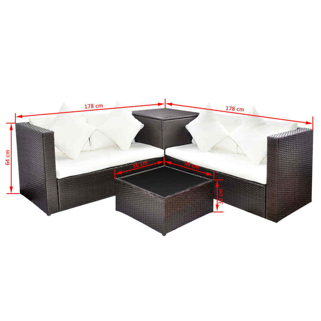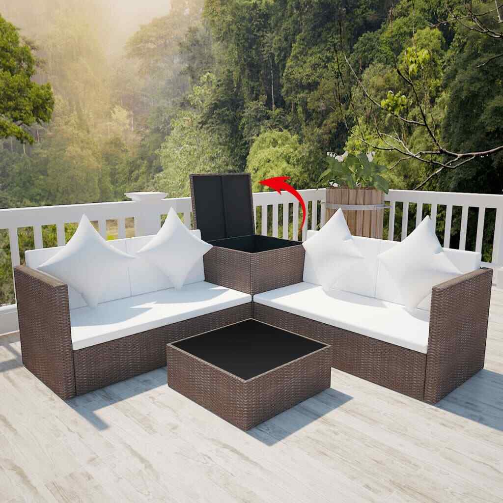 4 Piece Garden Lounge Set with Cushions Poly Rattan Brown vidaXL