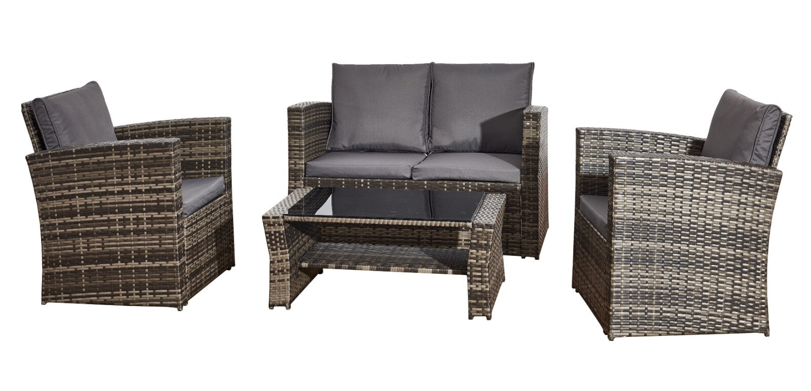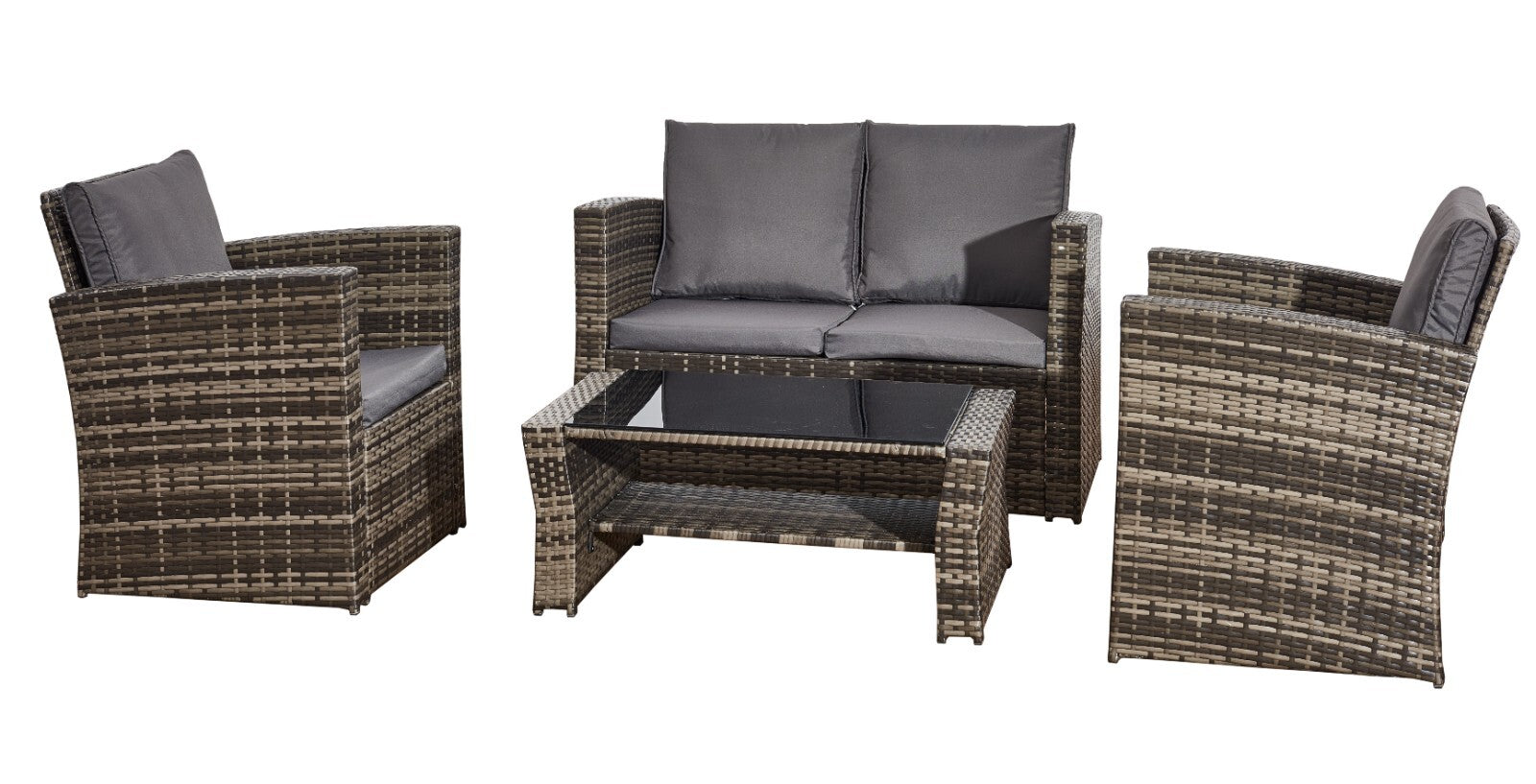 4 Piece Mix Grey Rattan Garden Sofa Set Outdoor Furniture Table Chairs & Cushion