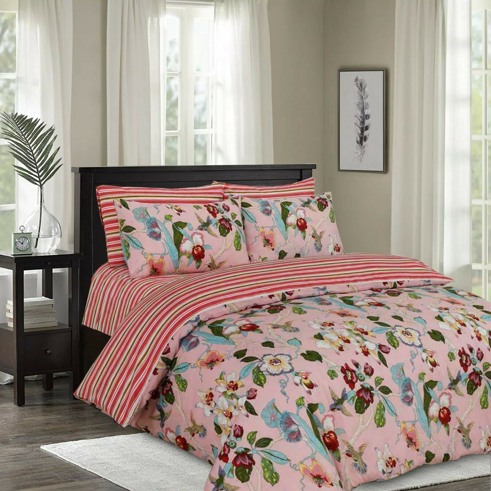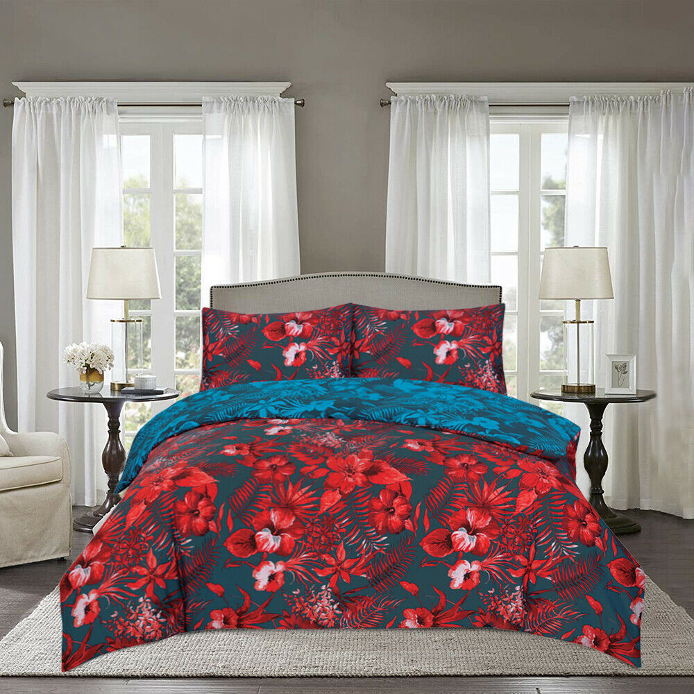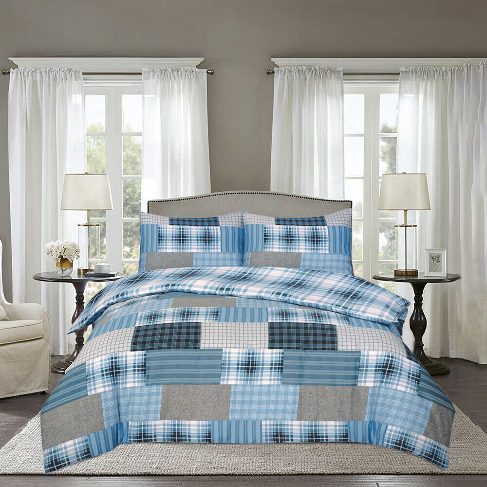 4 Piece Polycotton Duvet Cover Bed Set With Matching Pillow Cases & Fitted Sheet