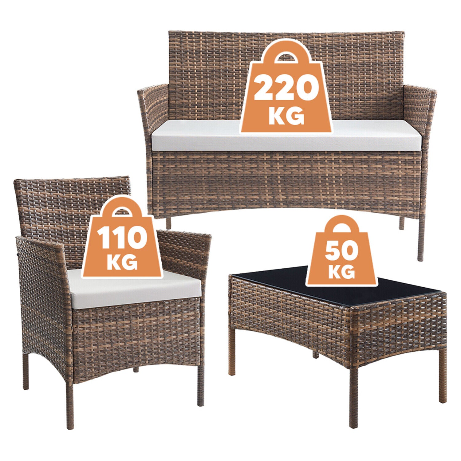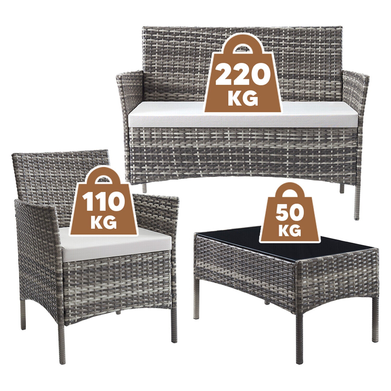 4 Piece Rattan Garden Furniture Set Table Chairs Sofa Wicker Outdoor Patio Set