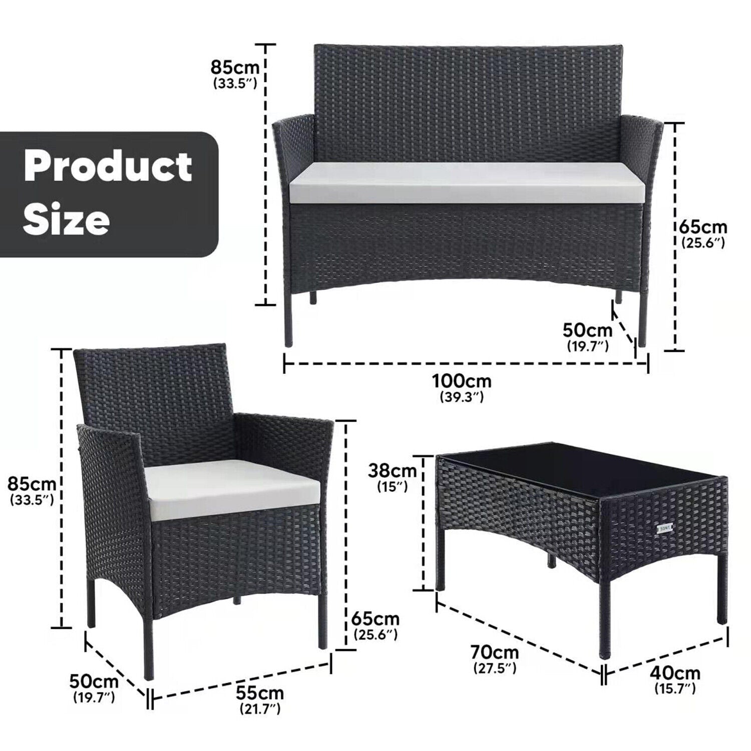 4 Piece Rattan Garden Furniture Set Table Chairs Wicker Ship to All Locations