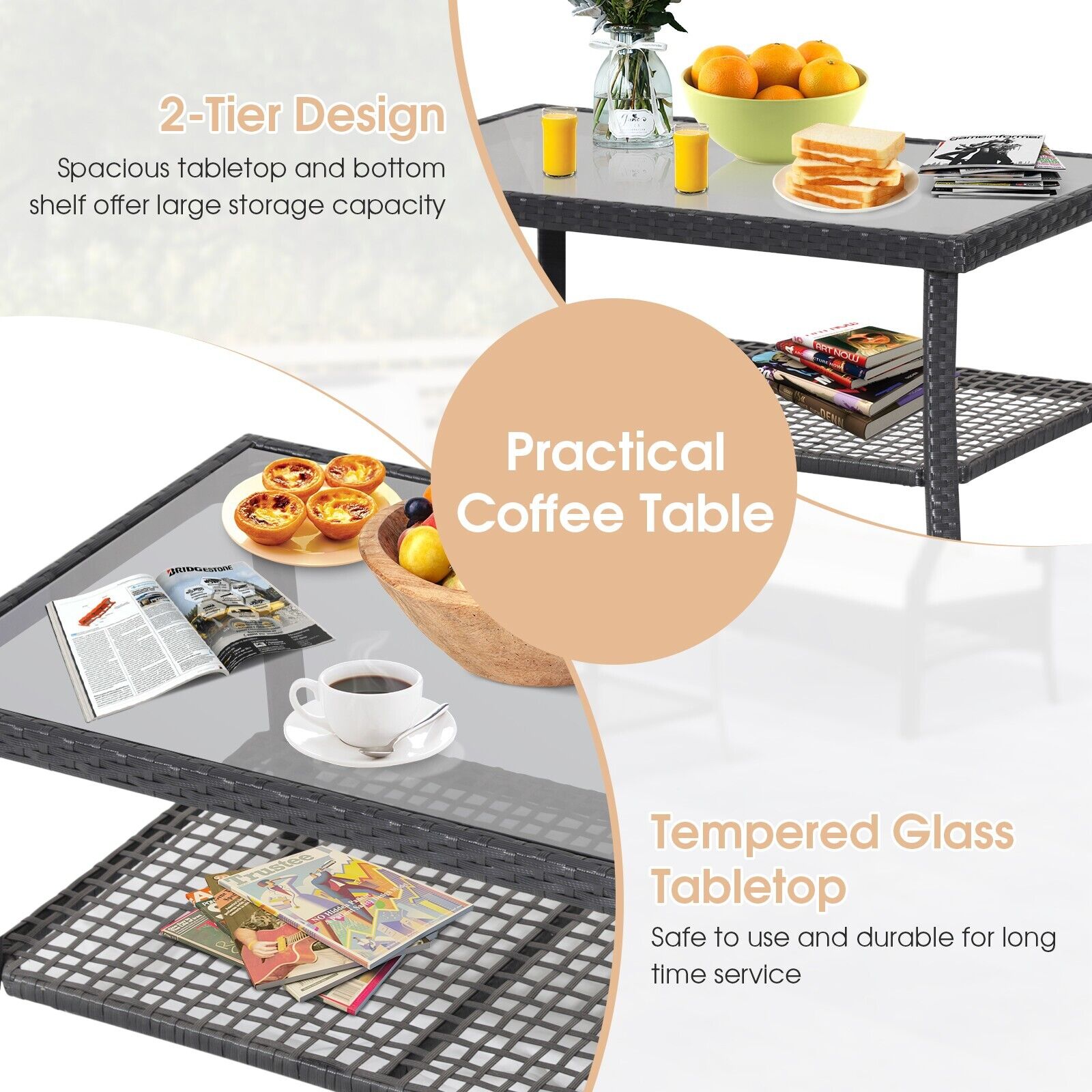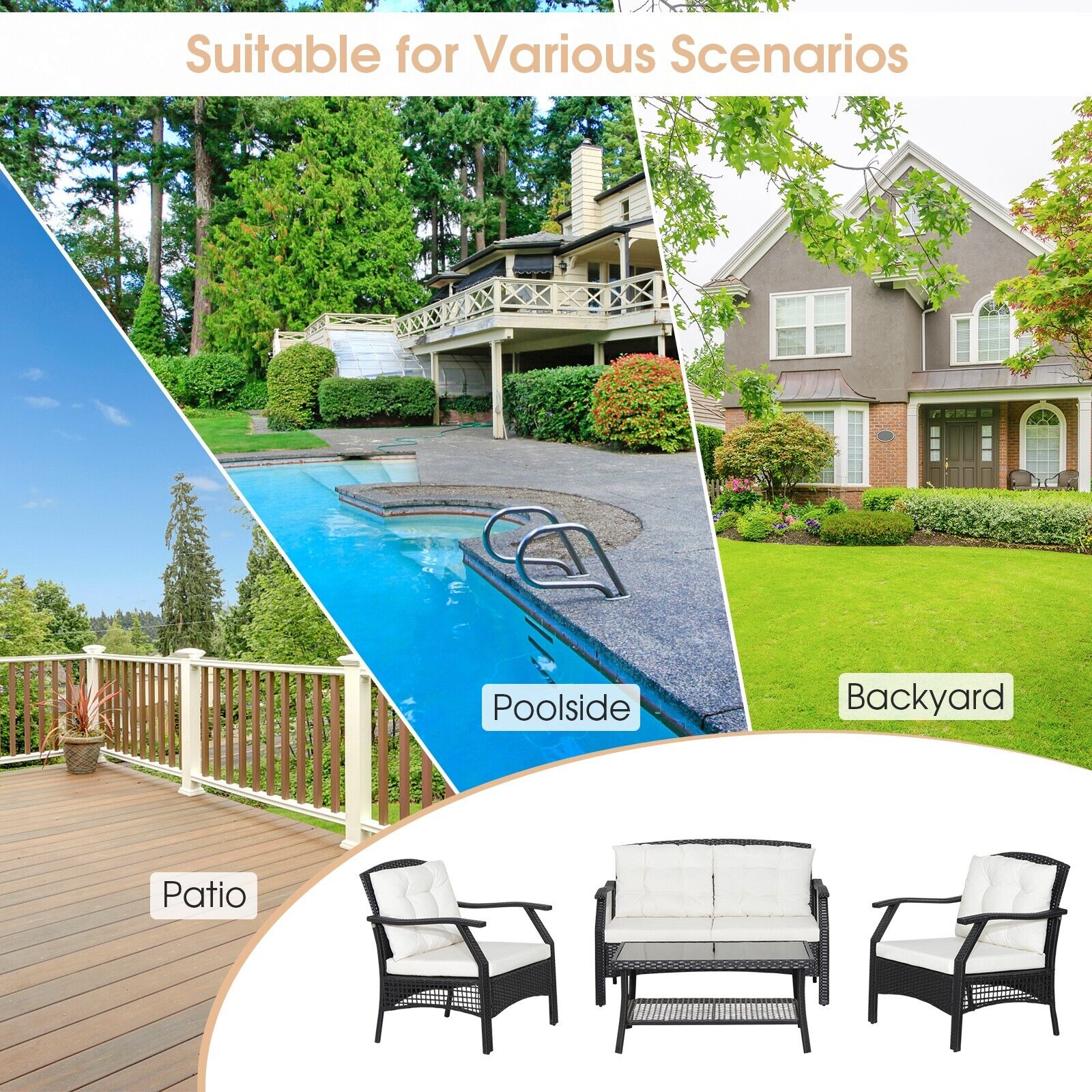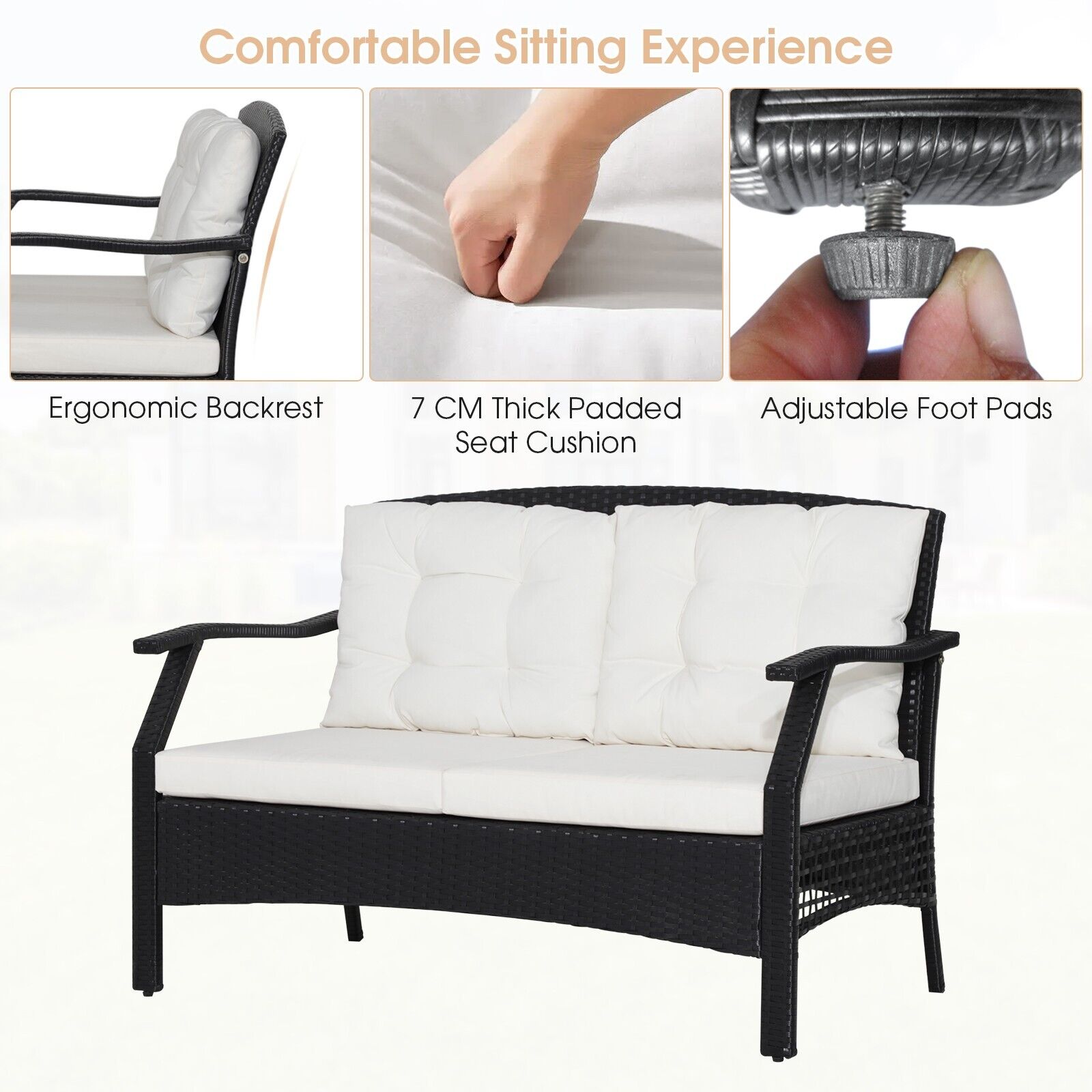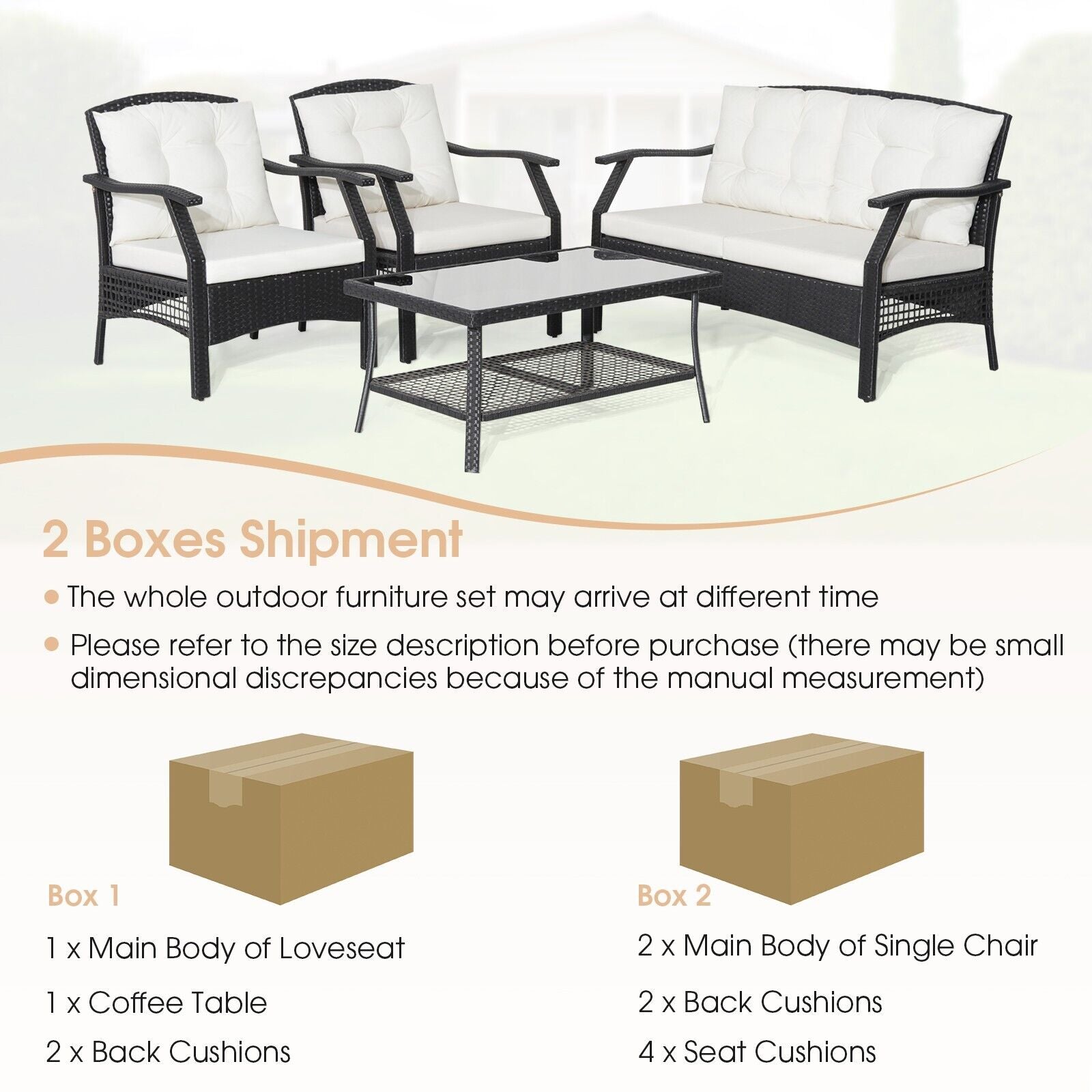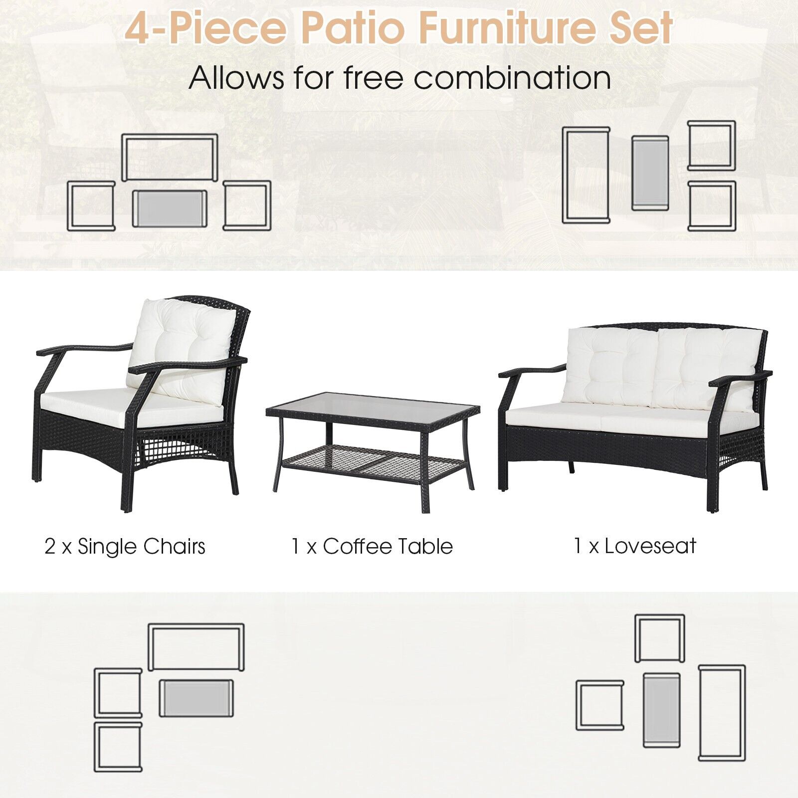 4 Pieces Patio Furniture Set Outdoor Rattan Conversation Sofa Set w/ Cushion