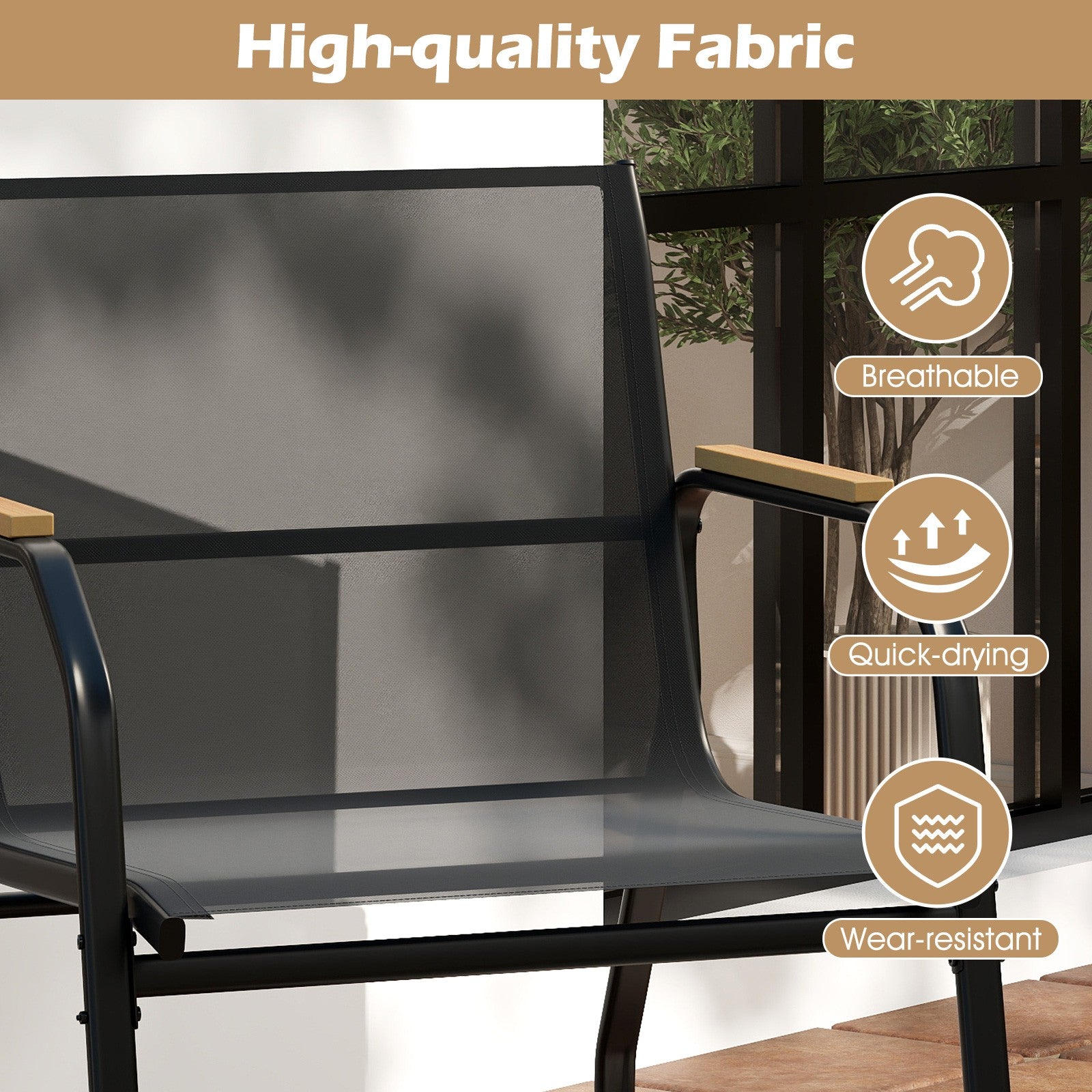 4 Pieces Patio Furniture Set with 2 Rocking Bistro Chairs-Black