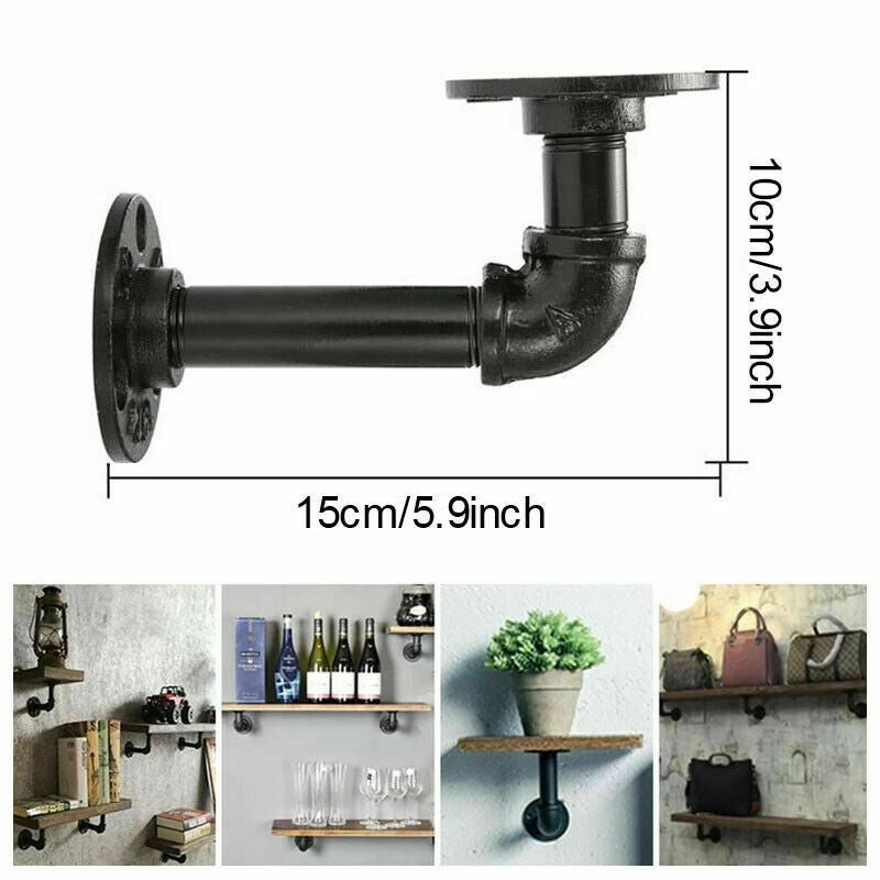 4 Pipe Shelf Bracket Industrial Metal Rustic Wall Floating Shelves Support Decor